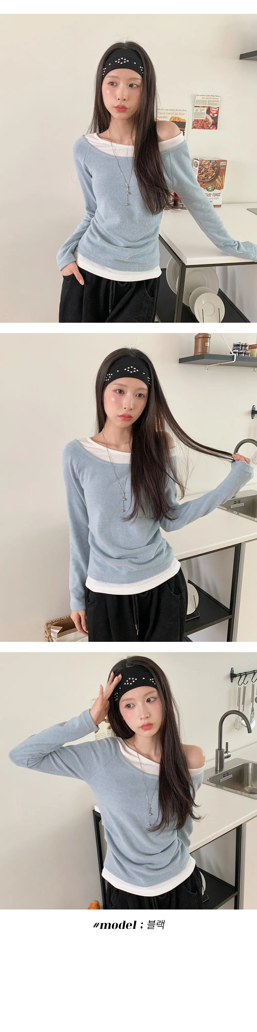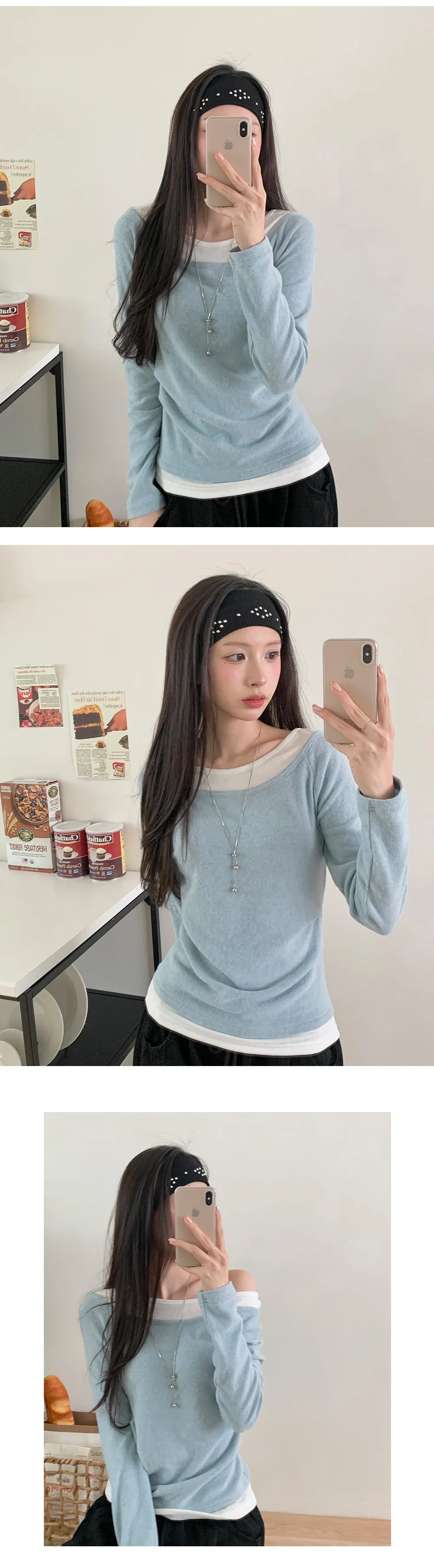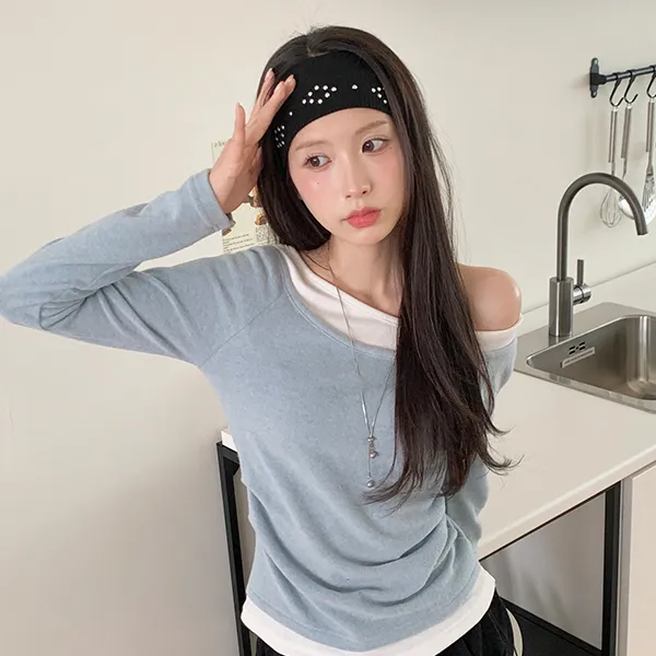 リブ長袖スリムオフショルダーニット