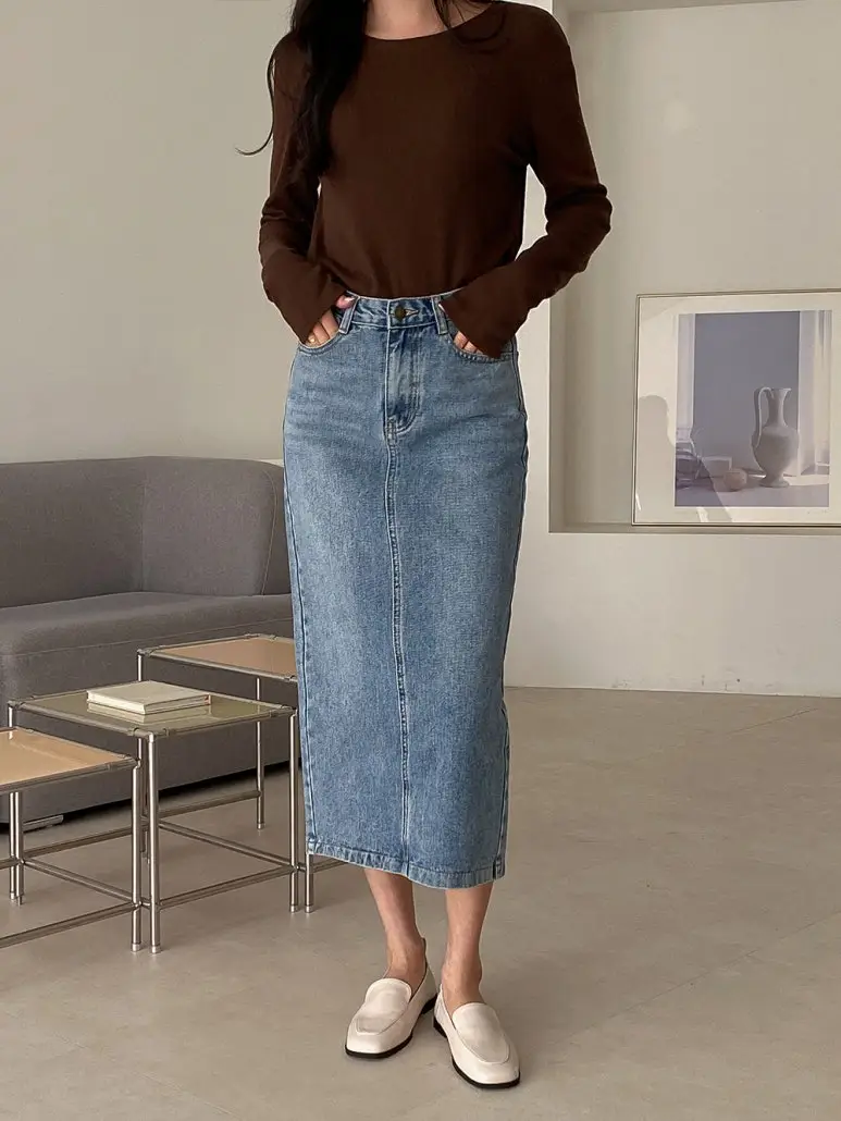 リブ長袖スリムオフショルダーニット