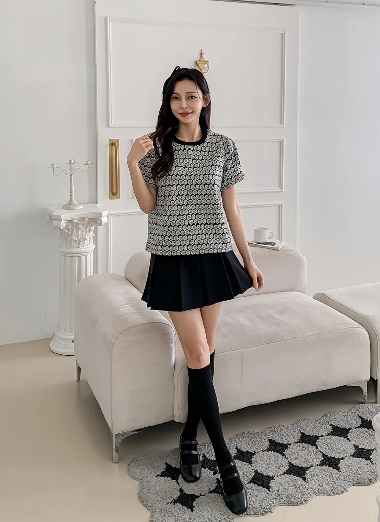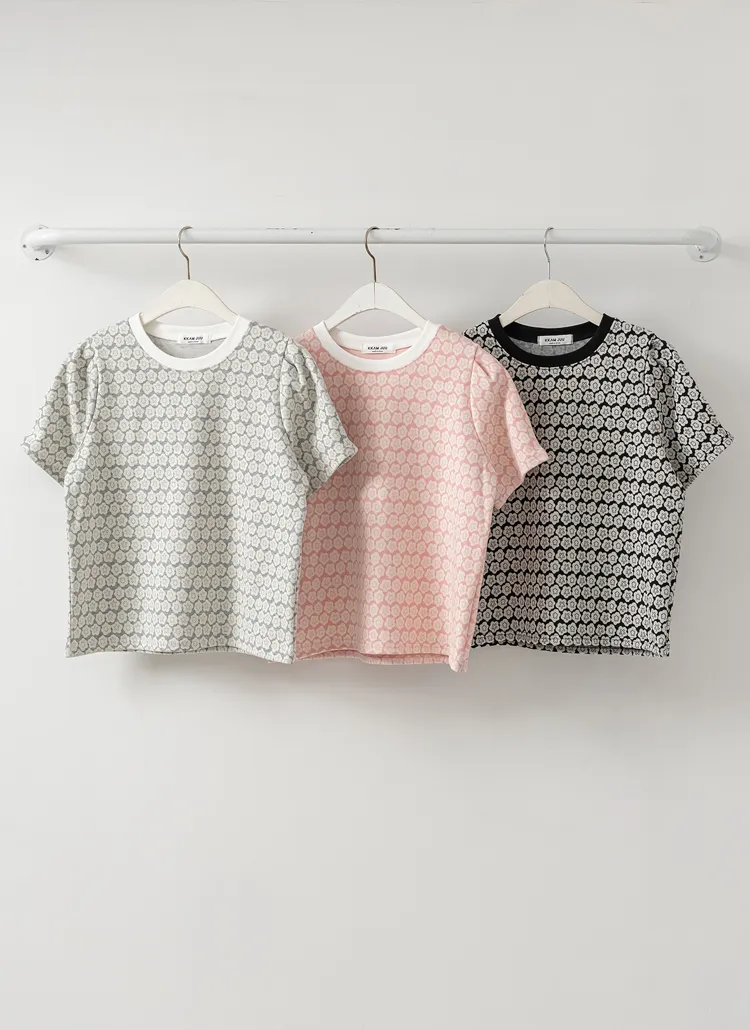 ラウンドネック半袖花柄カラーTシャツ・B1956835
