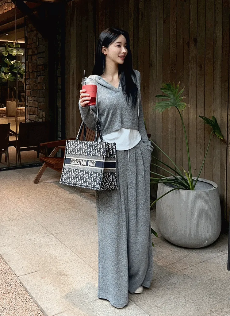 ジップアップフードドローストリングポケットラインウエストゴムスリム長袖バックストラップバックポケットブーツカット無地ツーピース(トップス、ボトムス)パンツジップパーカー