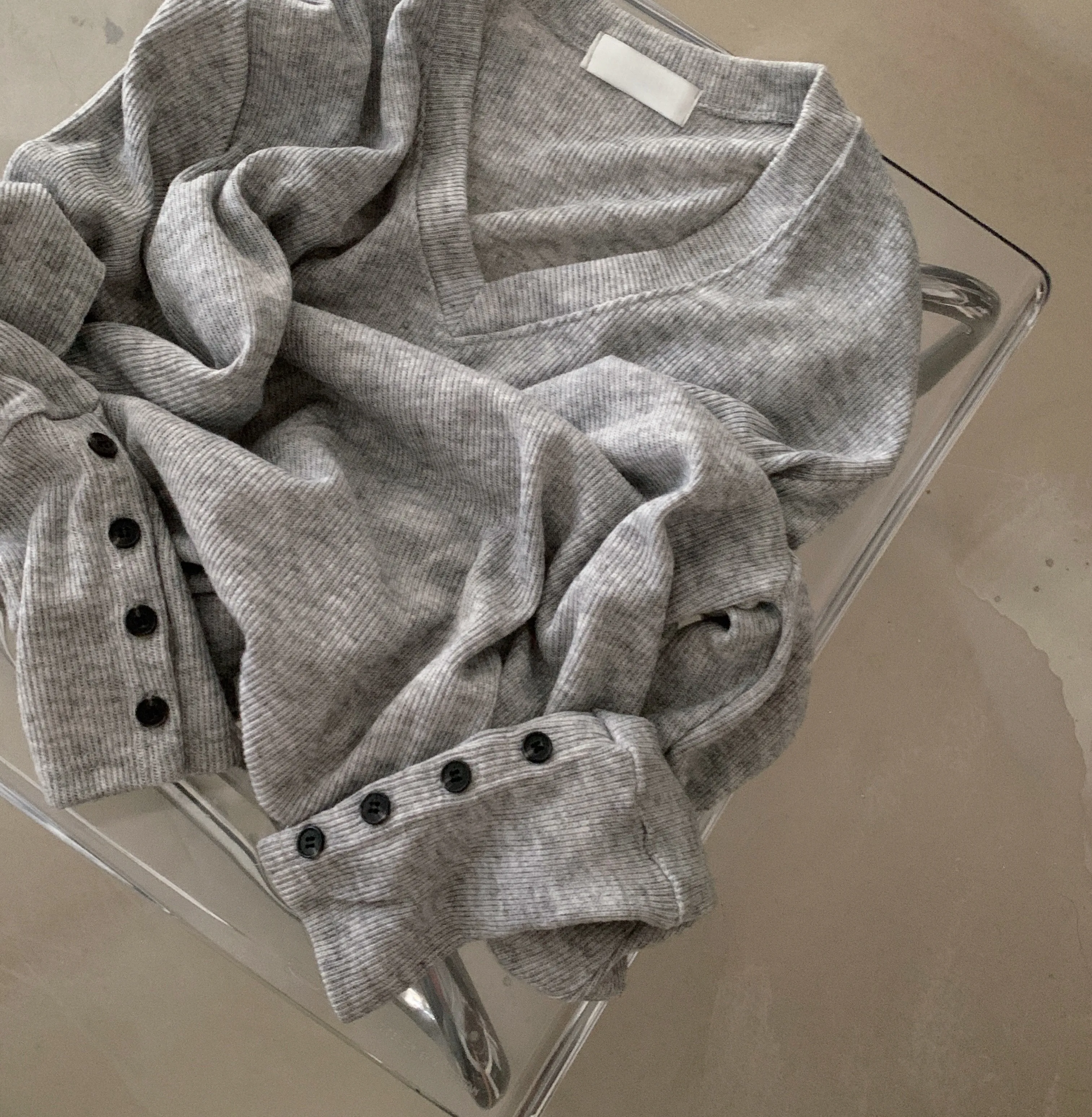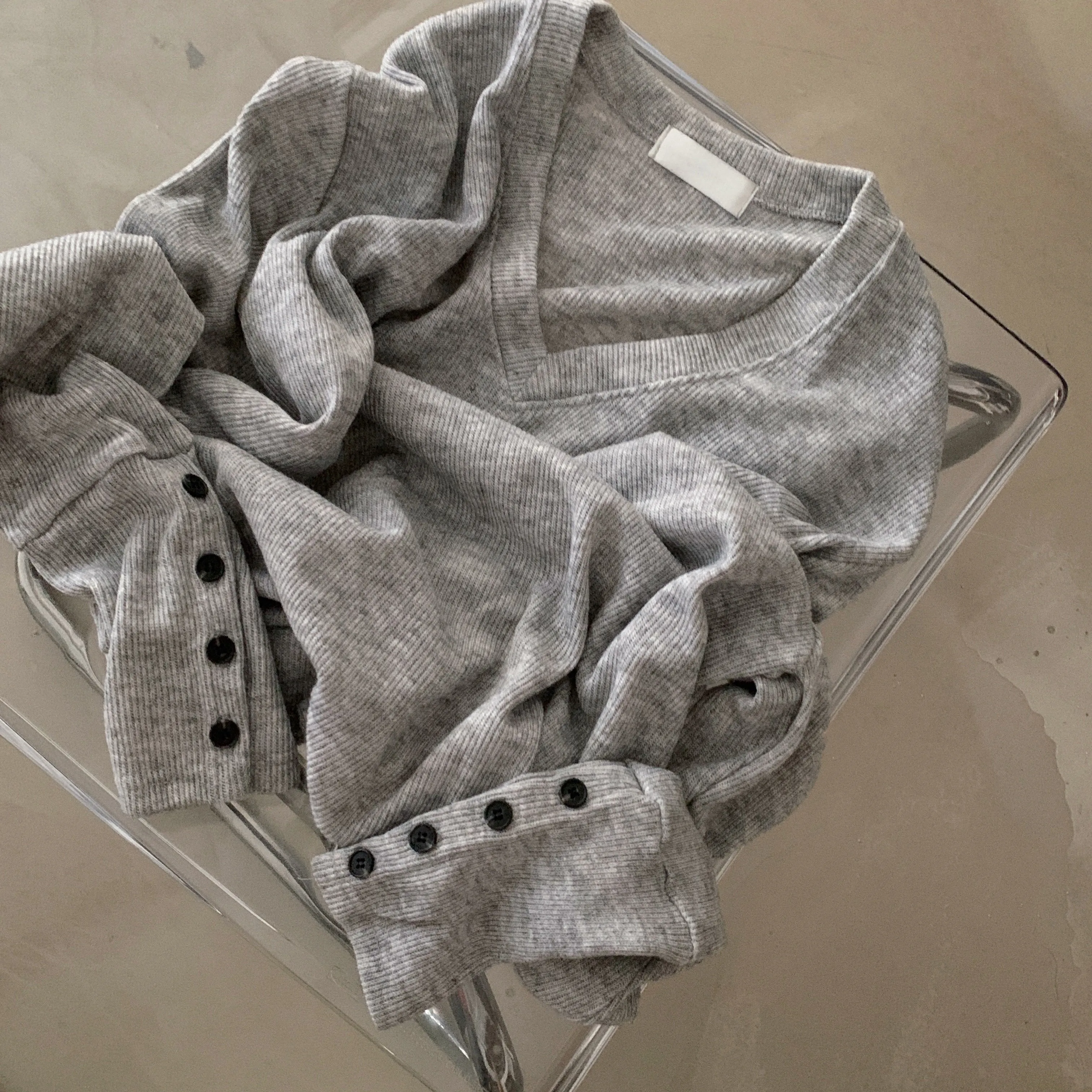 토시 캐시미어 버튼 소매 울 브이넥 긴팔니트 [ 4color ]