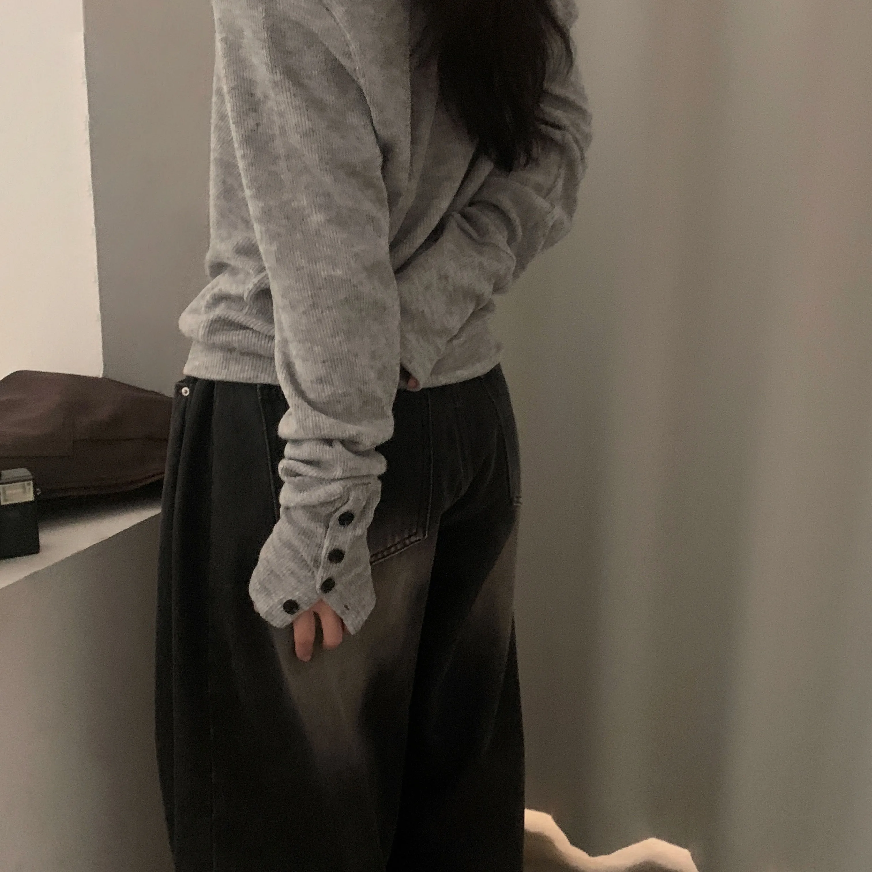 버튼을 열어서 입어도 트임 사이로 보이는 손목이 여리해보여요