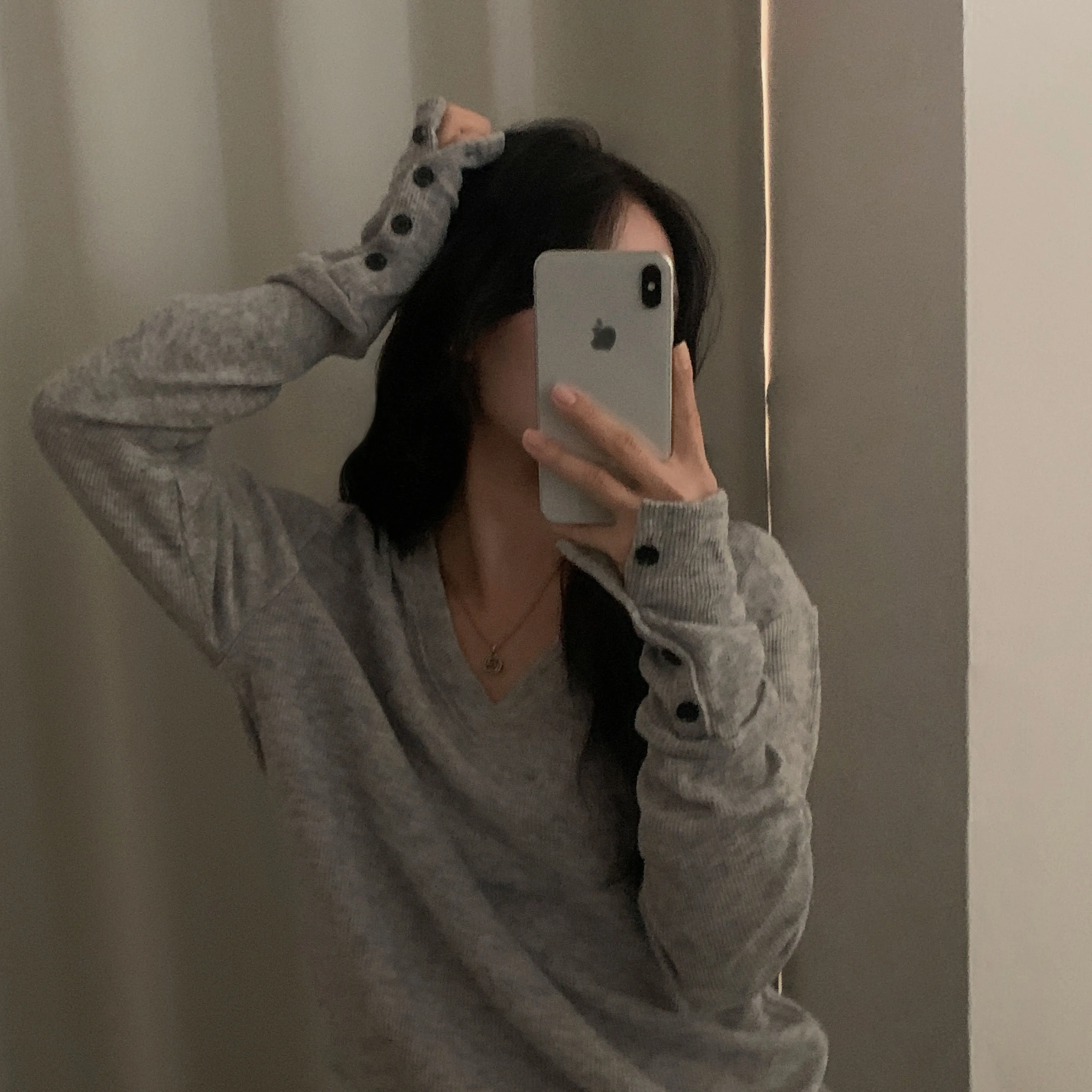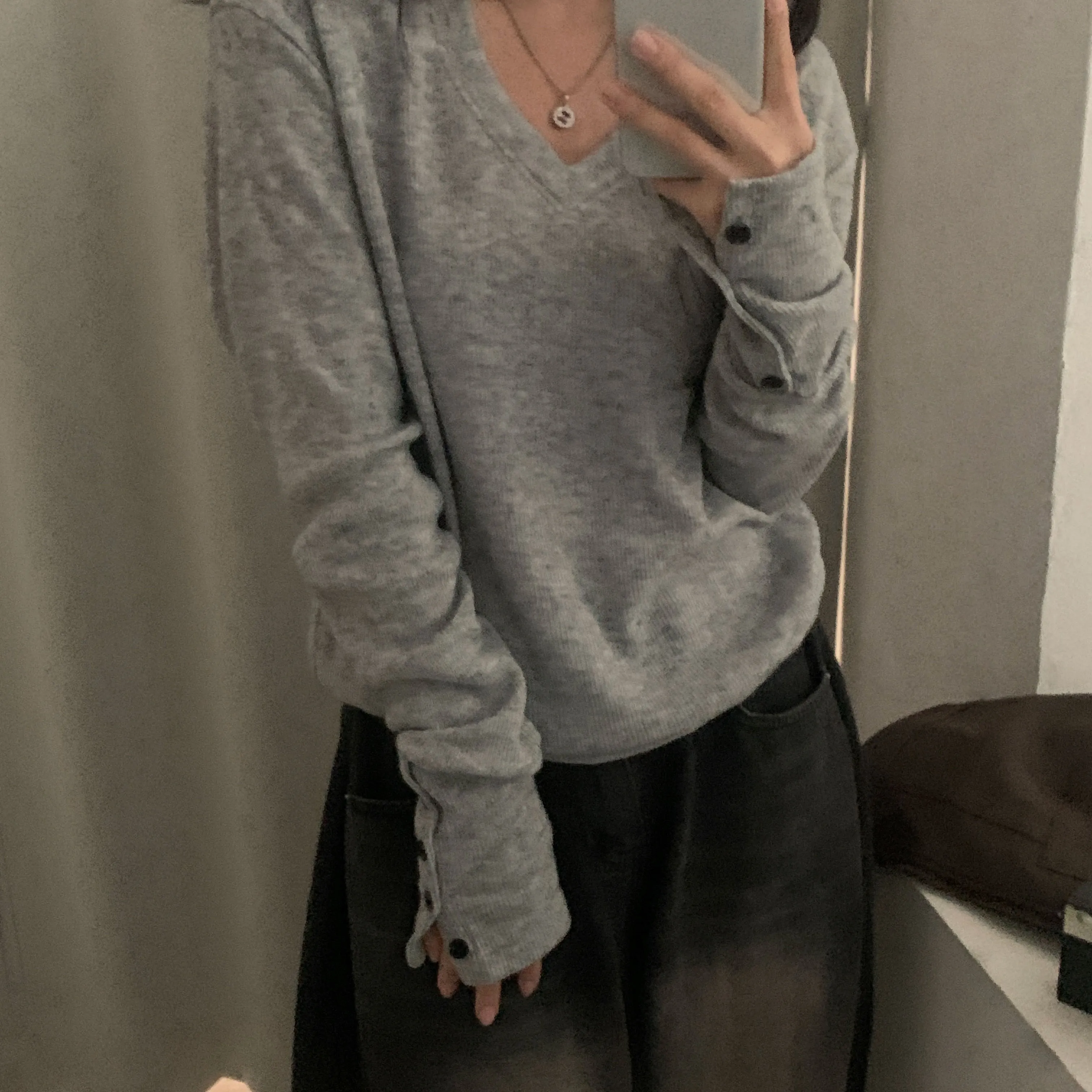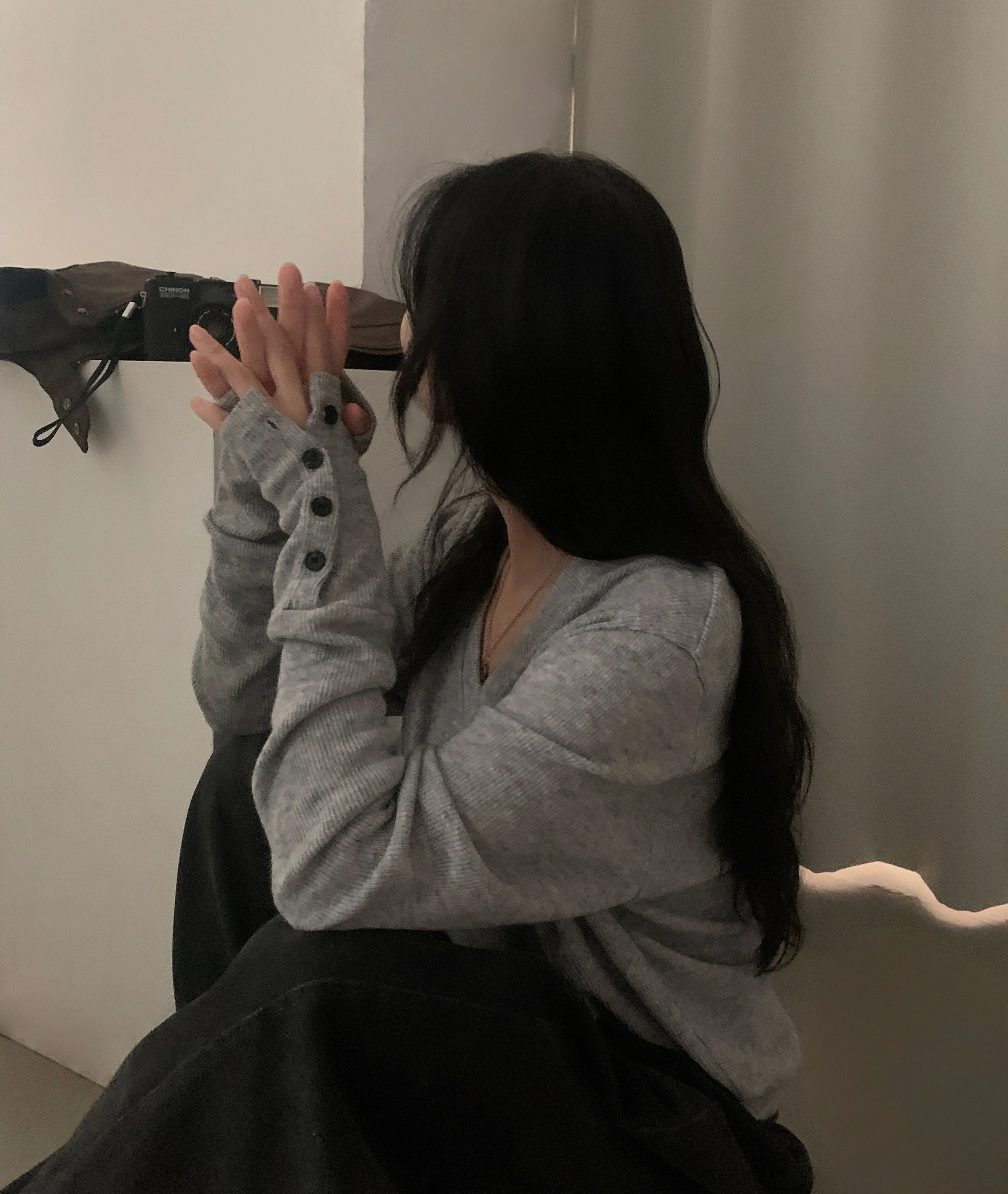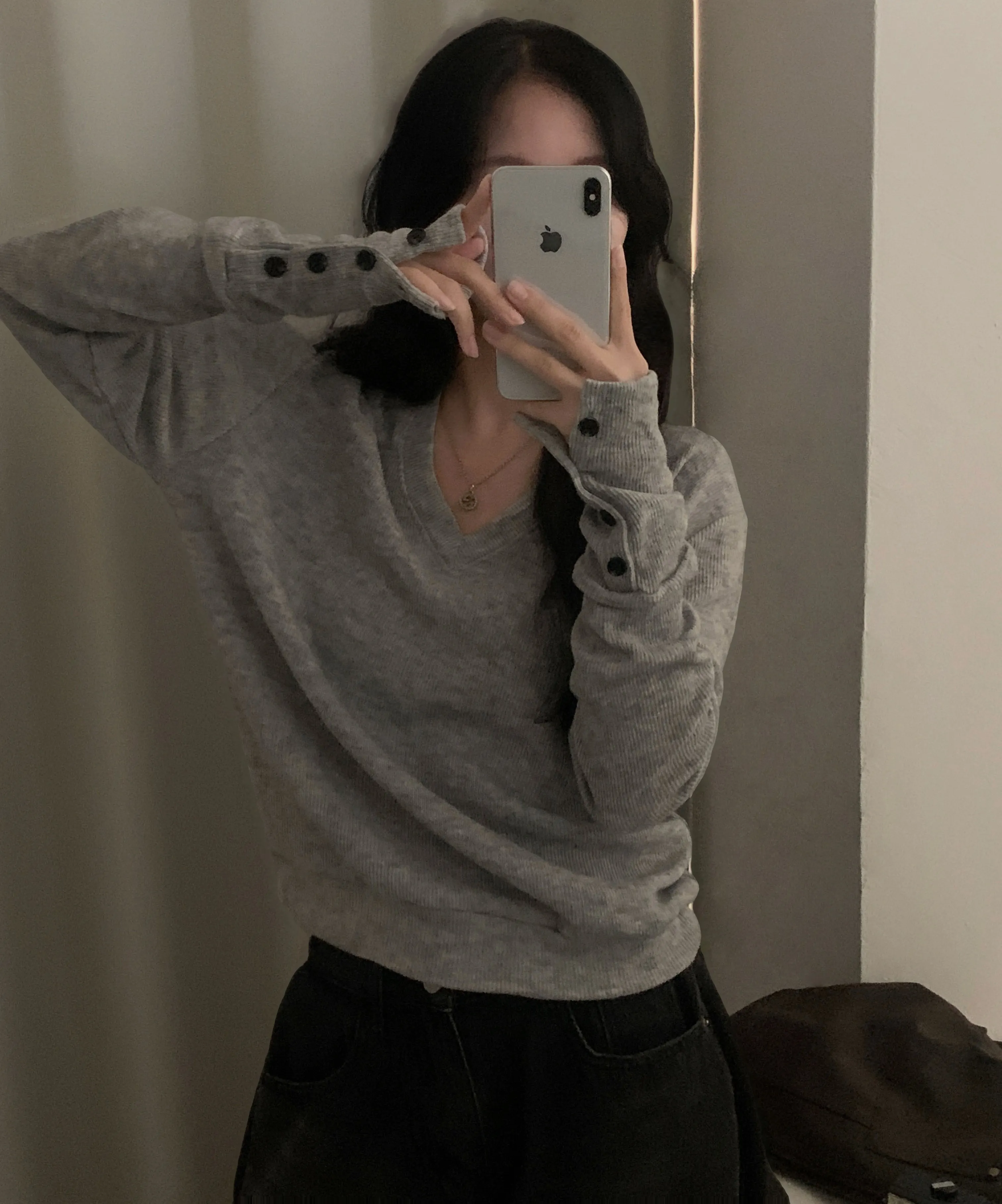 버튼을 다 클로징해서 입으면 손등까지 내려오는 소매길이로 여리여리한 무드 한가득이에요
