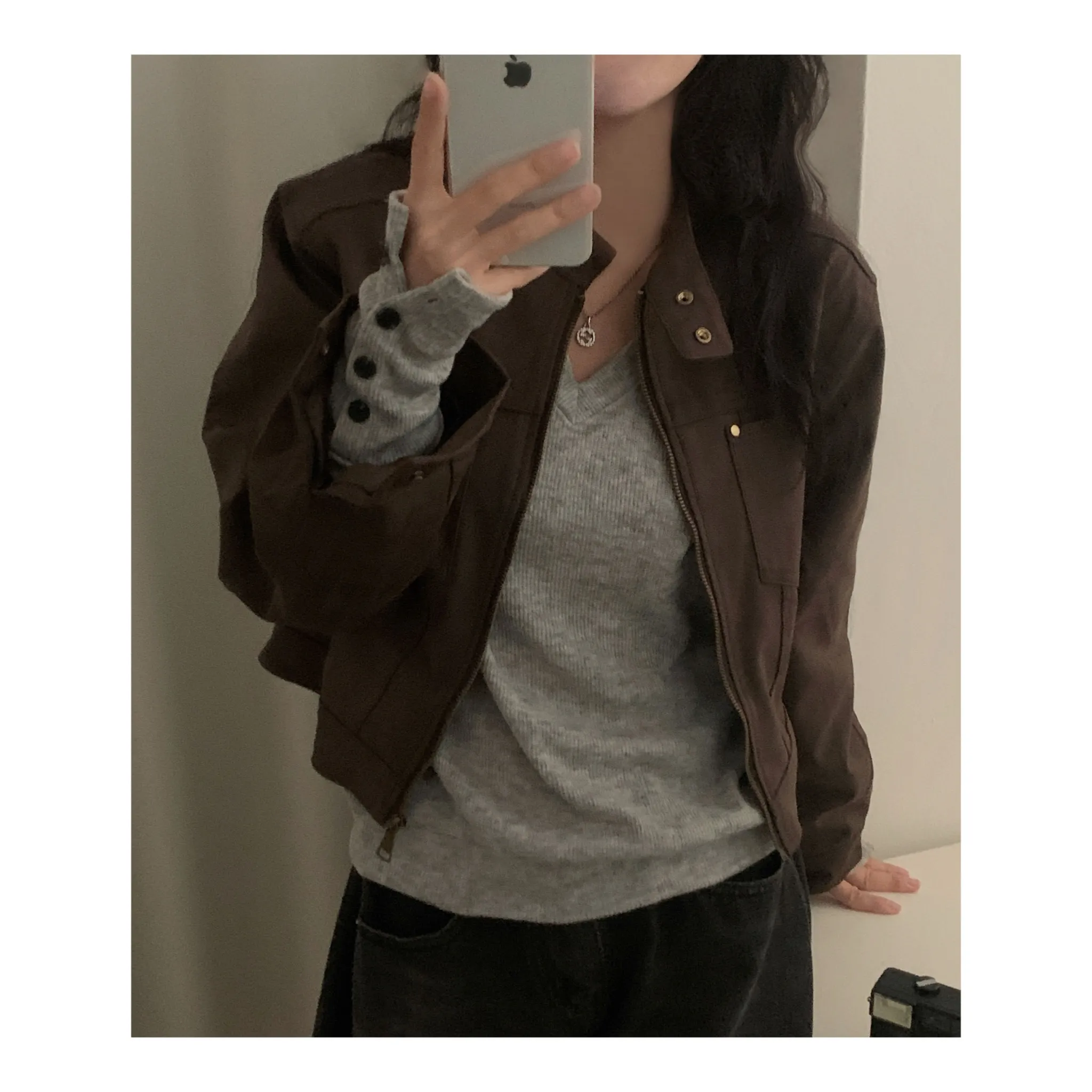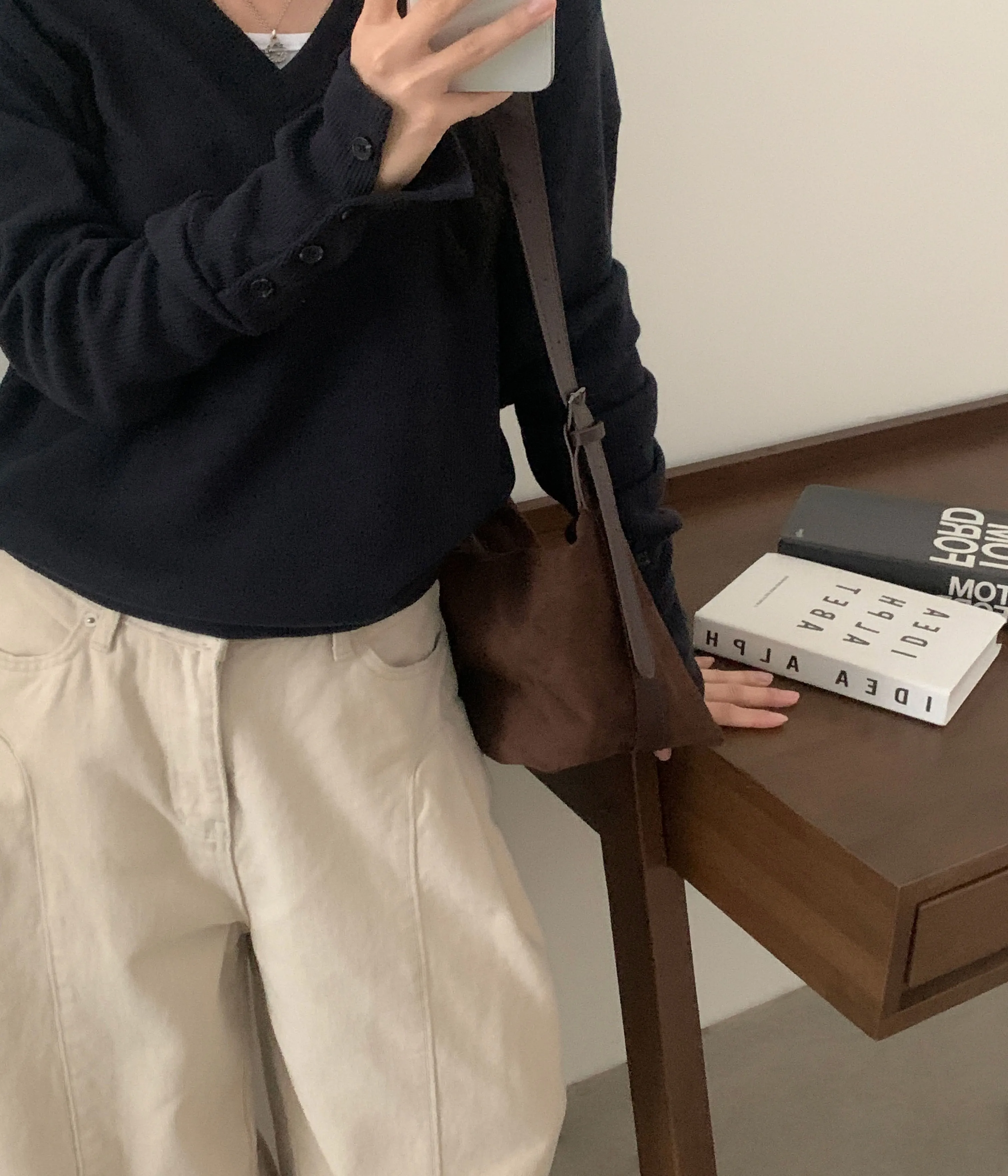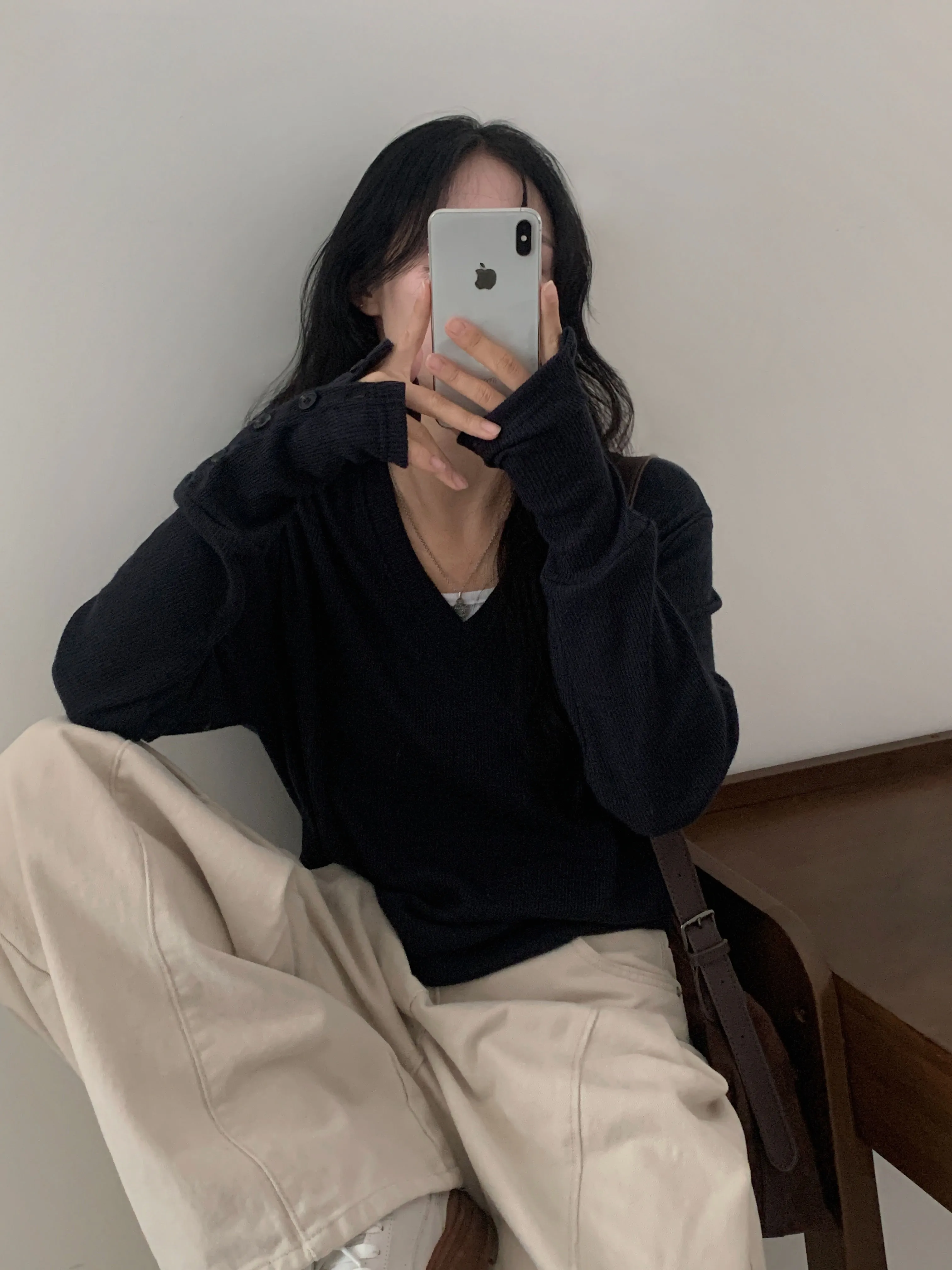 브이넥 디자인으로 목선은 길고 슬림하게 보이면서도 얼굴은 작아 보인답니다