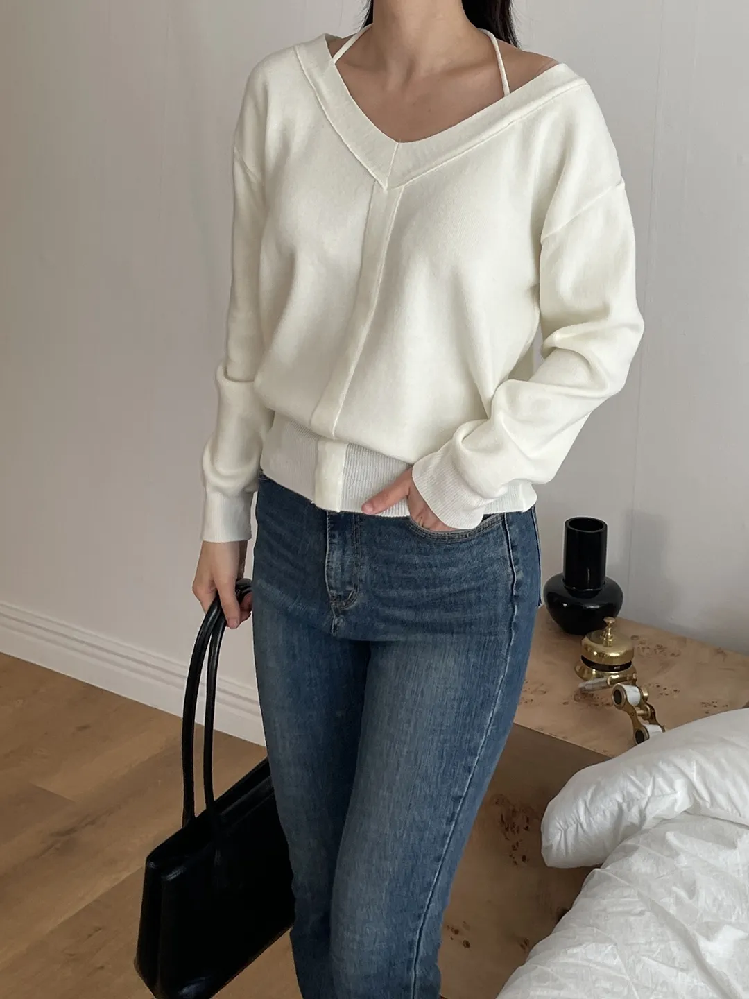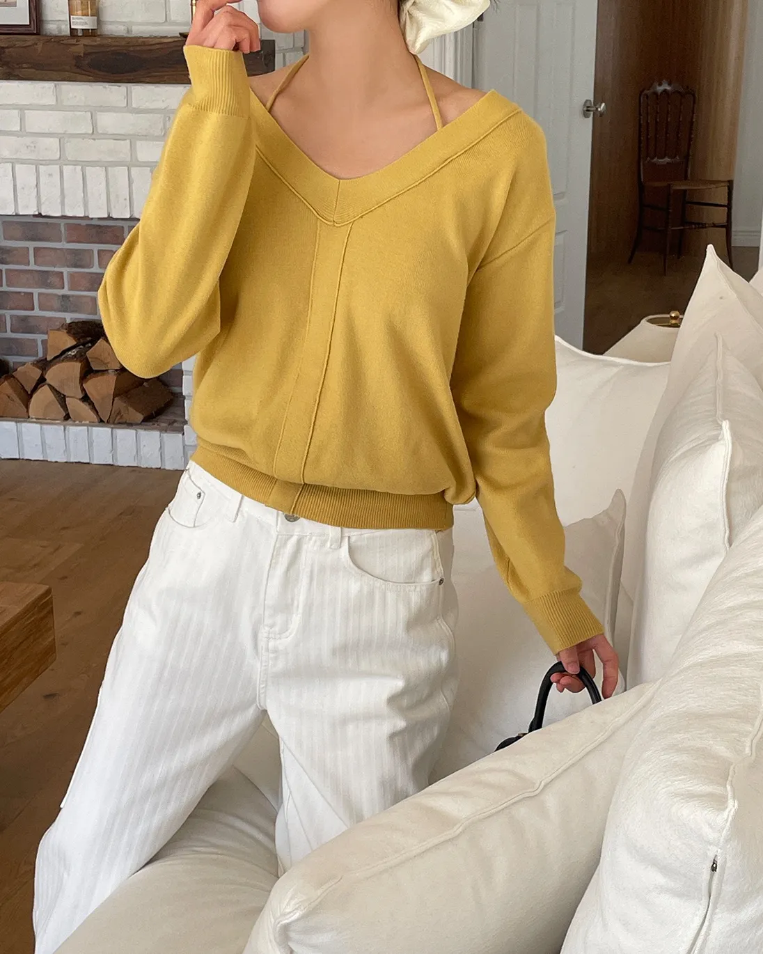ホルターネックベーシック長袖ニット