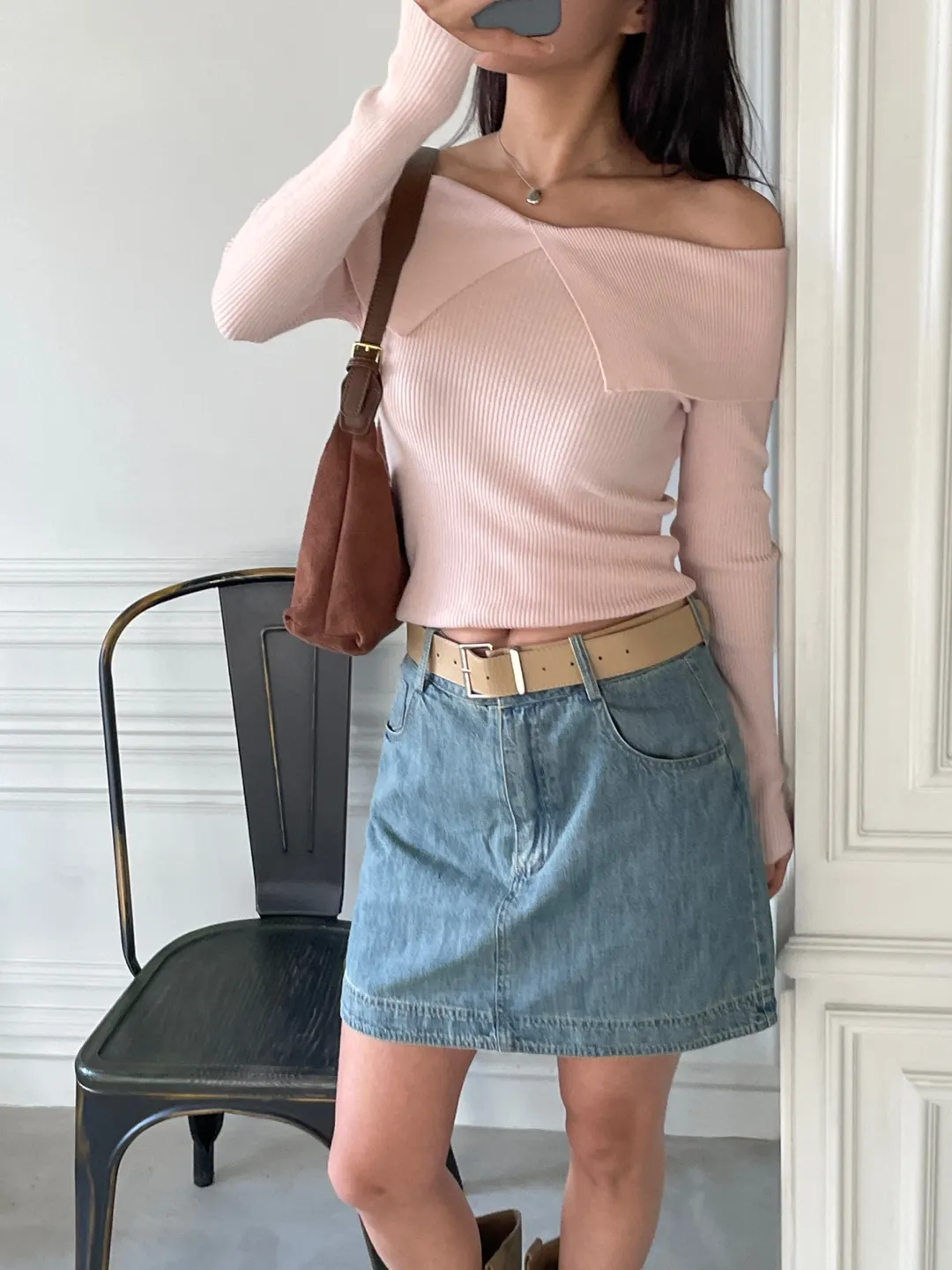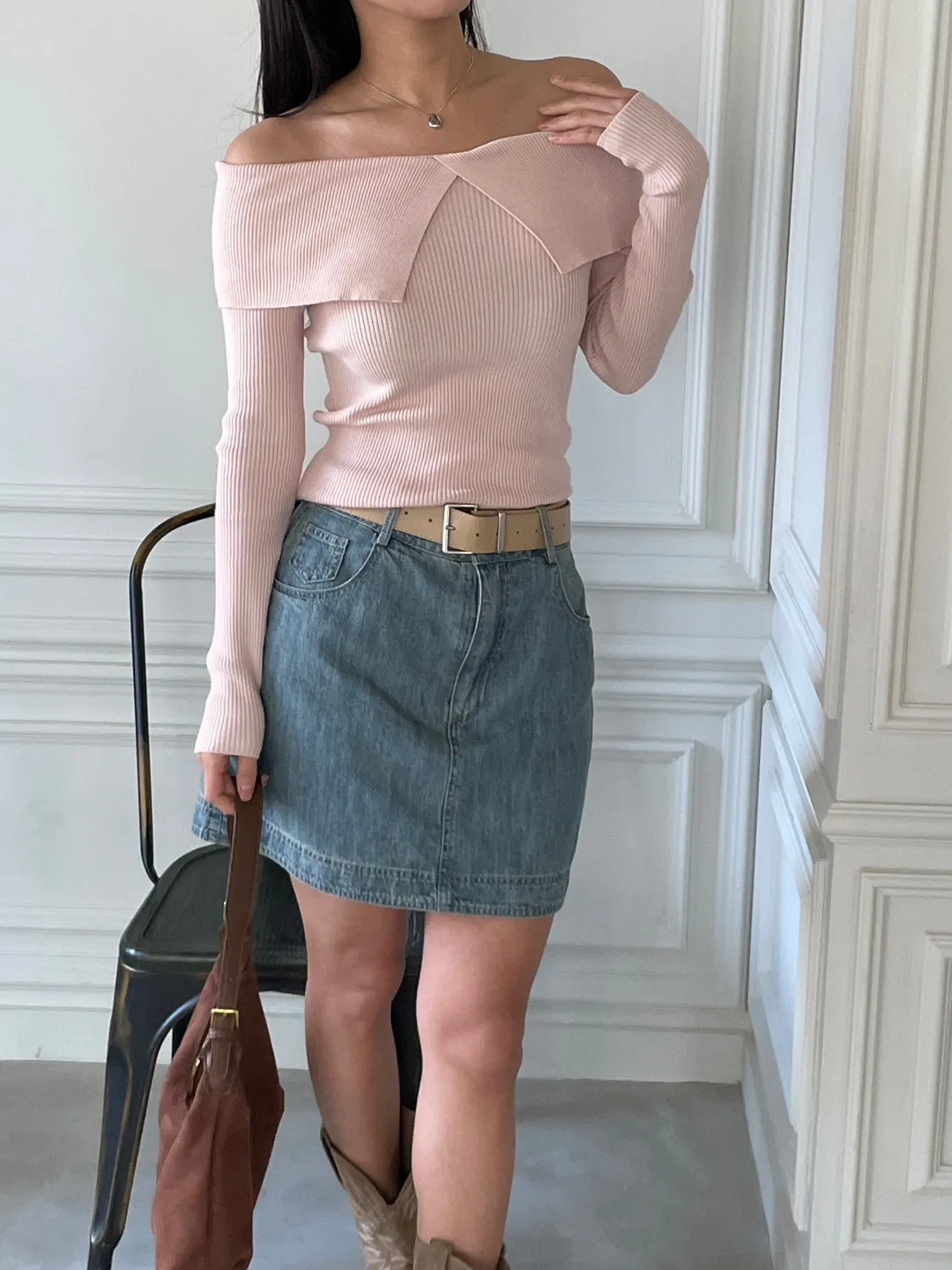 オフショルダーベーシック長袖ニット・B1957983