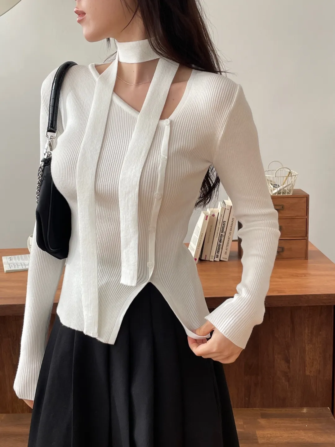 ボタンスリム長袖ニットスカーフ付・B1957986