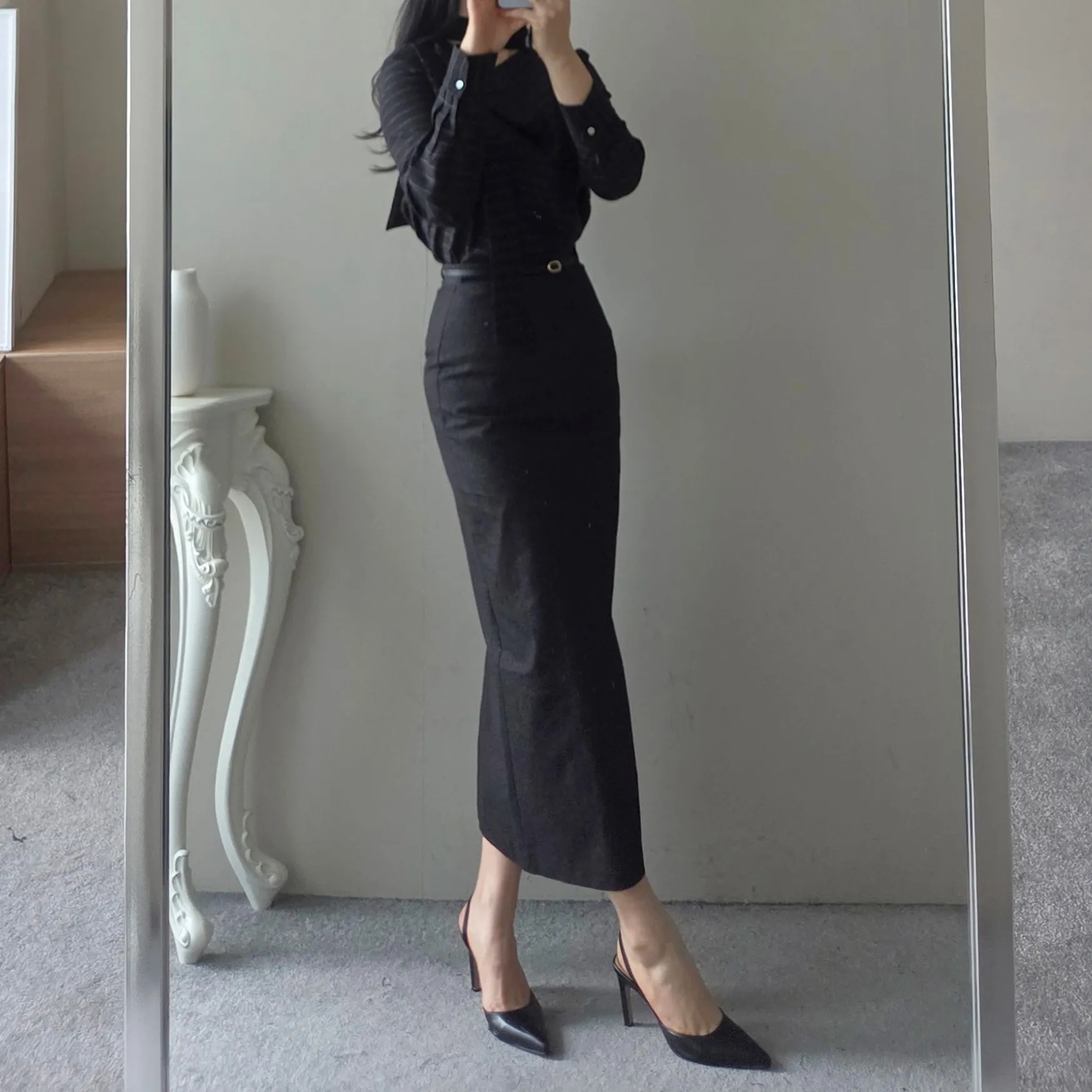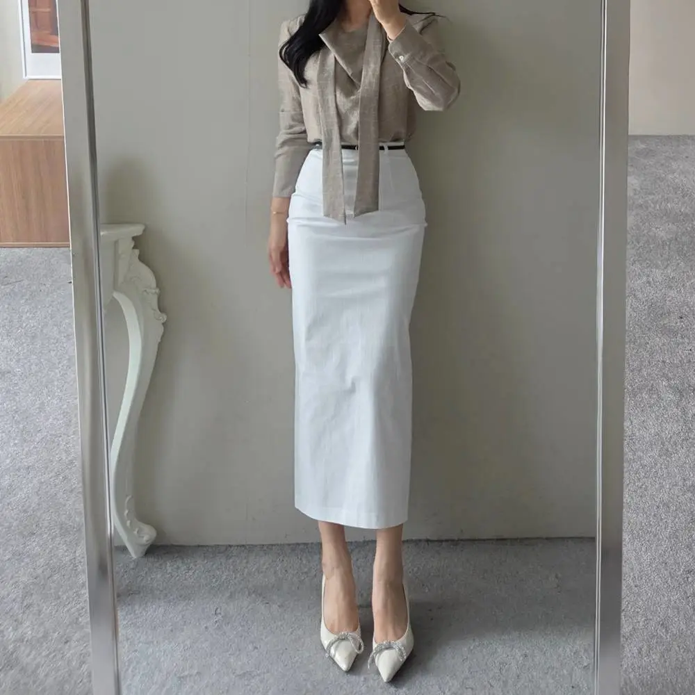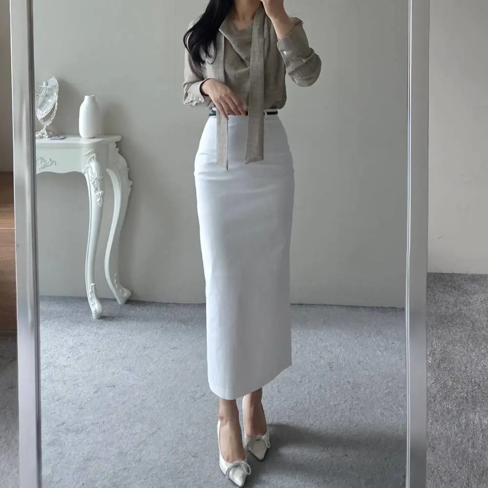 スリットラインスリムループHライン(ロング丈)ヒドゥンジッパー無地スカートベルト付・S1958056
