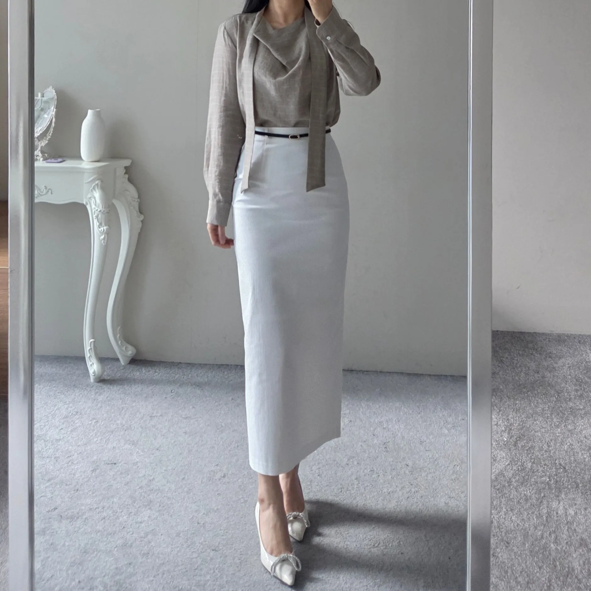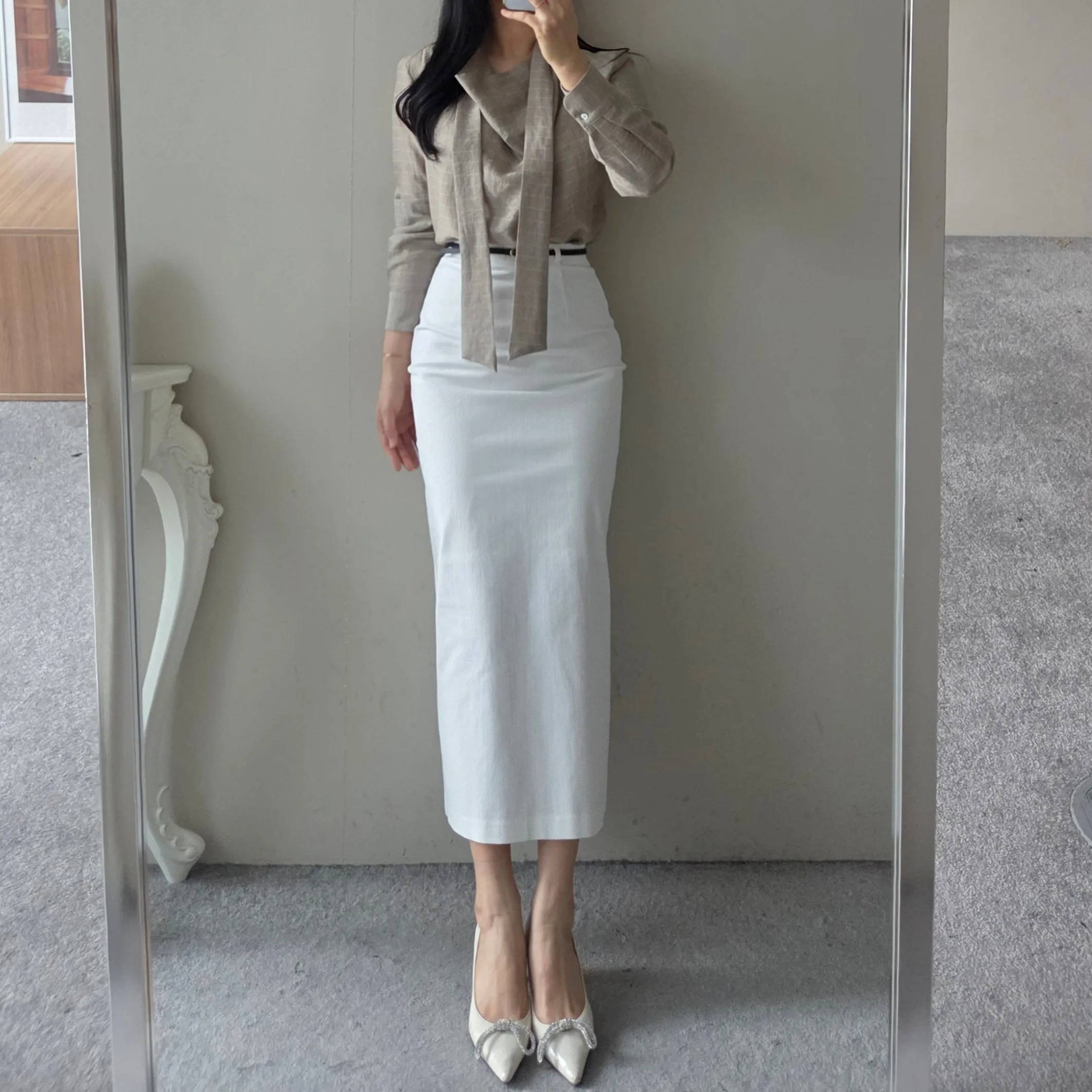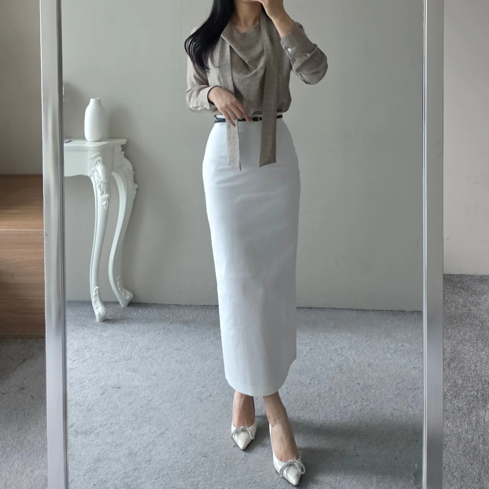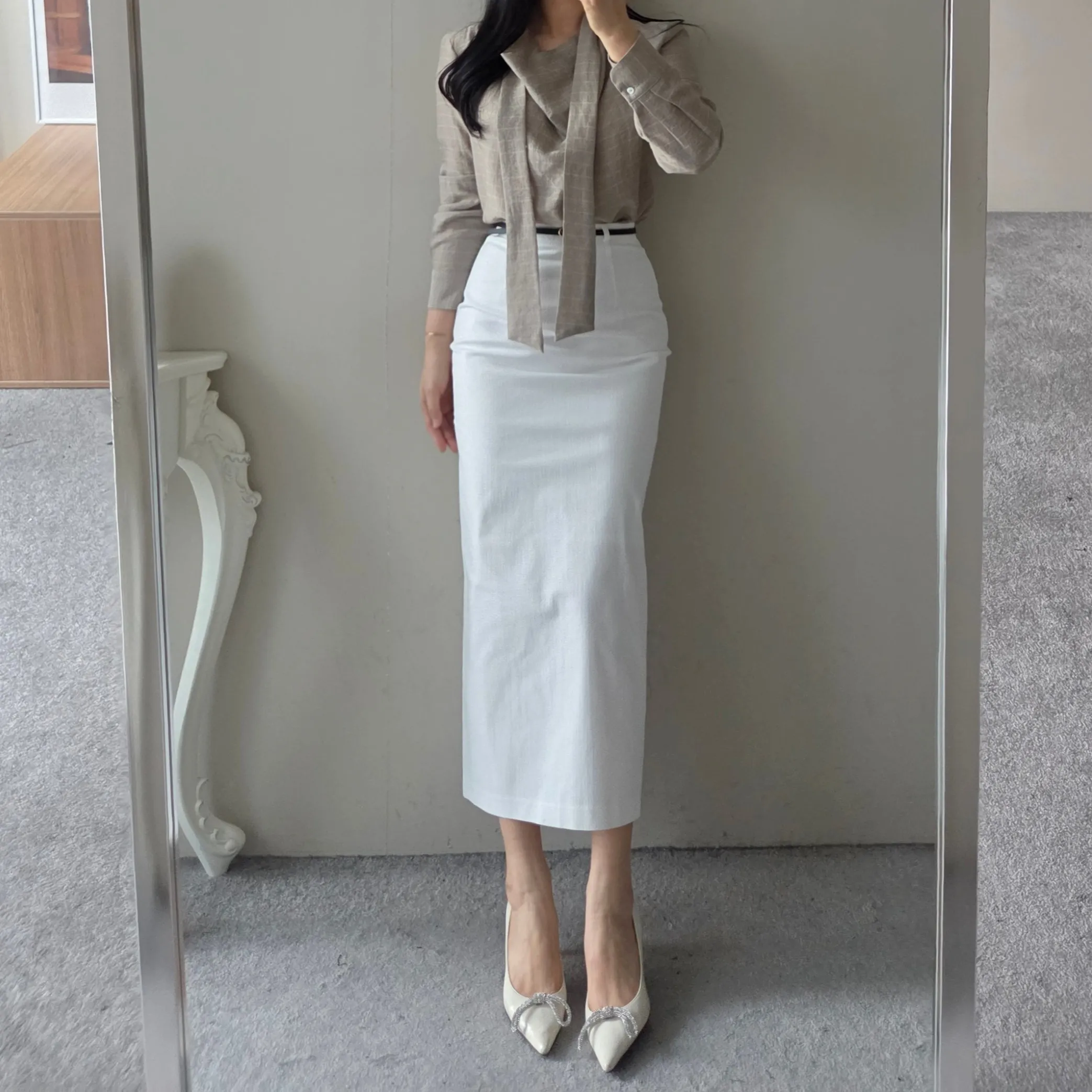 ベルト付きスリムスカート