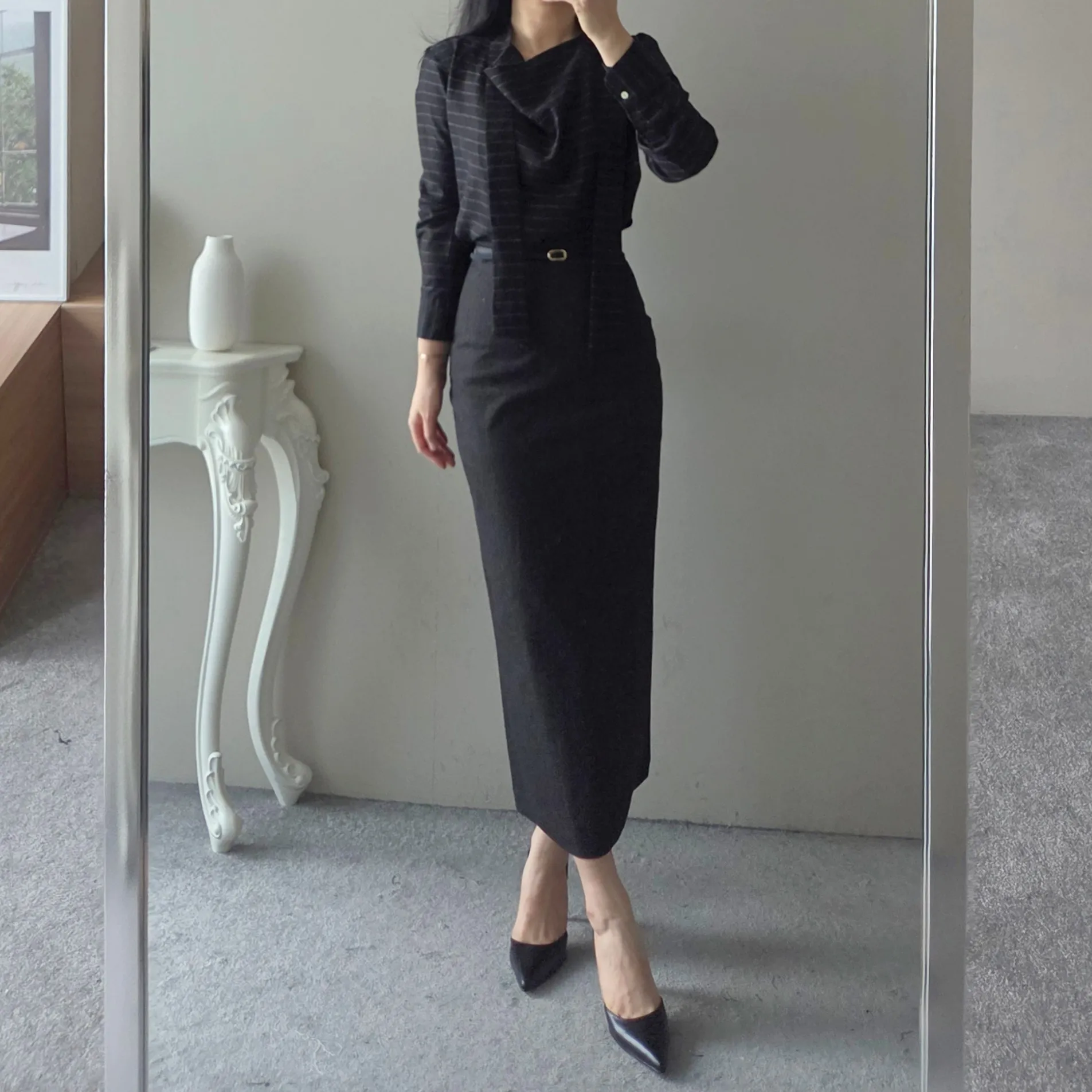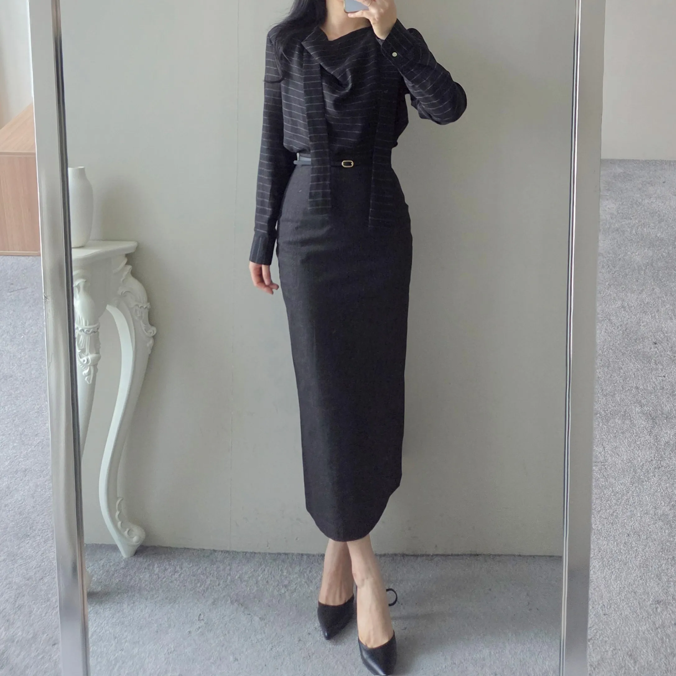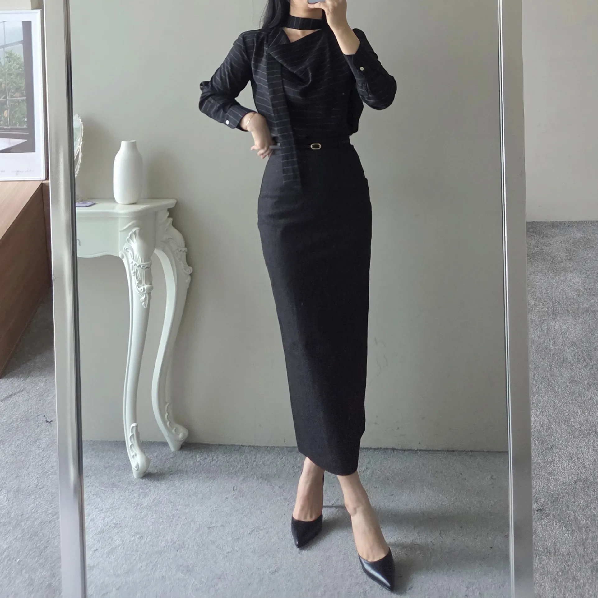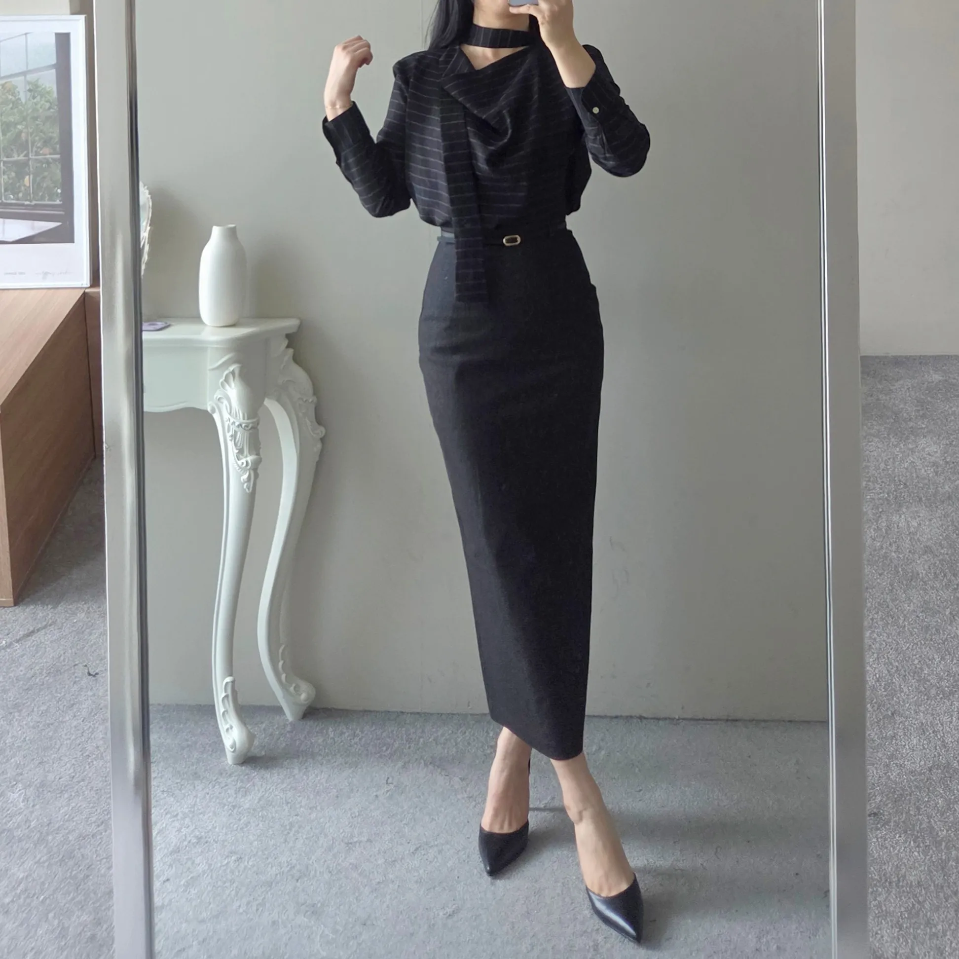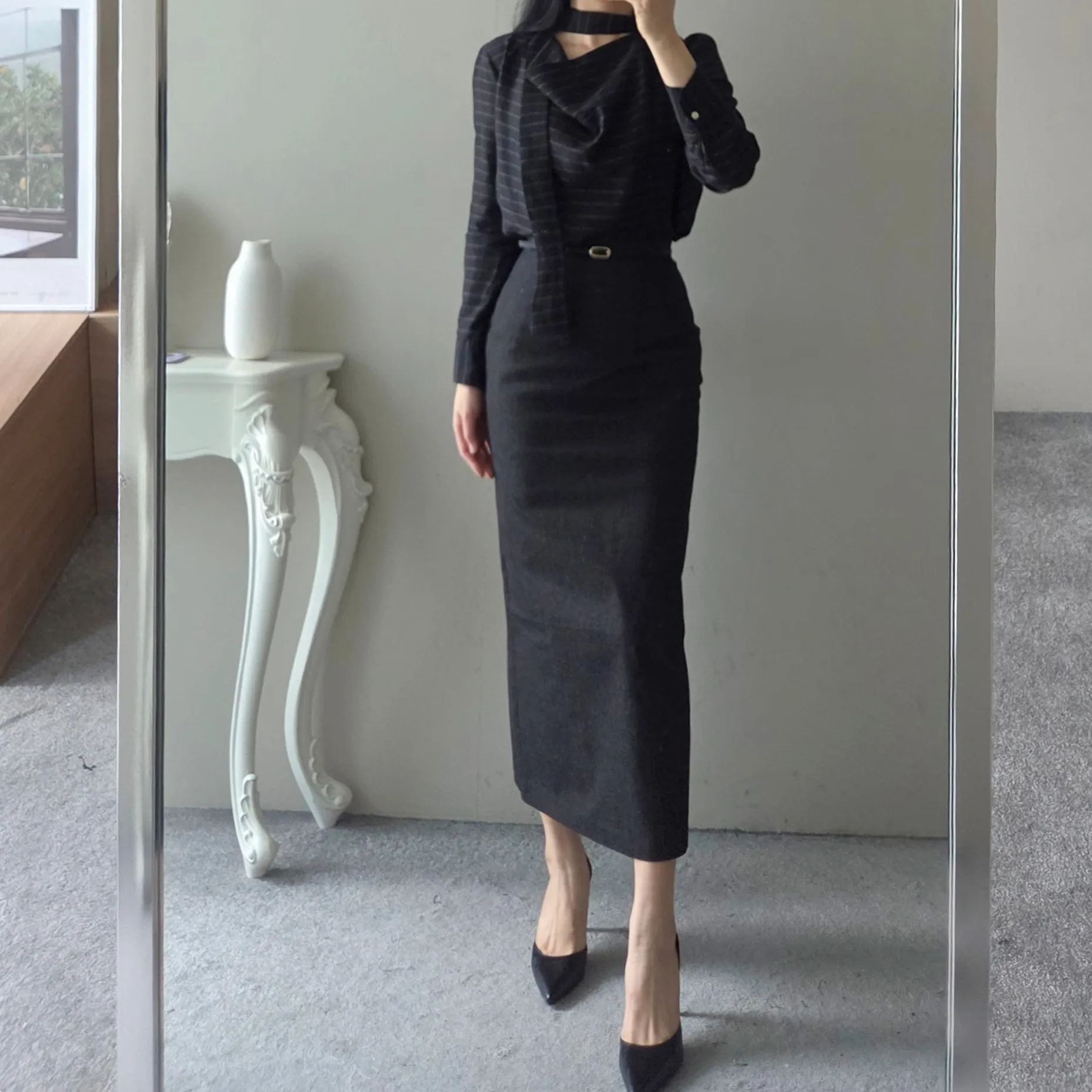 ベルト付きスリムスカート
