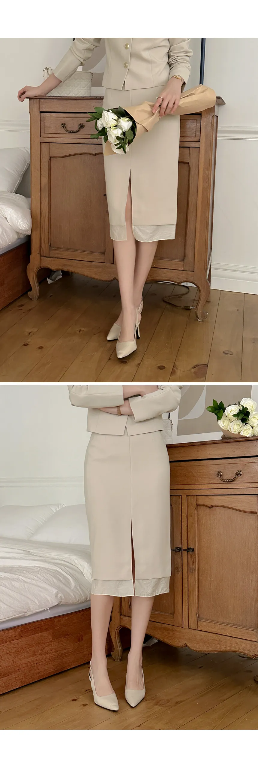 | Size | ウエスト | ヒップ | 裾幅 | 着丈 | スリット長さ |