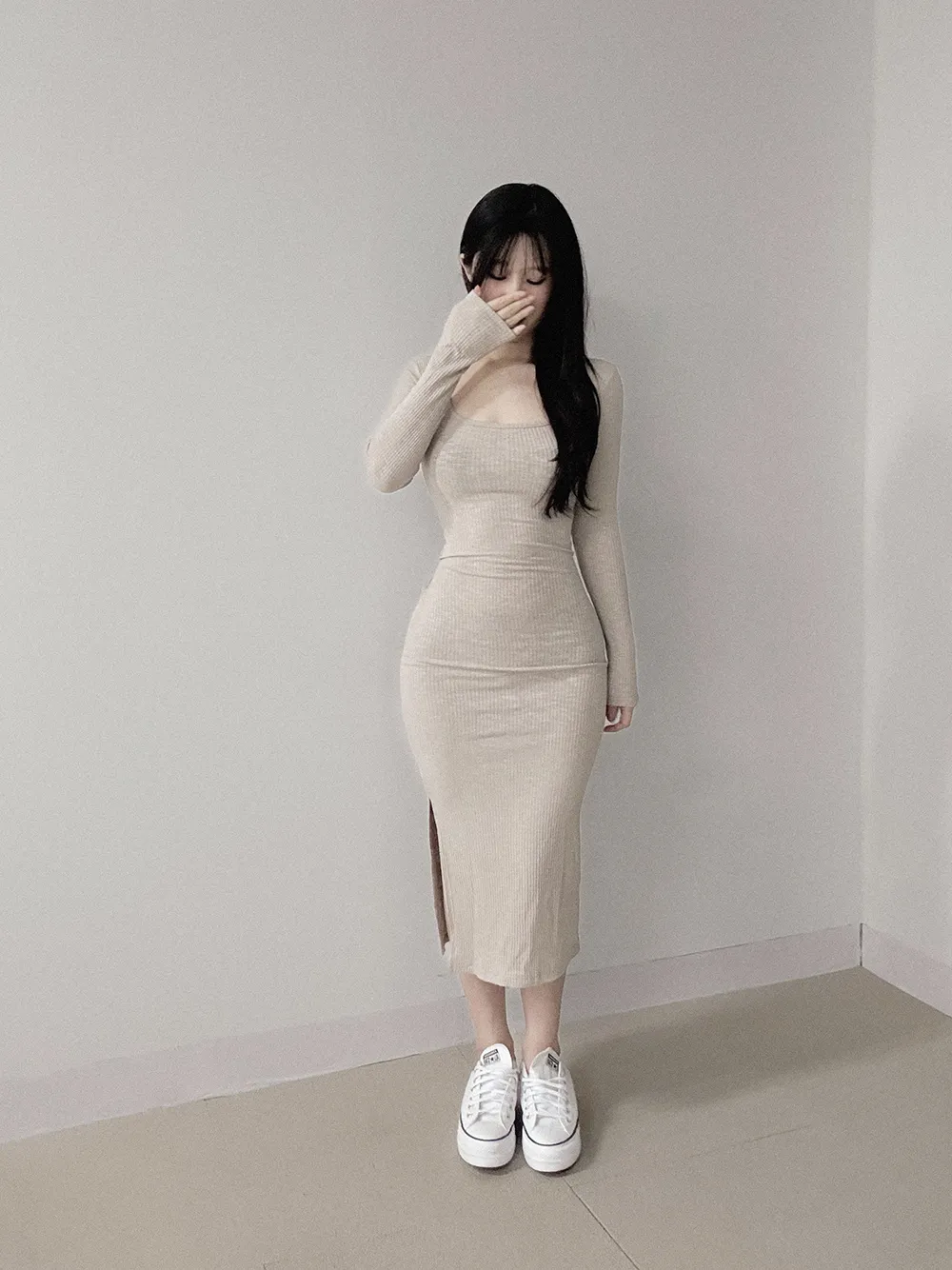 タイトなスリムシルエットで、
