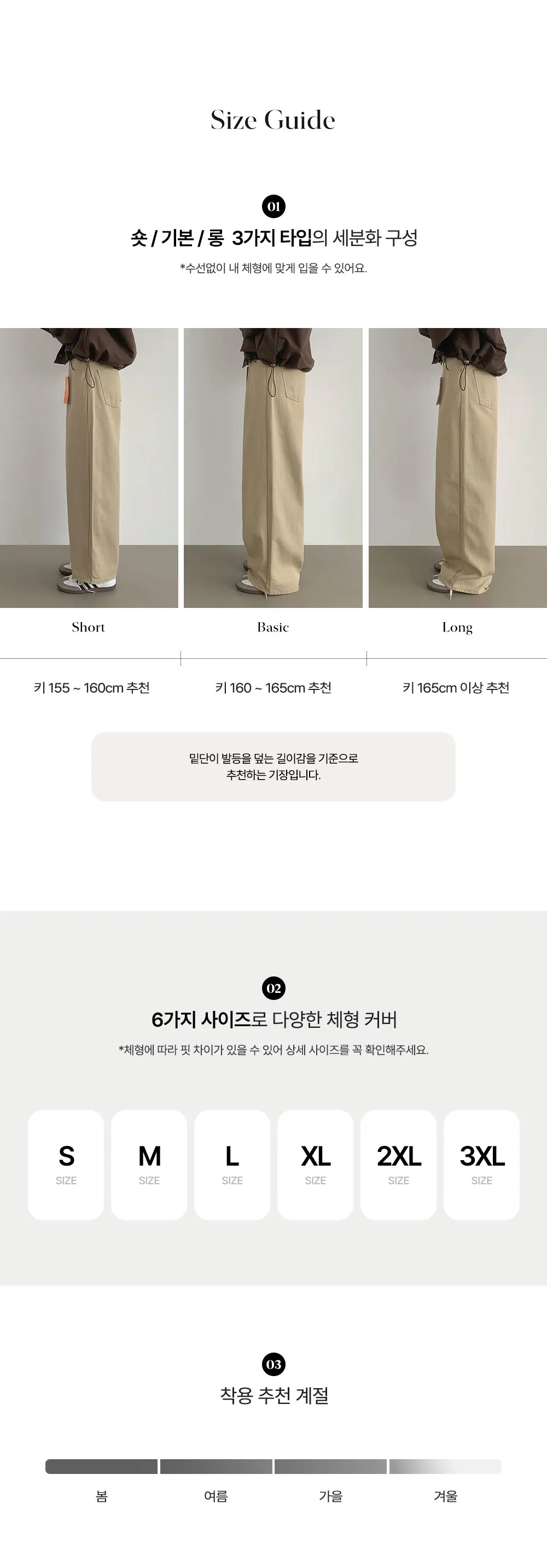 | 3XL | 44(ゴム) | 66 | 30 | 38.7 | 35 | 102/107/112(ショート/基本/ロング) |