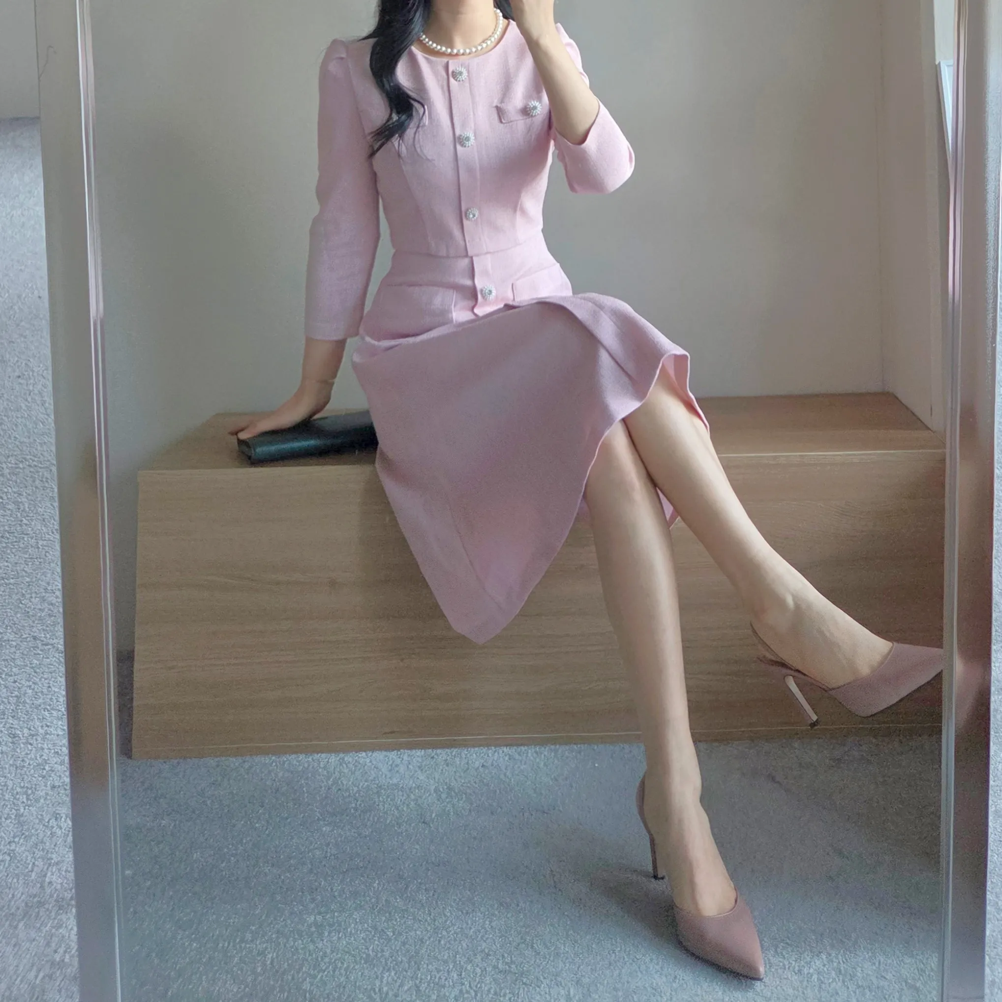 ペプラムフェイクパールワンピース