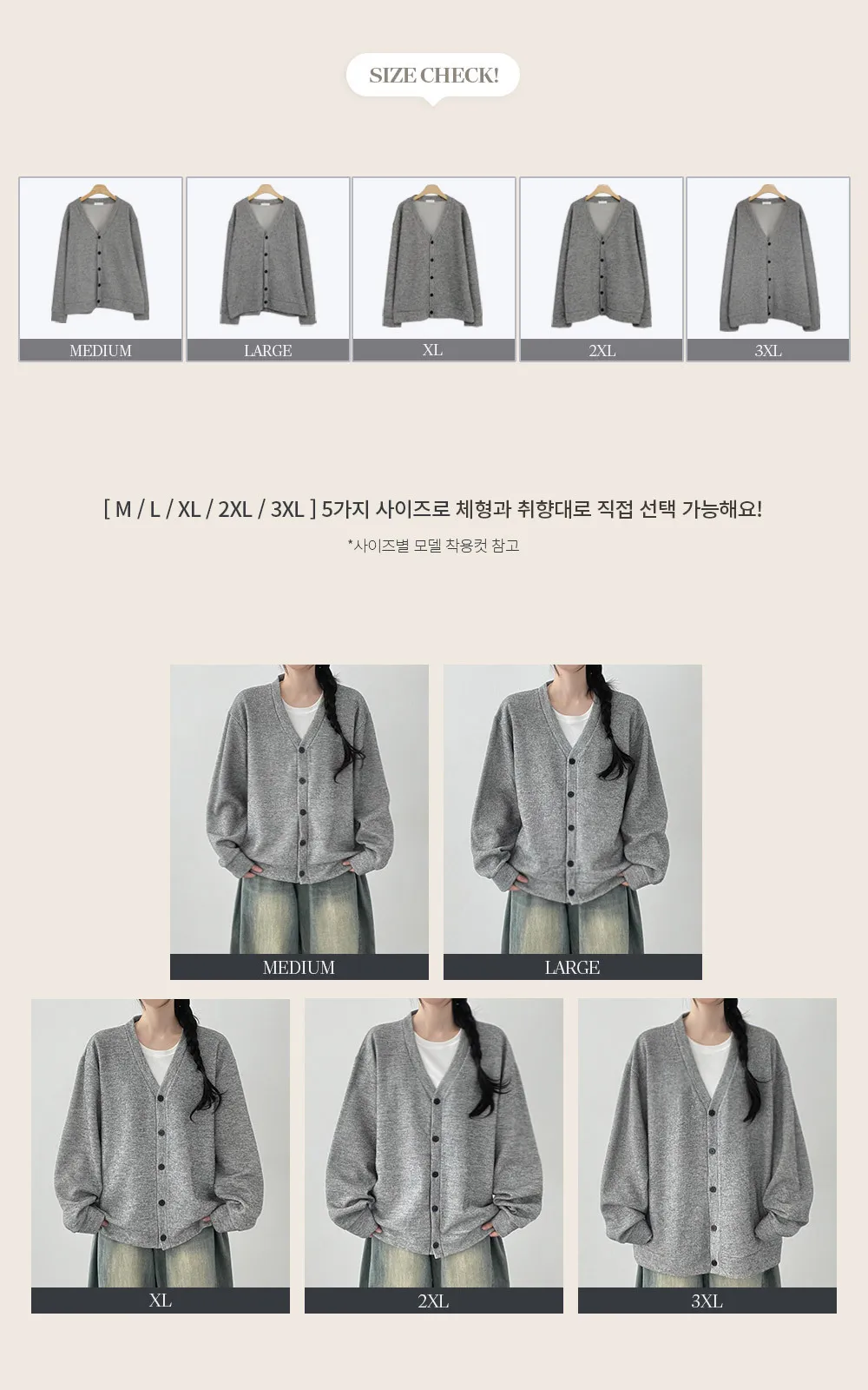 着用 : グレー / M,グレー / L,グレー / XL,グレー / 2XL,グレー / 3XL,ブラウン / XL,ライトベージュ / XL