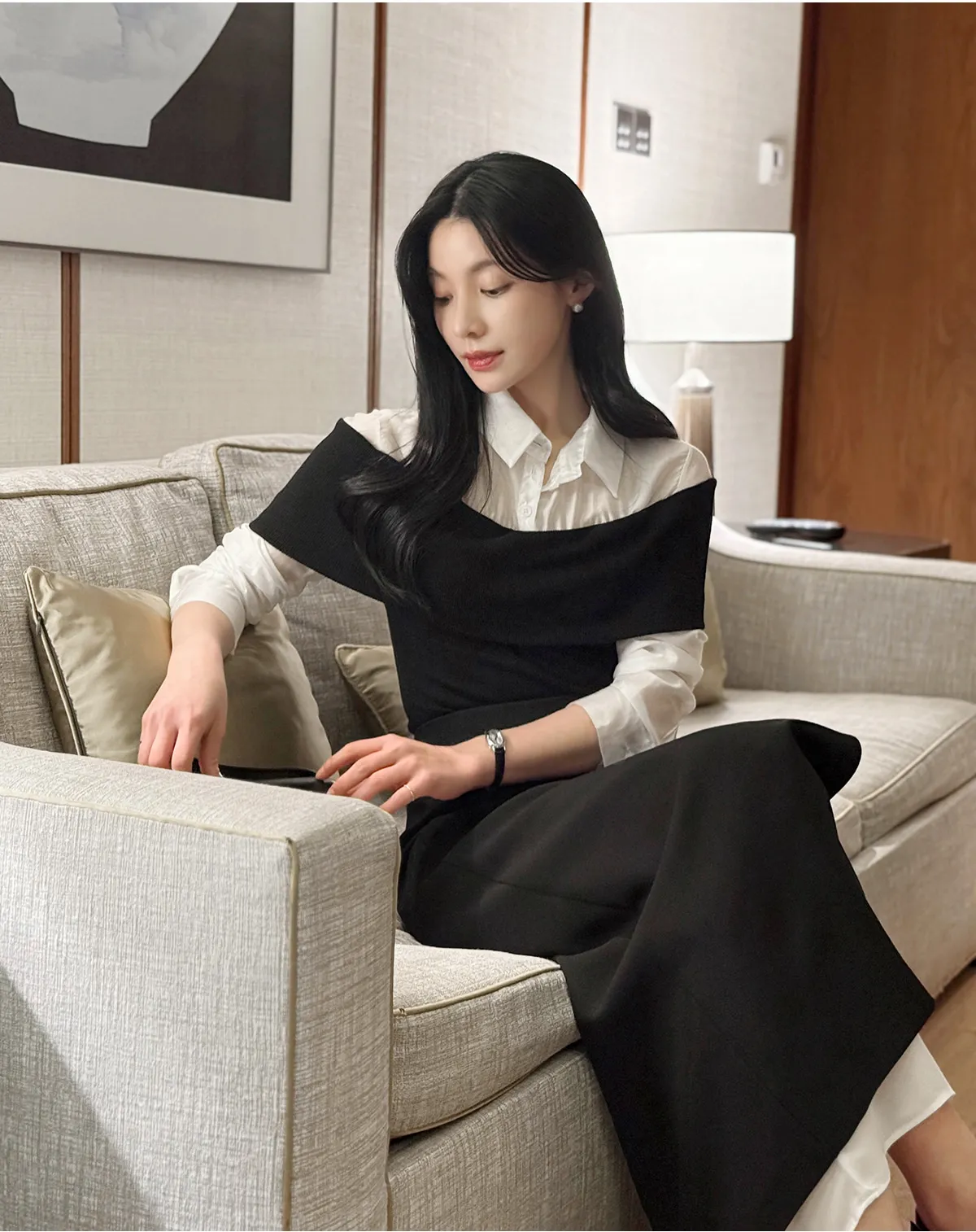 着用 : ベージュ / FREE,ブラック / FREE