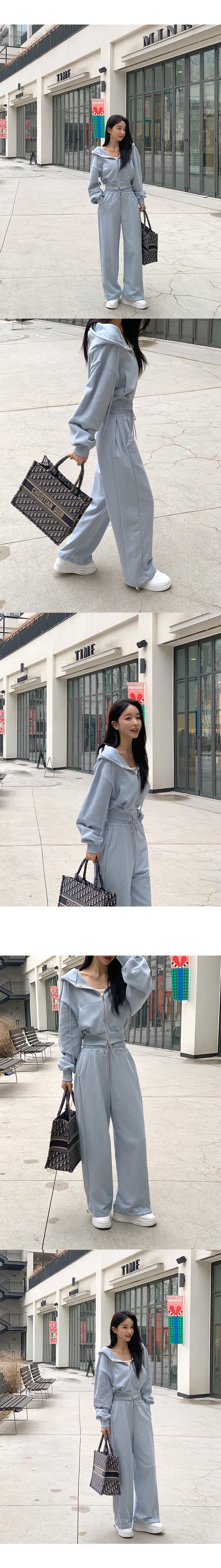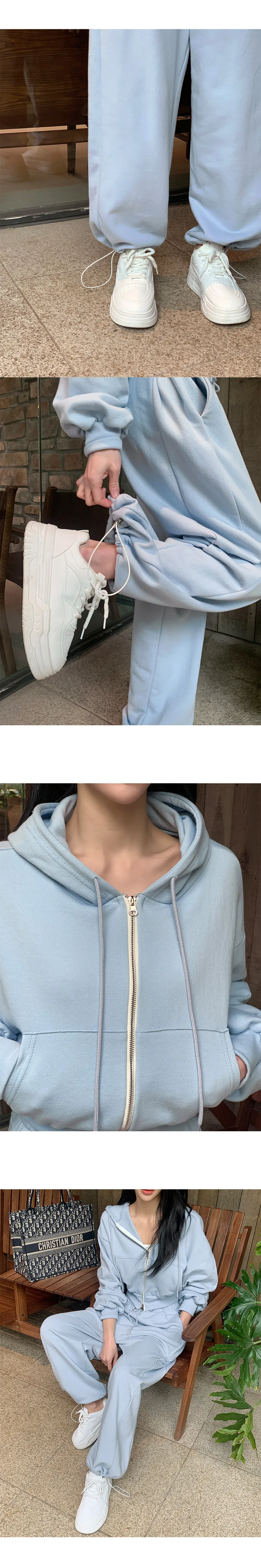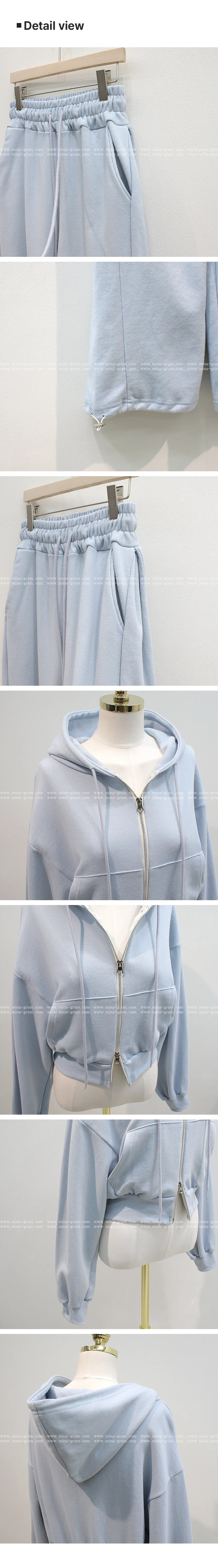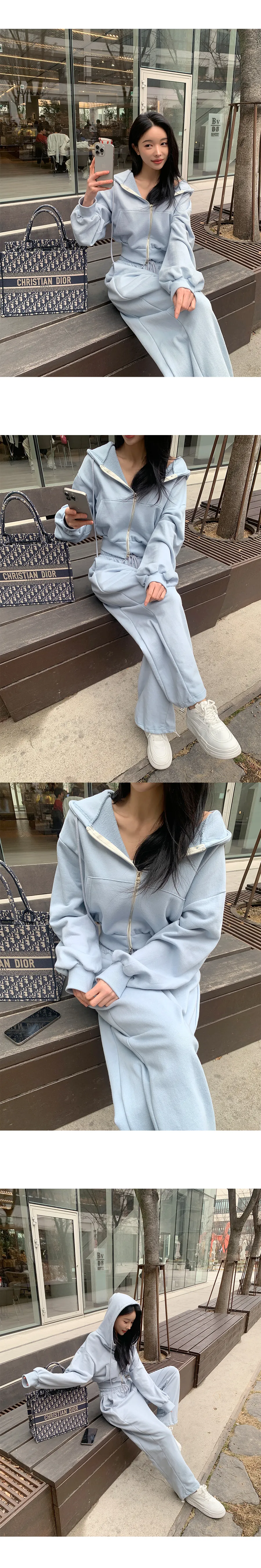 ベロアコーデュロイフード長袖ジップアップハーフウエストゴムドローストリングポケットワイド無地ジップパーカーパンツツーピース(トップス、ボトムス)