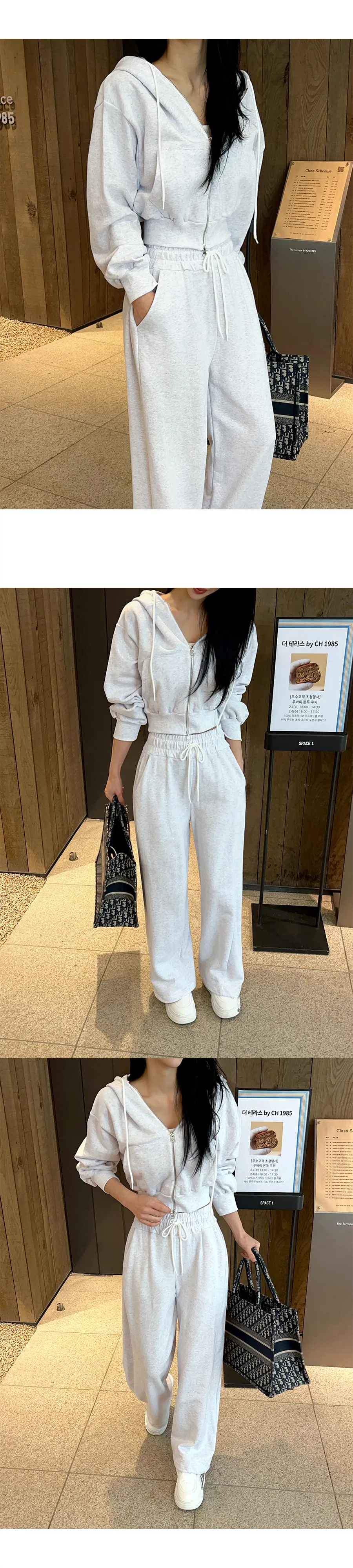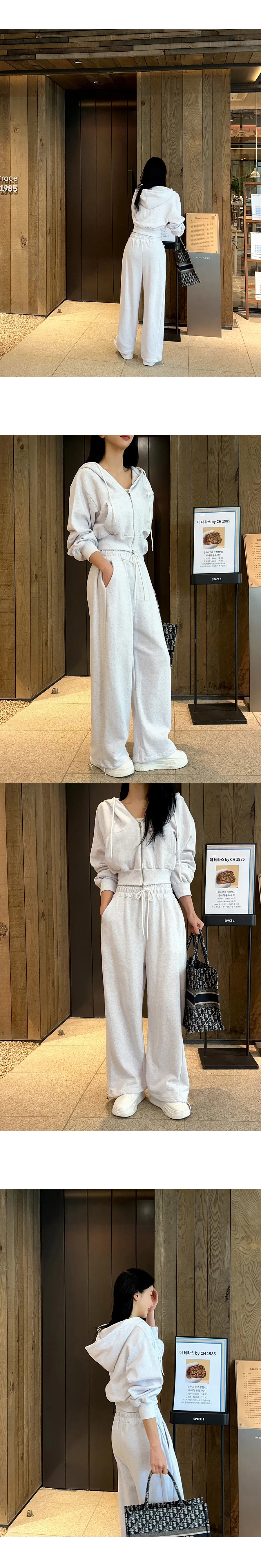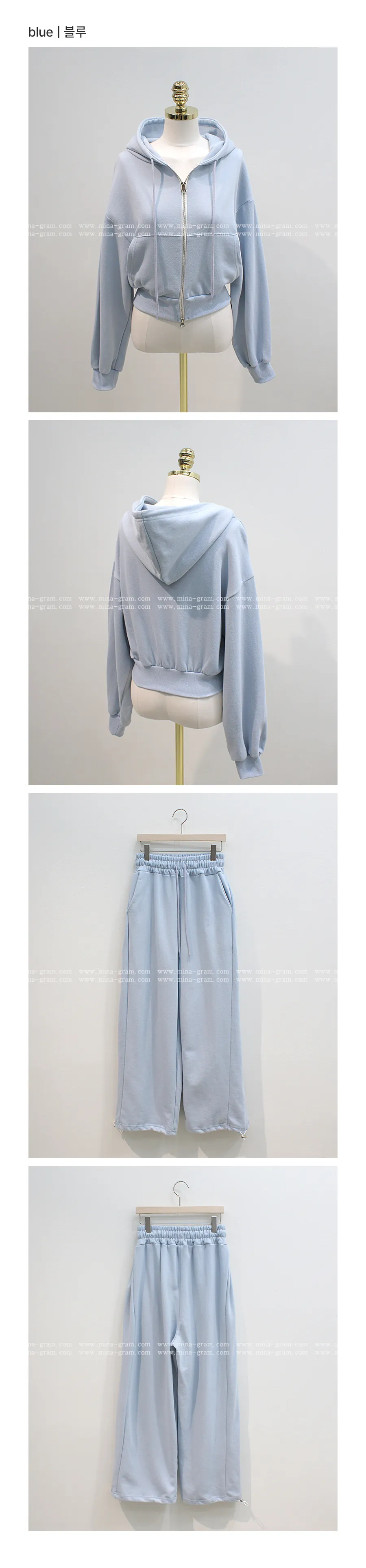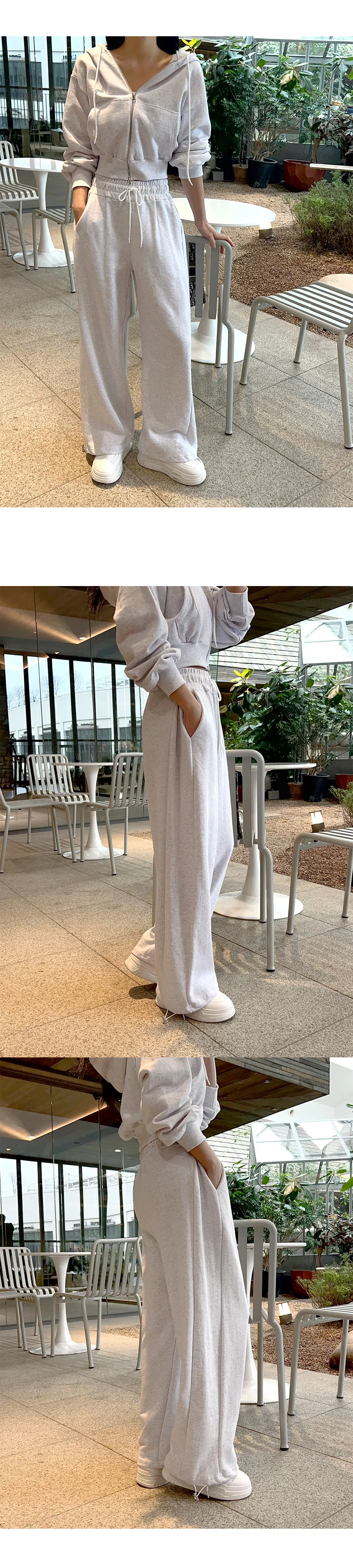 ベロアコーデュロイフード長袖ジップアップハーフウエストゴムドローストリングポケットワイド無地ジップパーカーパンツツーピース(トップス、ボトムス)