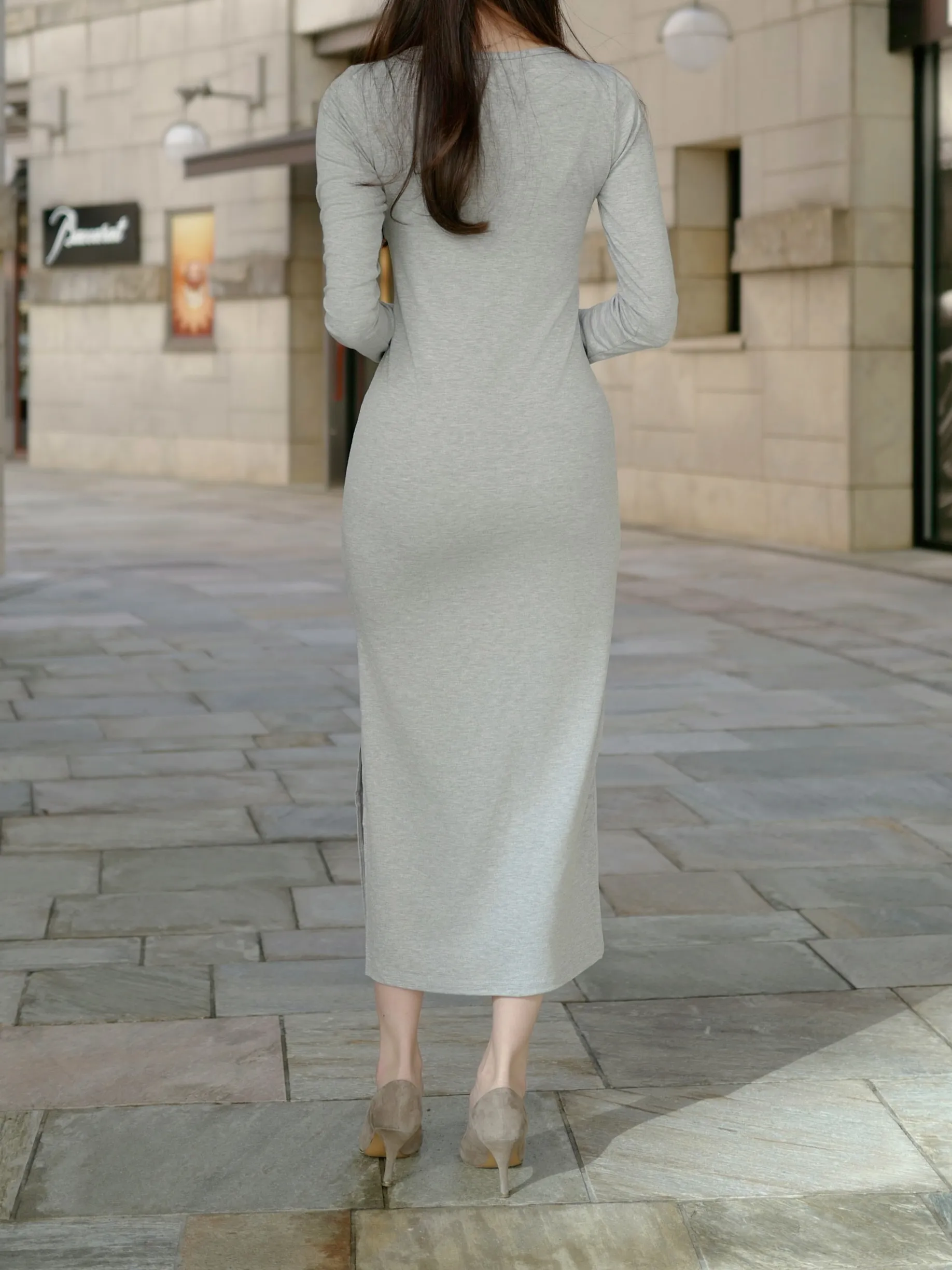 シンプルながら女性らしさが引き立つ大人ロングワンピース。