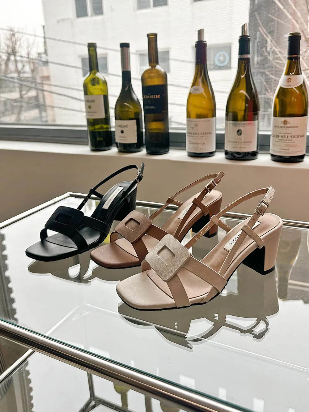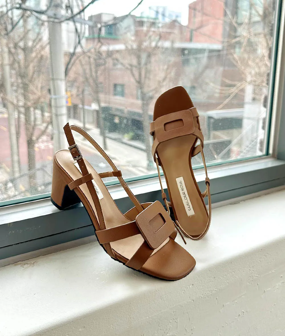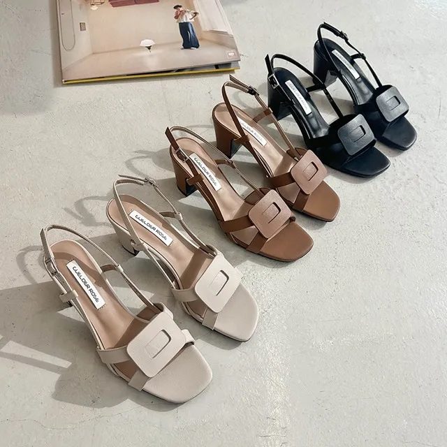 バックルカラーヒールサンダル