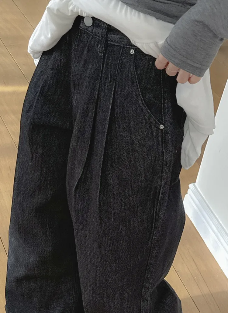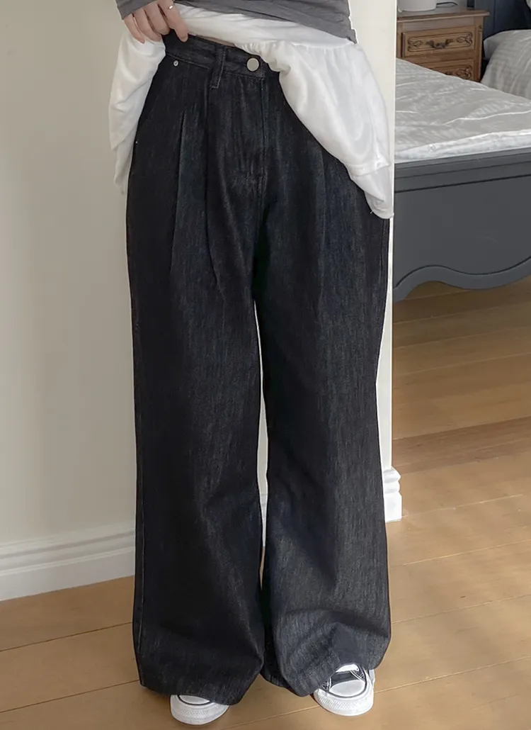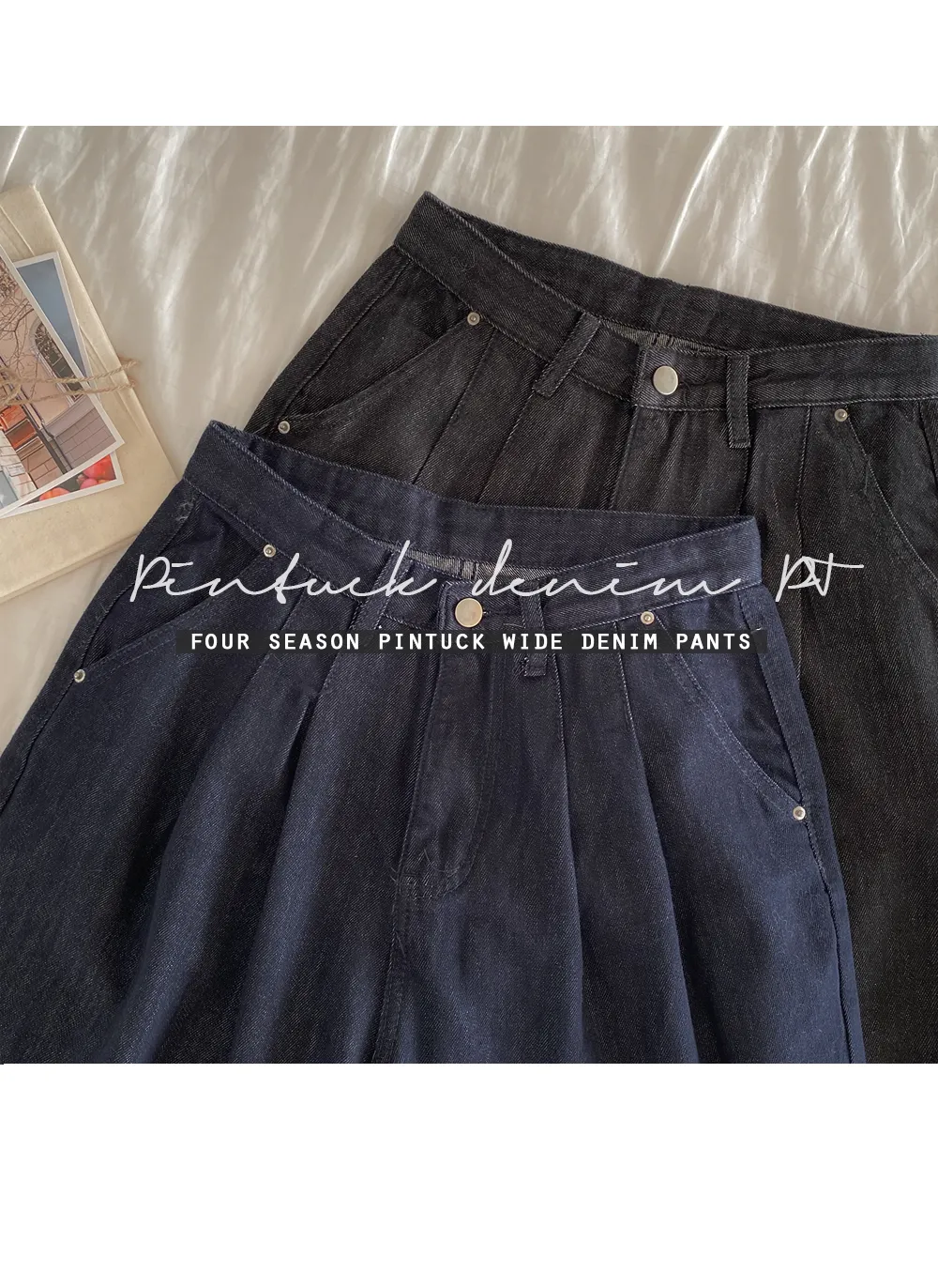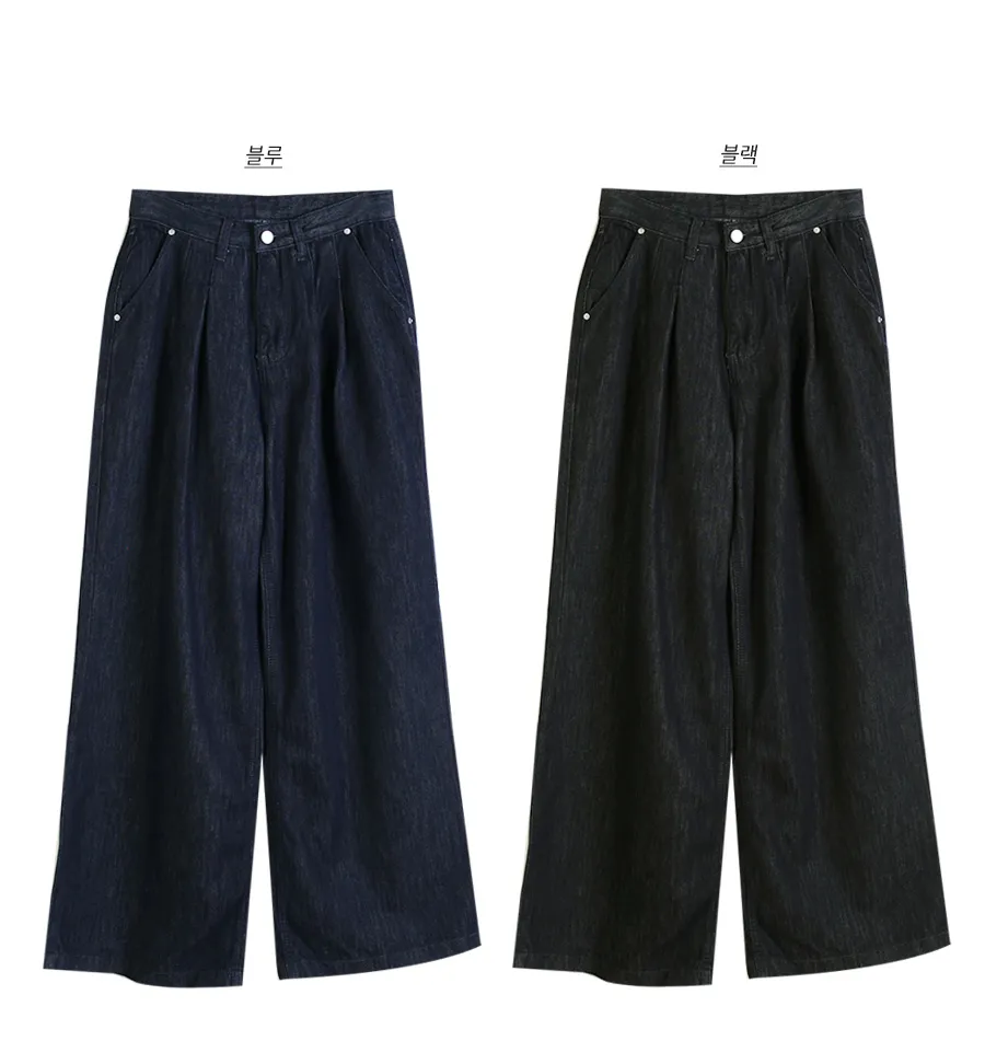ノンフェードノンウォッシュデニムジップアップポケットローライズステッチストレートリベットワイドシークレットボタンループスナップボタンバックポケットデニムパンツ