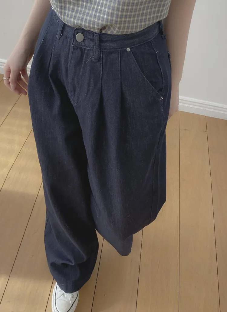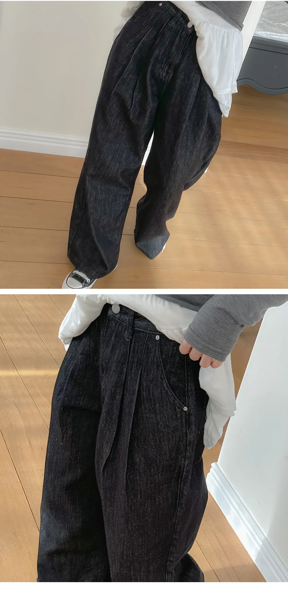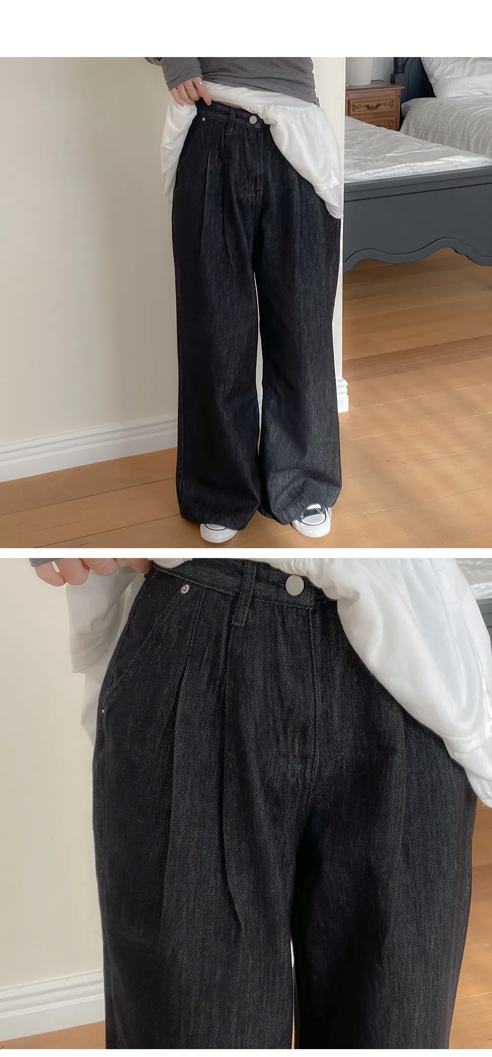 ノンフェードノンウォッシュデニムジップアップポケットローライズステッチストレートリベットワイドシークレットボタンループスナップボタンバックポケットデニムパンツ