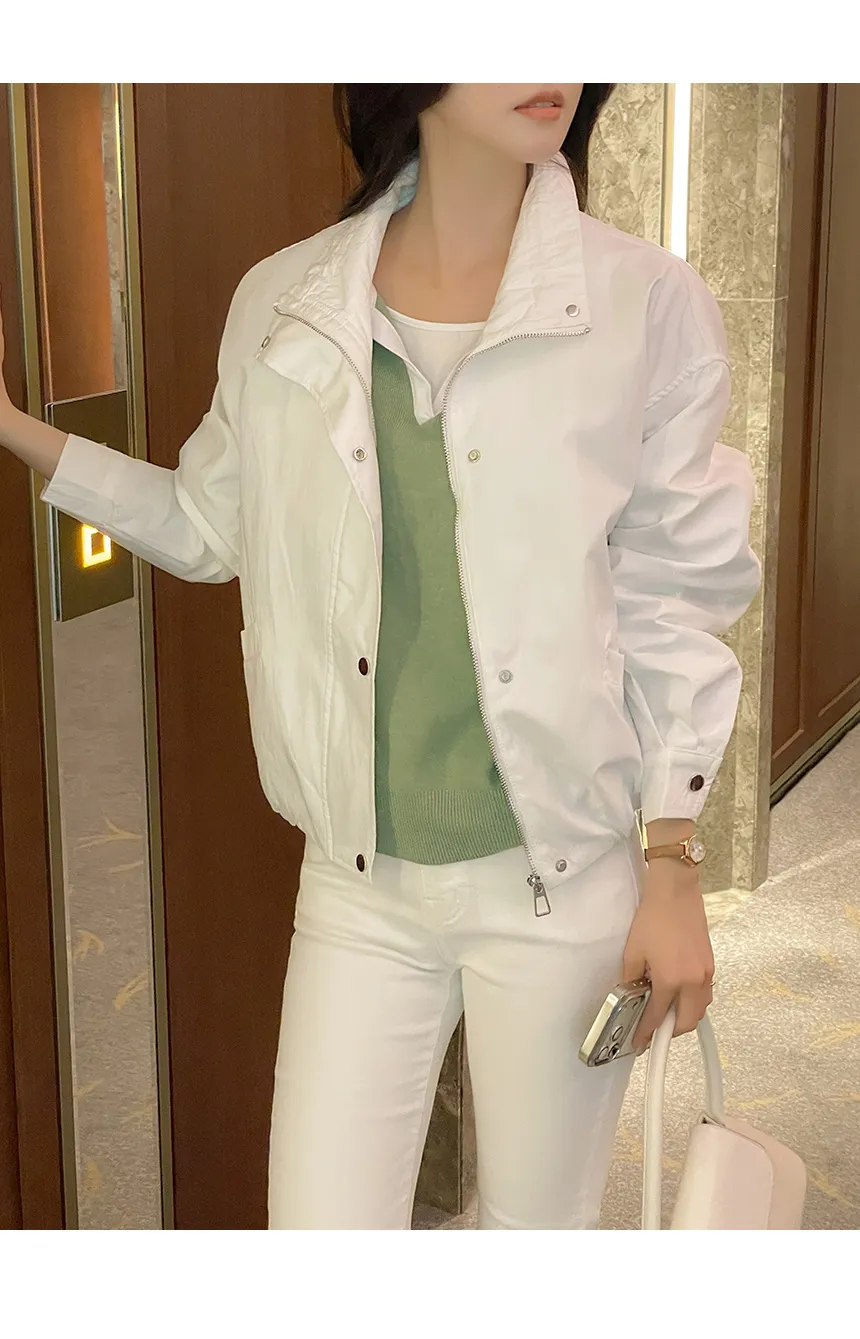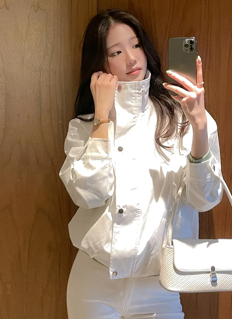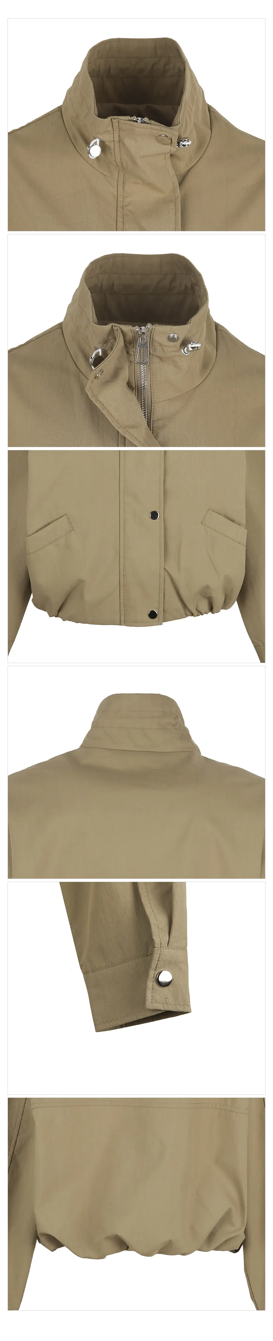 コットンハイネックスナップボタンジップアップドローコード長袖ゴムドロップショルダーカーゴフラップポケットアウトポケットオーバーサイズハーフライン無地ジャンパー