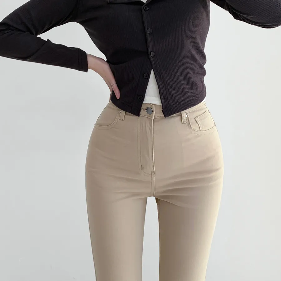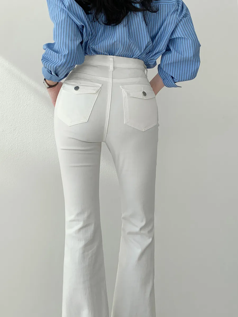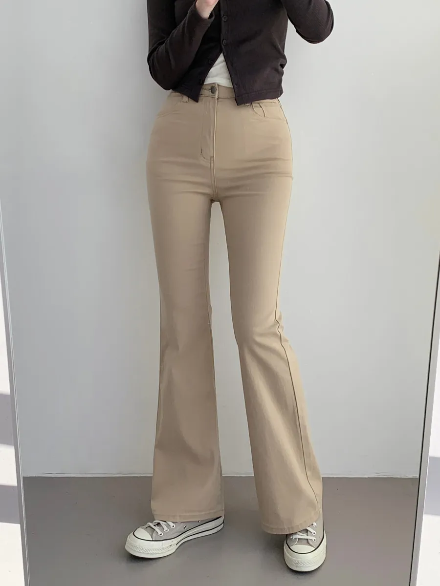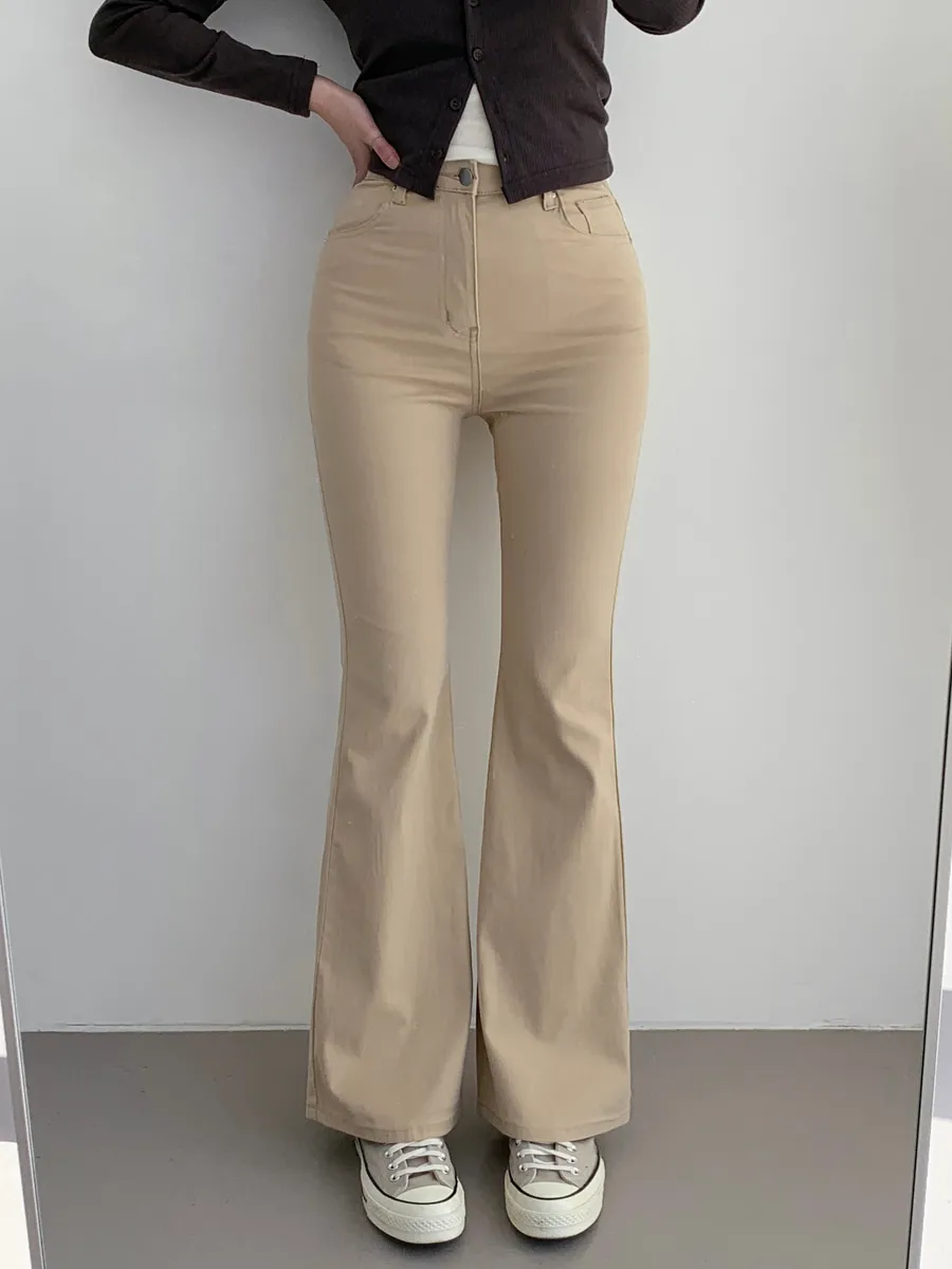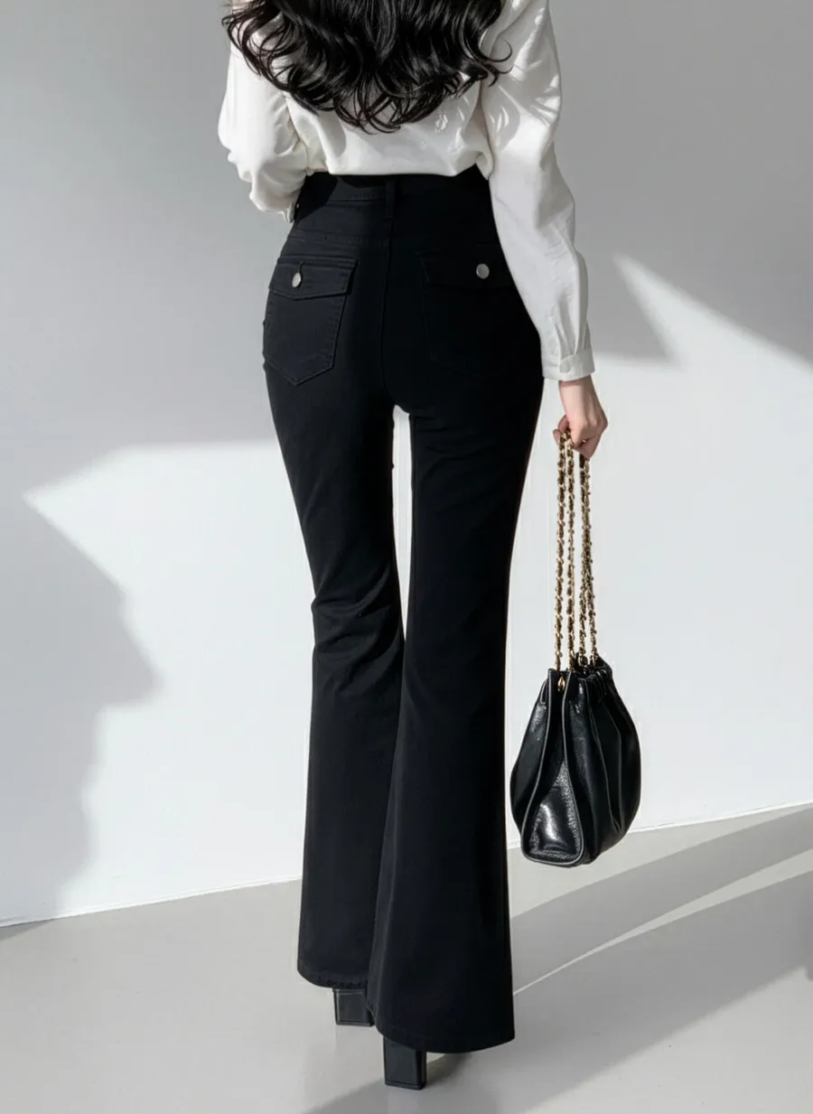 ジップアップバックルドローストリングポケットローライズウエストゴムフラップポケットリベットスナップボタンバックポケットブーツカット無地パンツ[選べる丈]