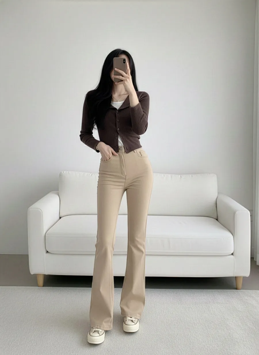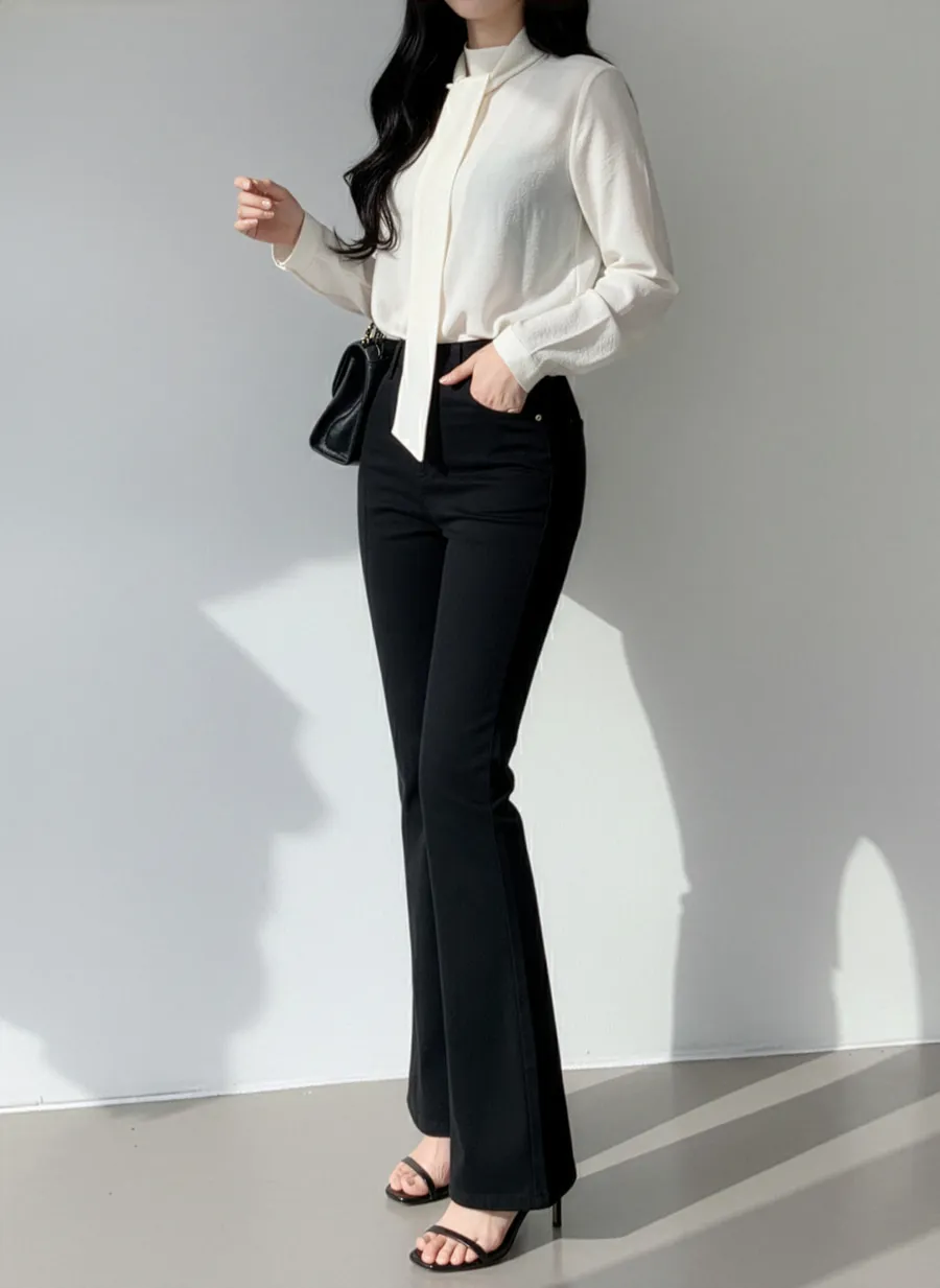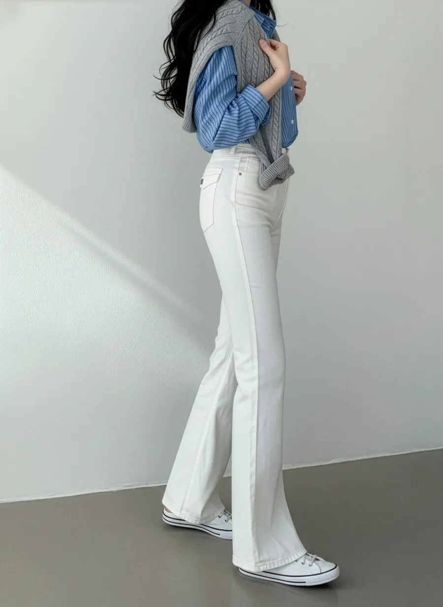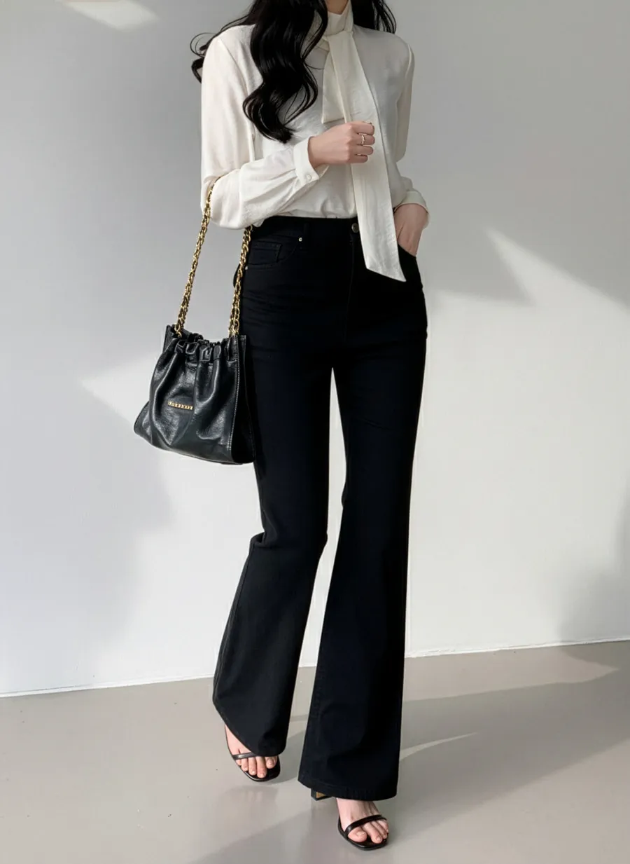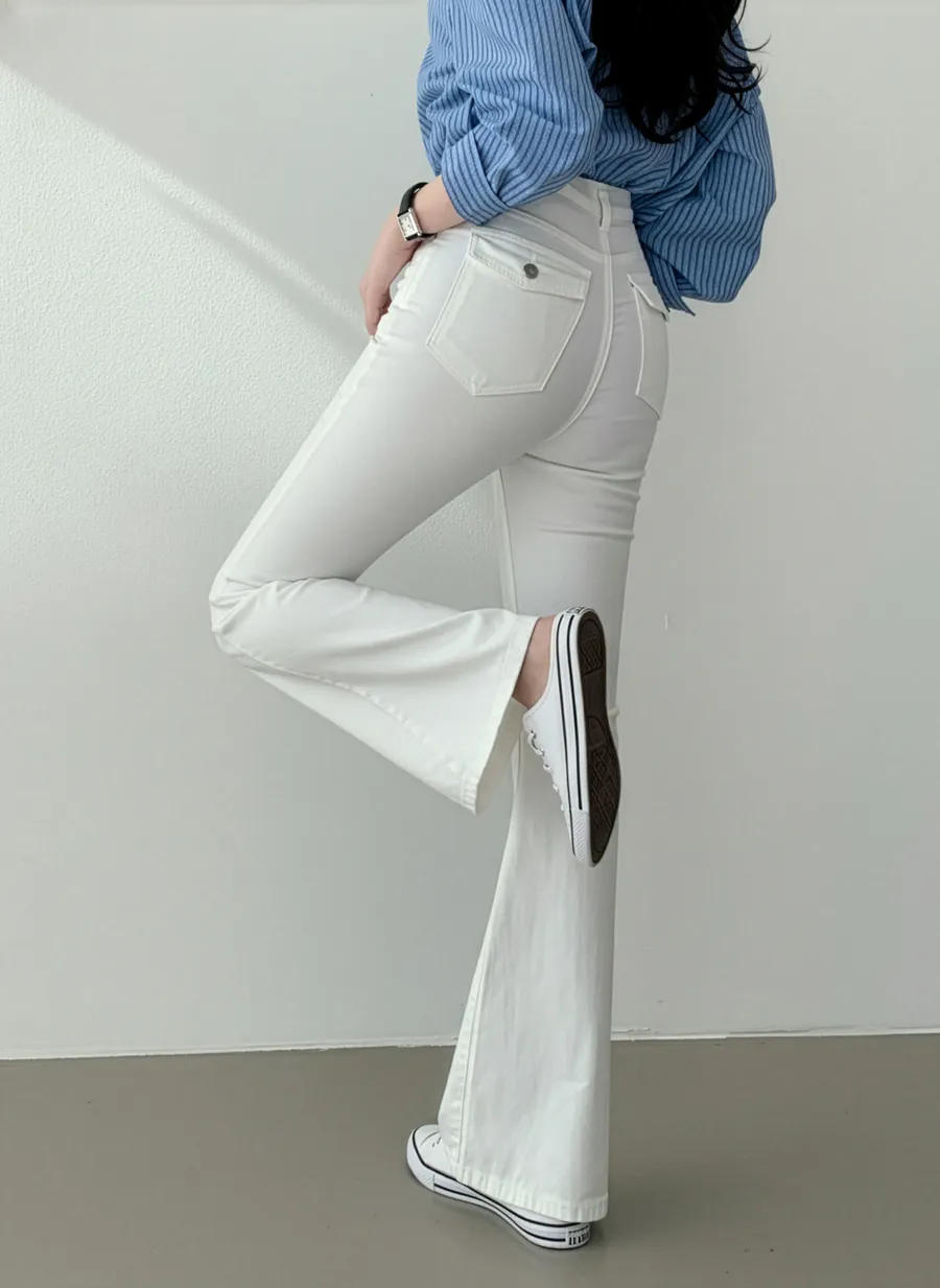 ジップアップバックルドローストリングポケットローライズウエストゴムフラップポケットリベットスナップボタンバックポケットブーツカット無地パンツ[選べる丈]