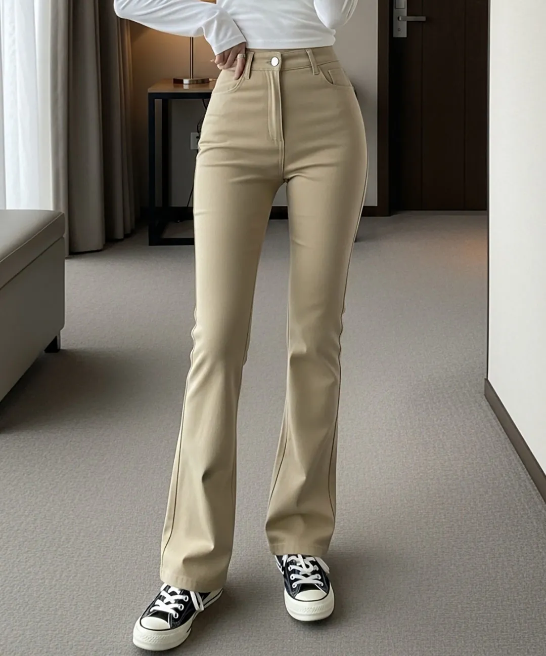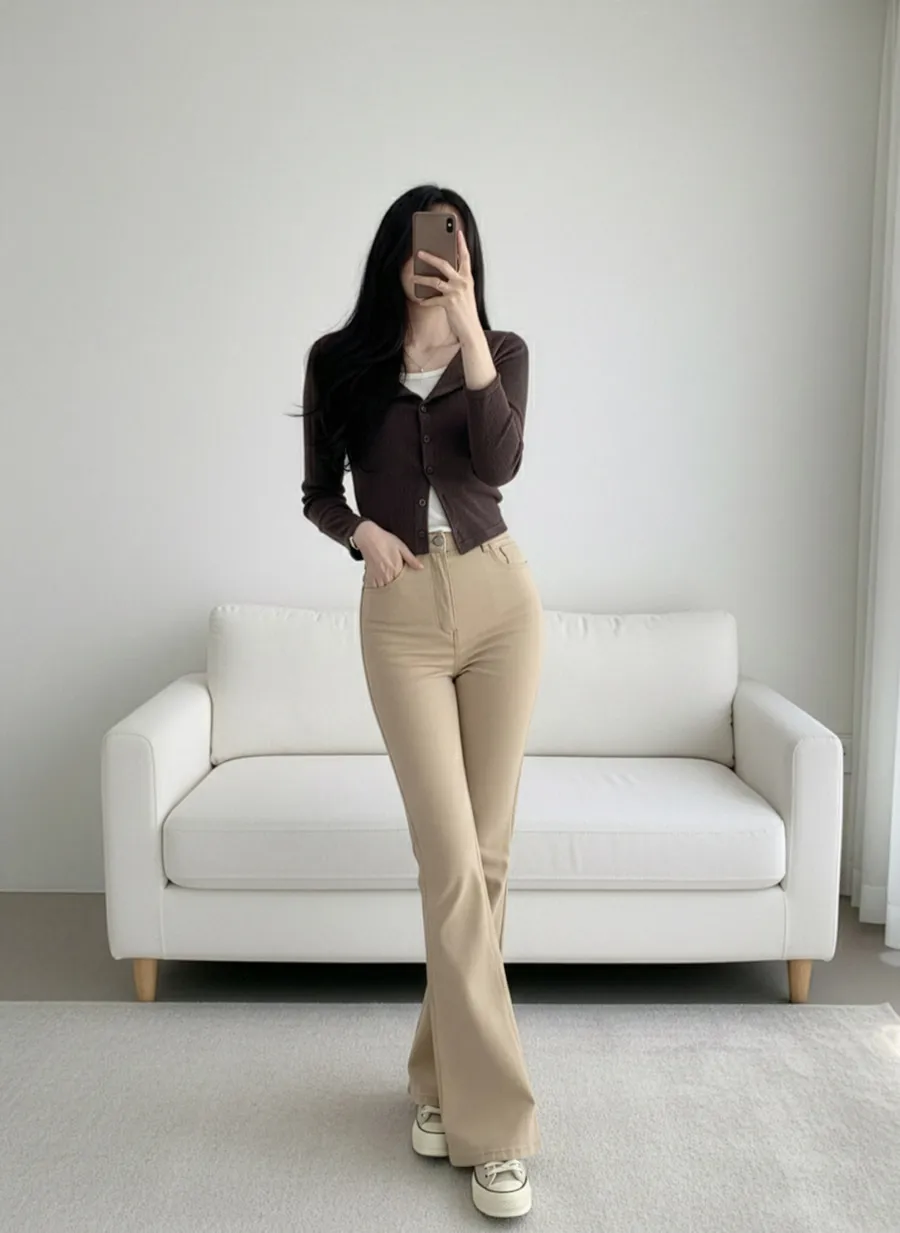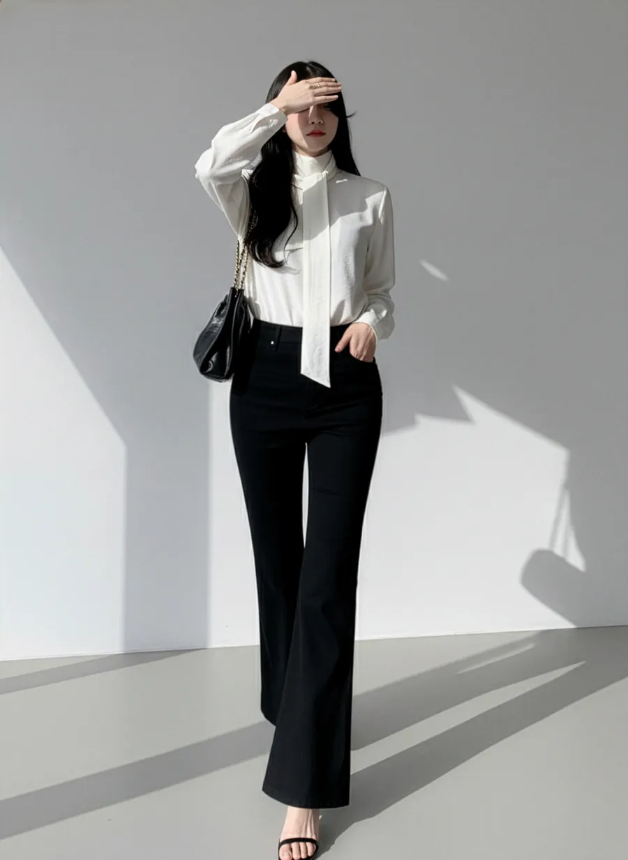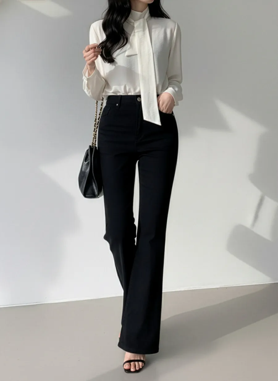 ジップアップバックルドローストリングポケットローライズウエストゴムフラップポケットリベットスナップボタンバックポケットブーツカット無地パンツ[選べる丈]