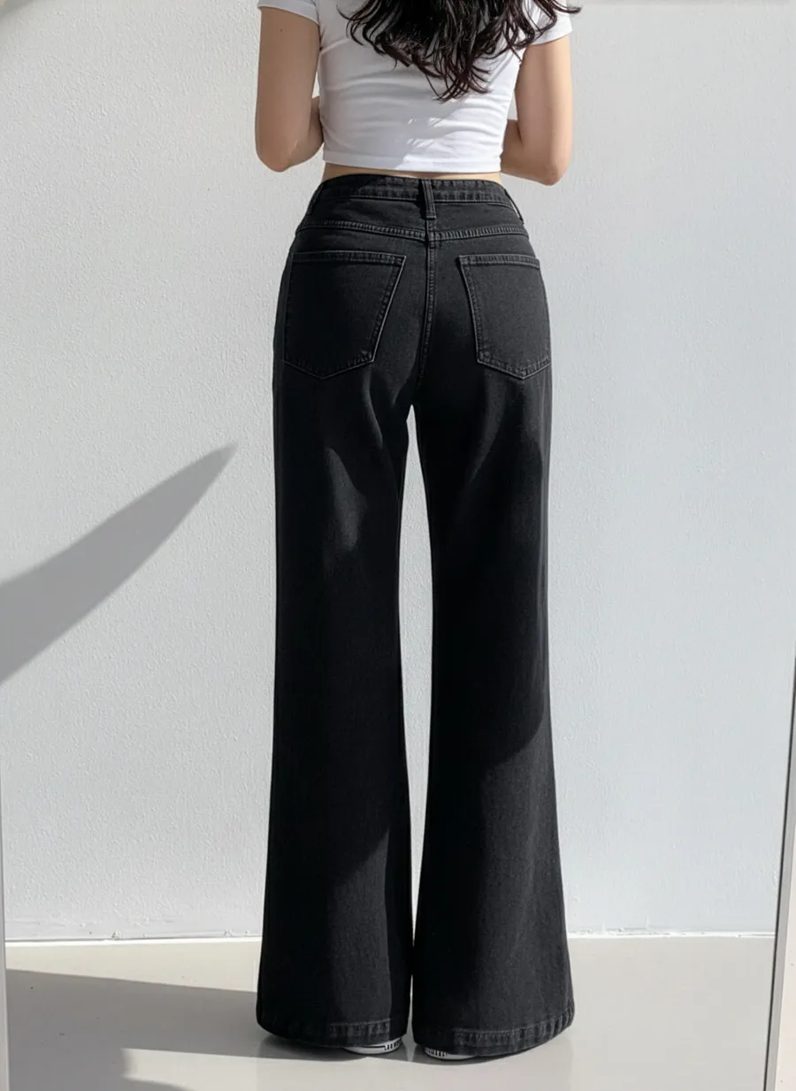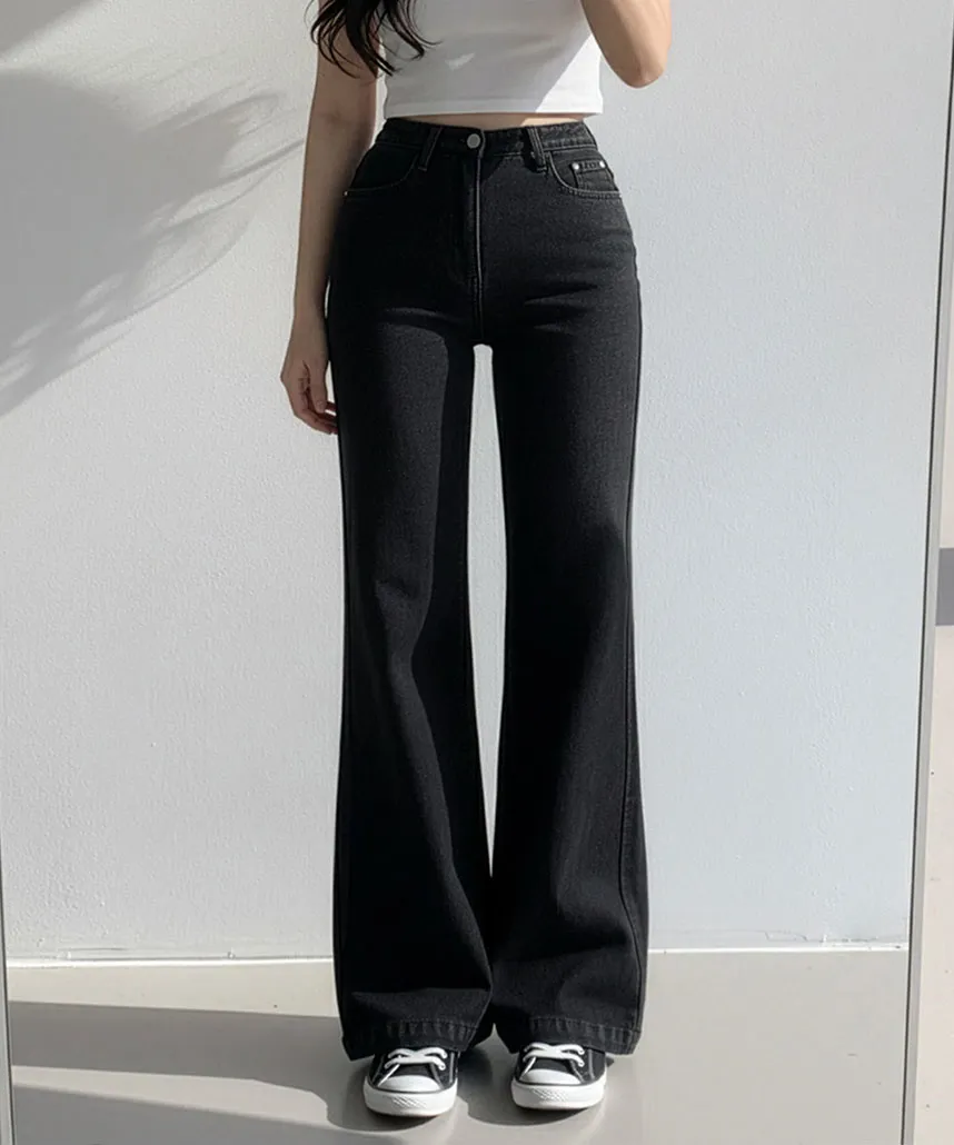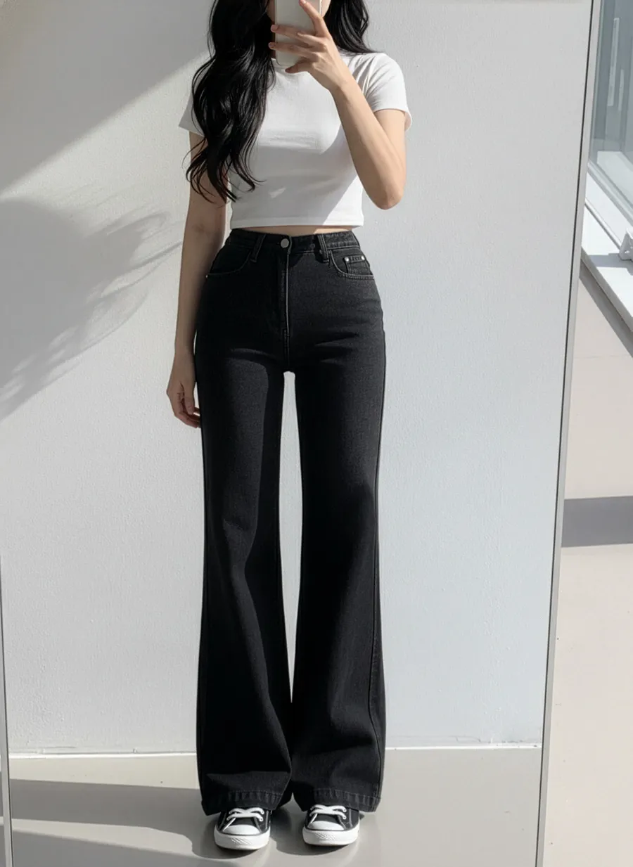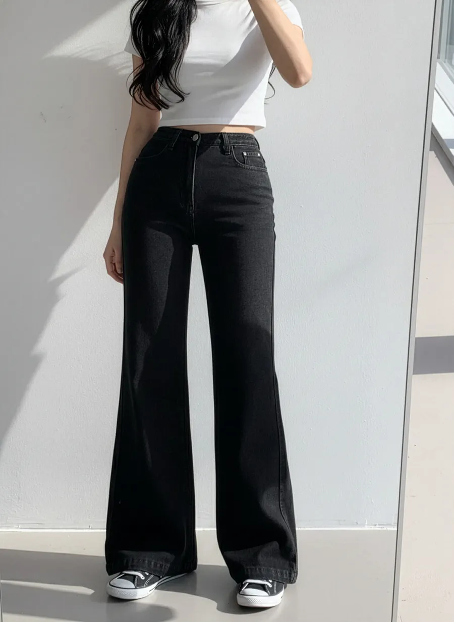 ジップアップバックルドローストリングポケットローライズウエストゴムフラップポケットリベットスナップボタンバックポケットブーツカット無地パンツ[選べる丈]