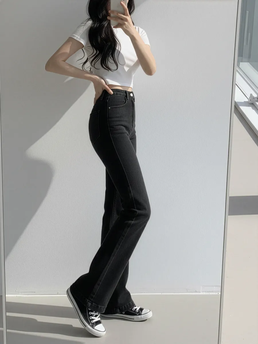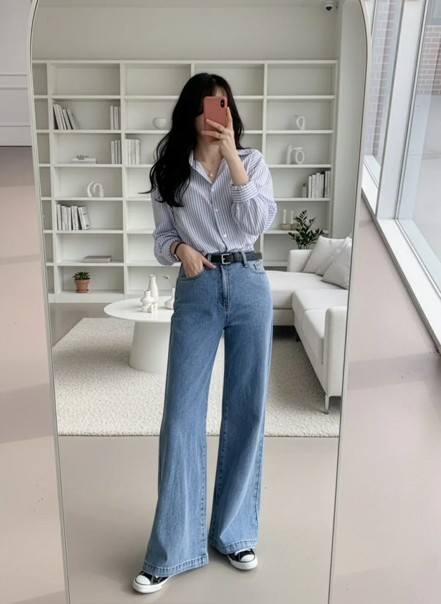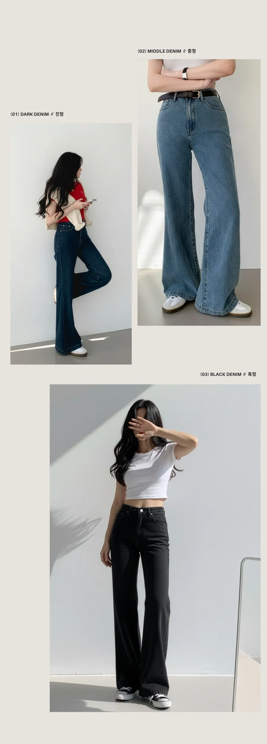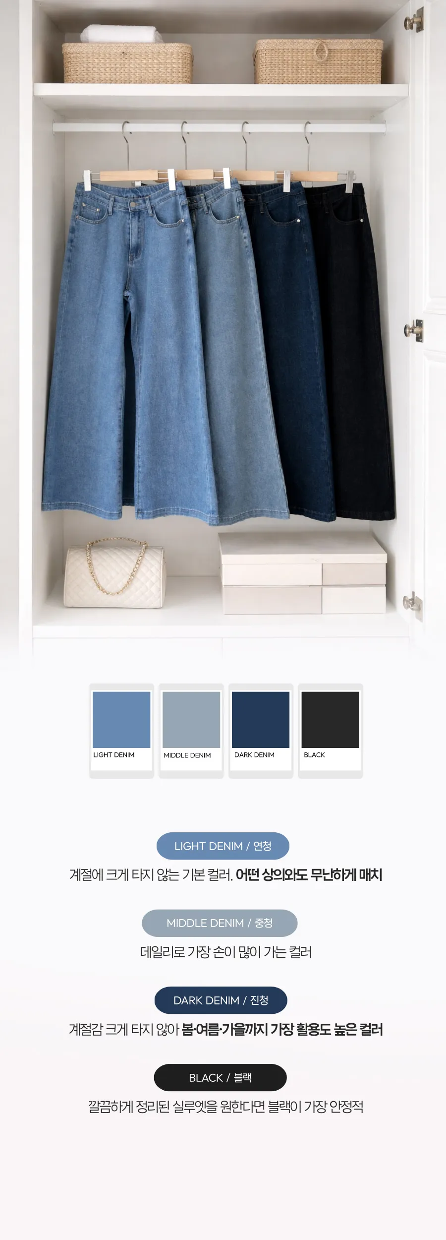 着用 : ブラック(1)-ミドル / M,ディープブルーデニム(2)-ミドル / M,ライトブルーデニム(3)-ミドル / M,ブルーデニム(4)-ミドル / M