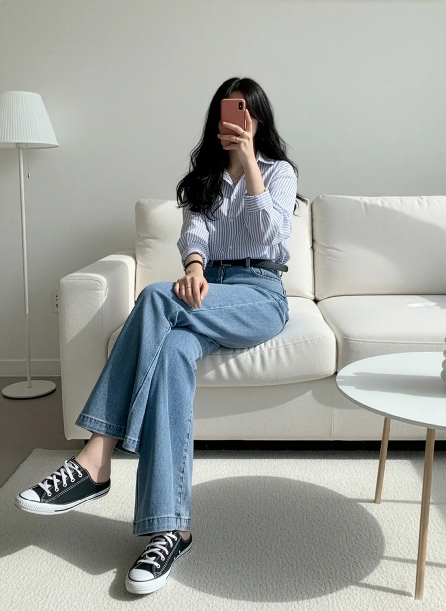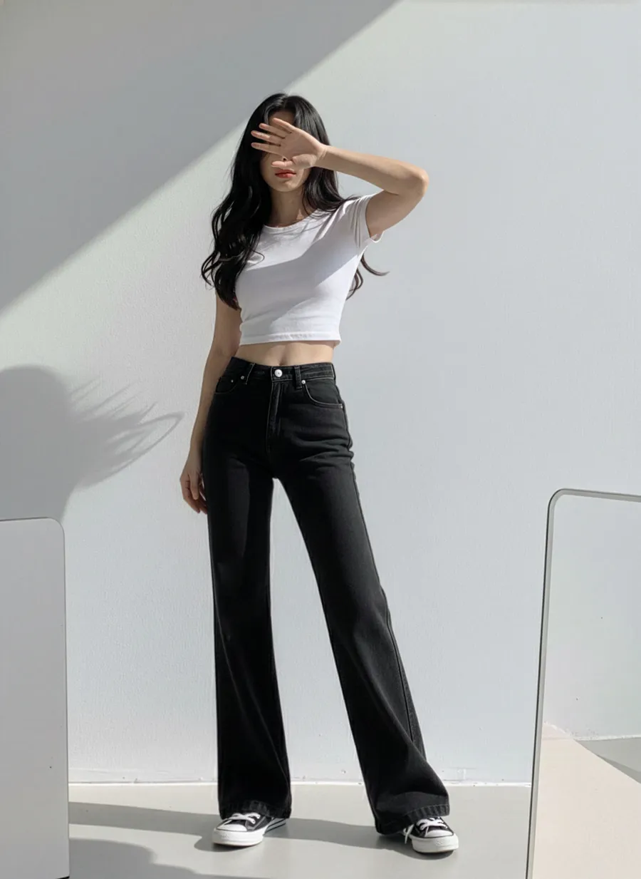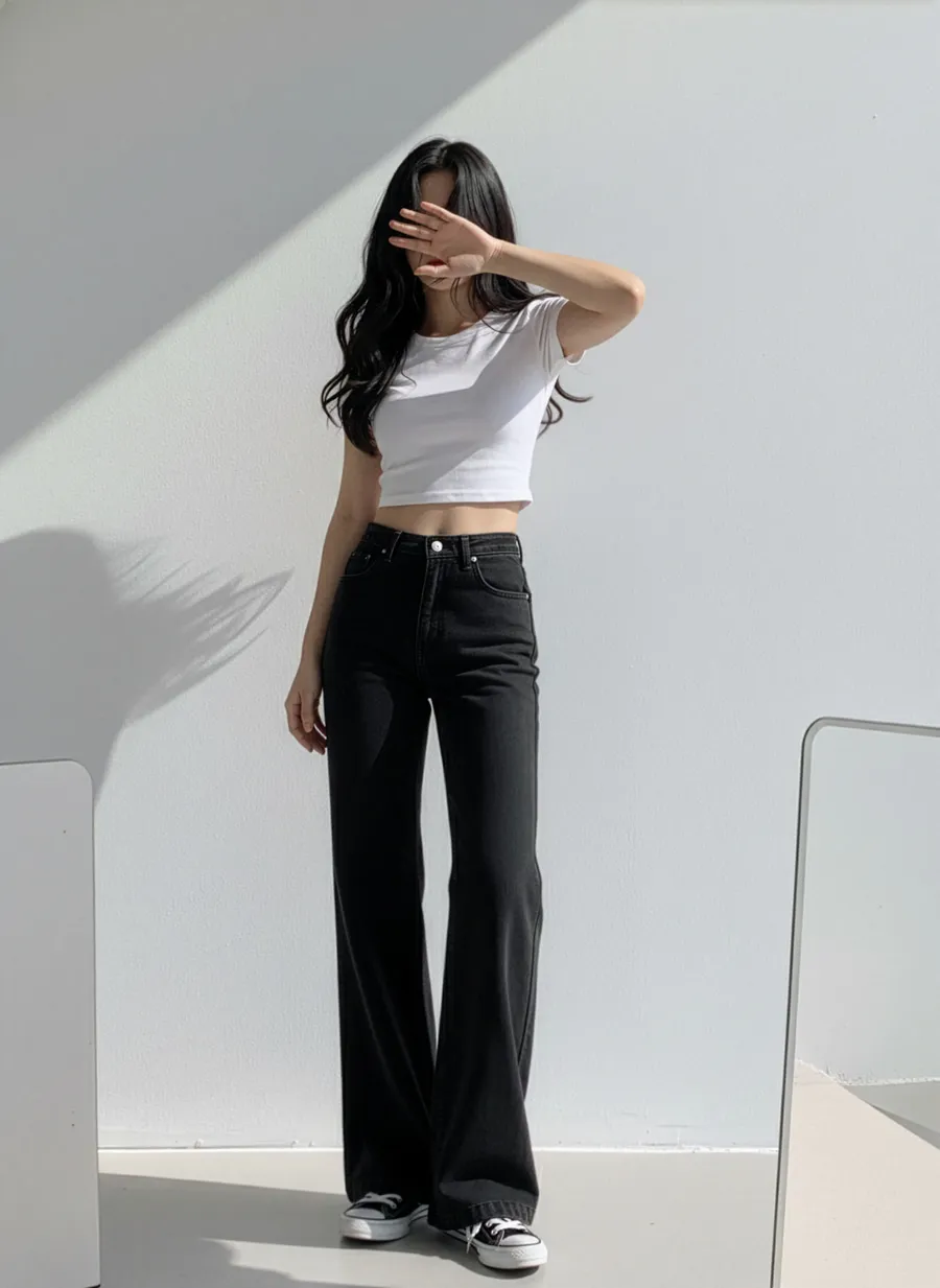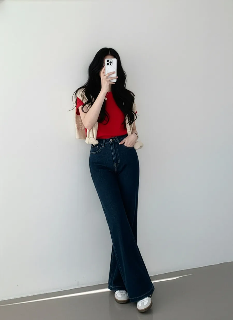 着用 : ブラック(1)-ミドル / M,ディープブルーデニム(2)-ミドル / M,ライトブルーデニム(3)-ミドル / M,ブルーデニム(4)-ミドル / M