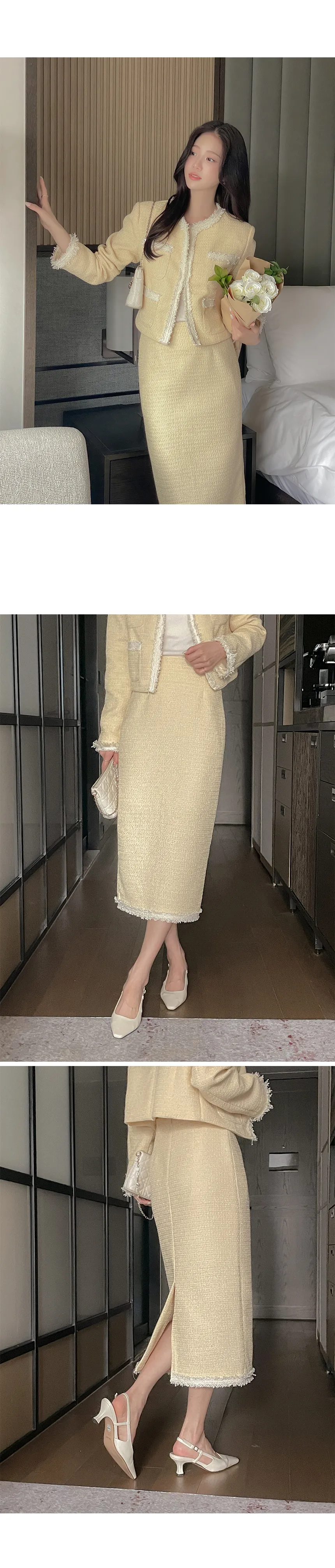 | Size | ウエスト | ヒップ | 裾幅 | 着丈 | スリット長さ |