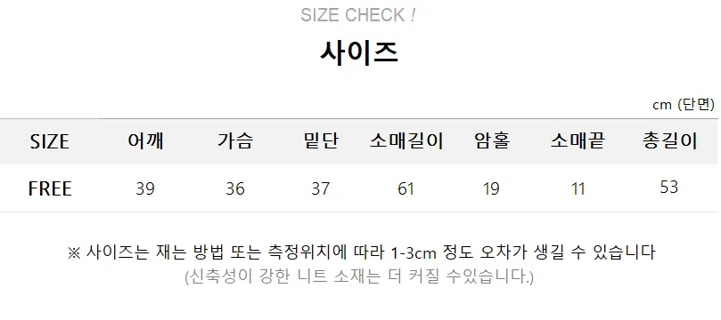 | Size | 肩幅 | 身幅 | 袖丈 | 着丈 | アームホール | 裾幅 |