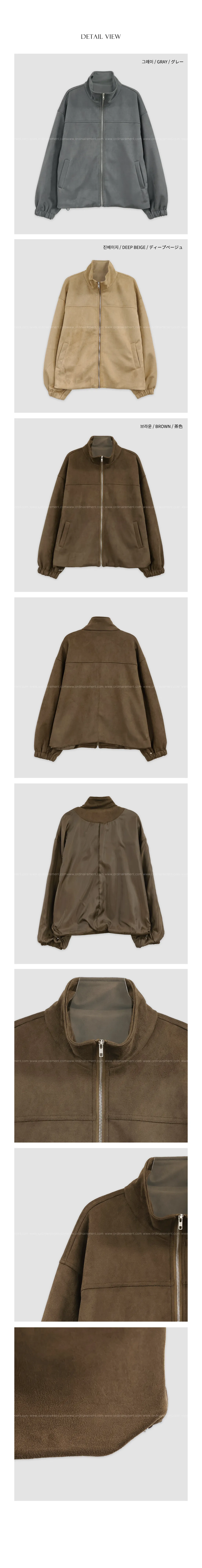 コットンジップアップハイネックドローストリングスリットピンタックゴムオーバーサイズロングルーズフラップポケットスナップボタンハーフドロップショルダー無地ジャンパー[選べる丈]