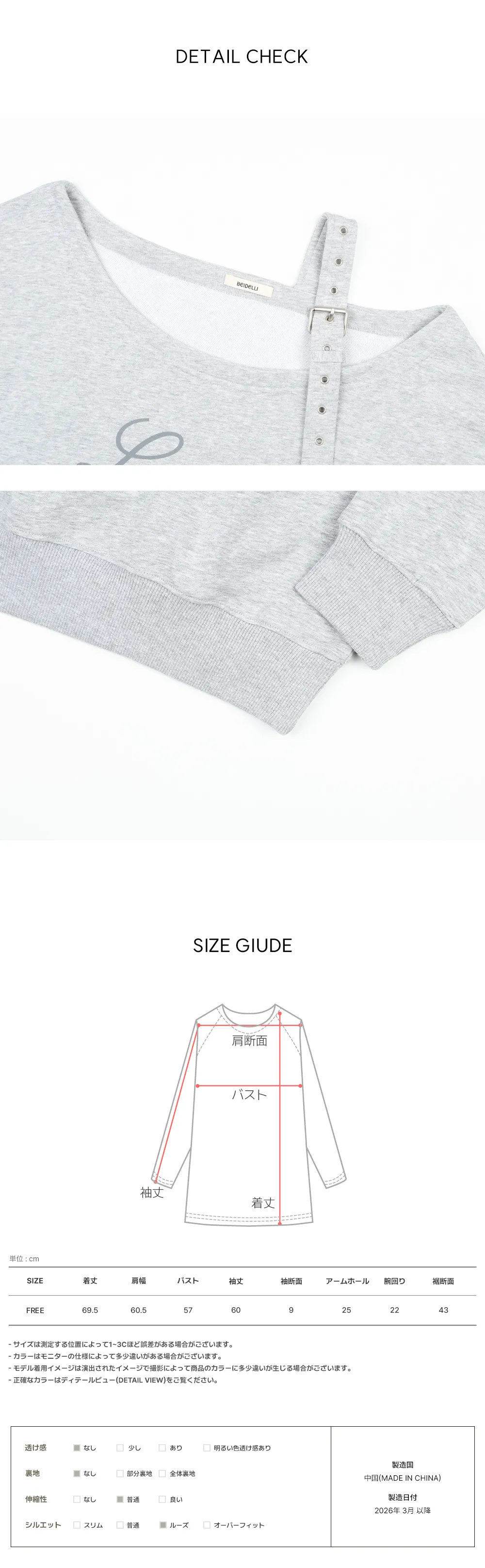 着用 : グレー / FREE