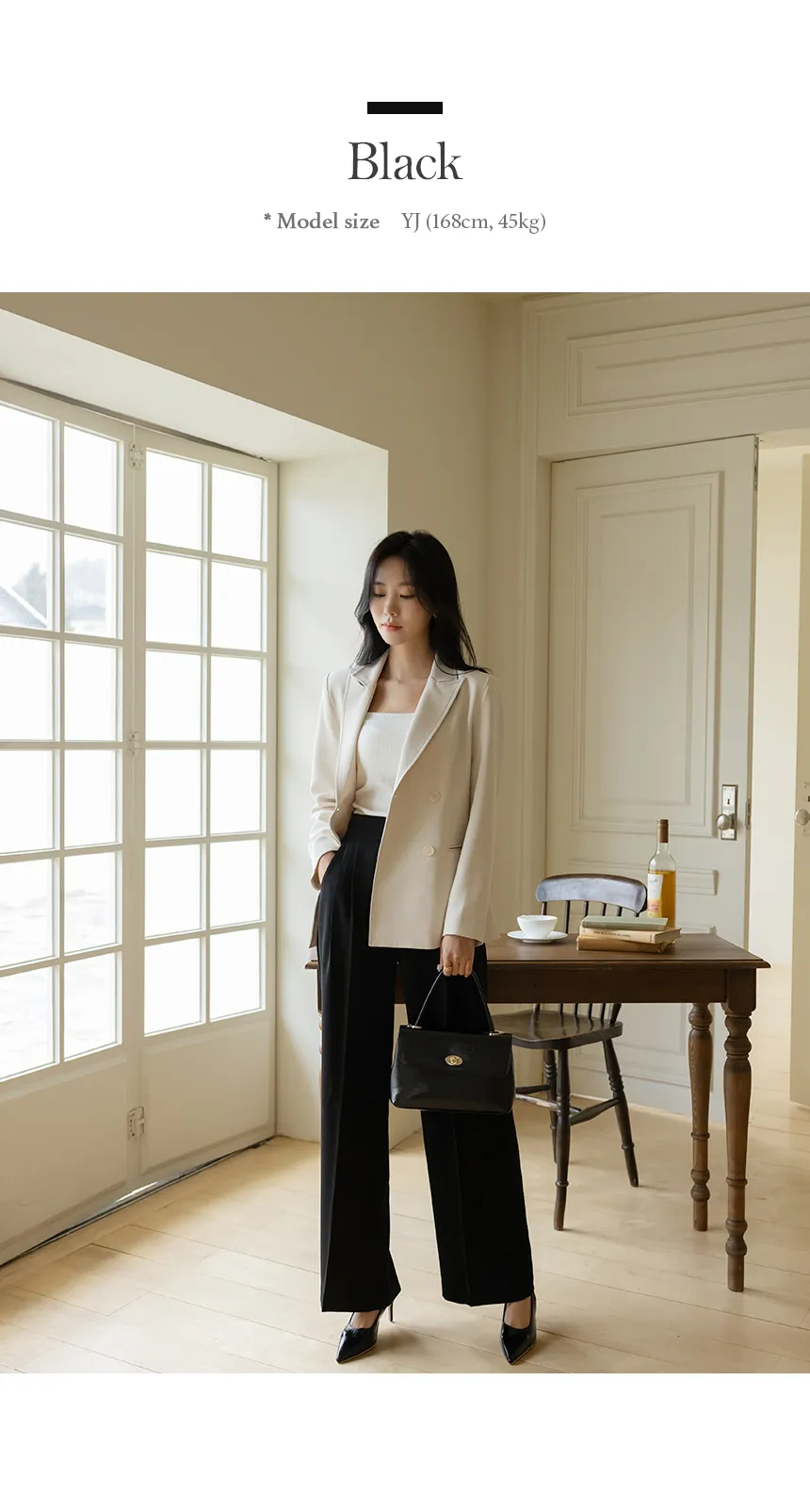 着用 : クリーム / S,スカイブルー / S,ブラック / S