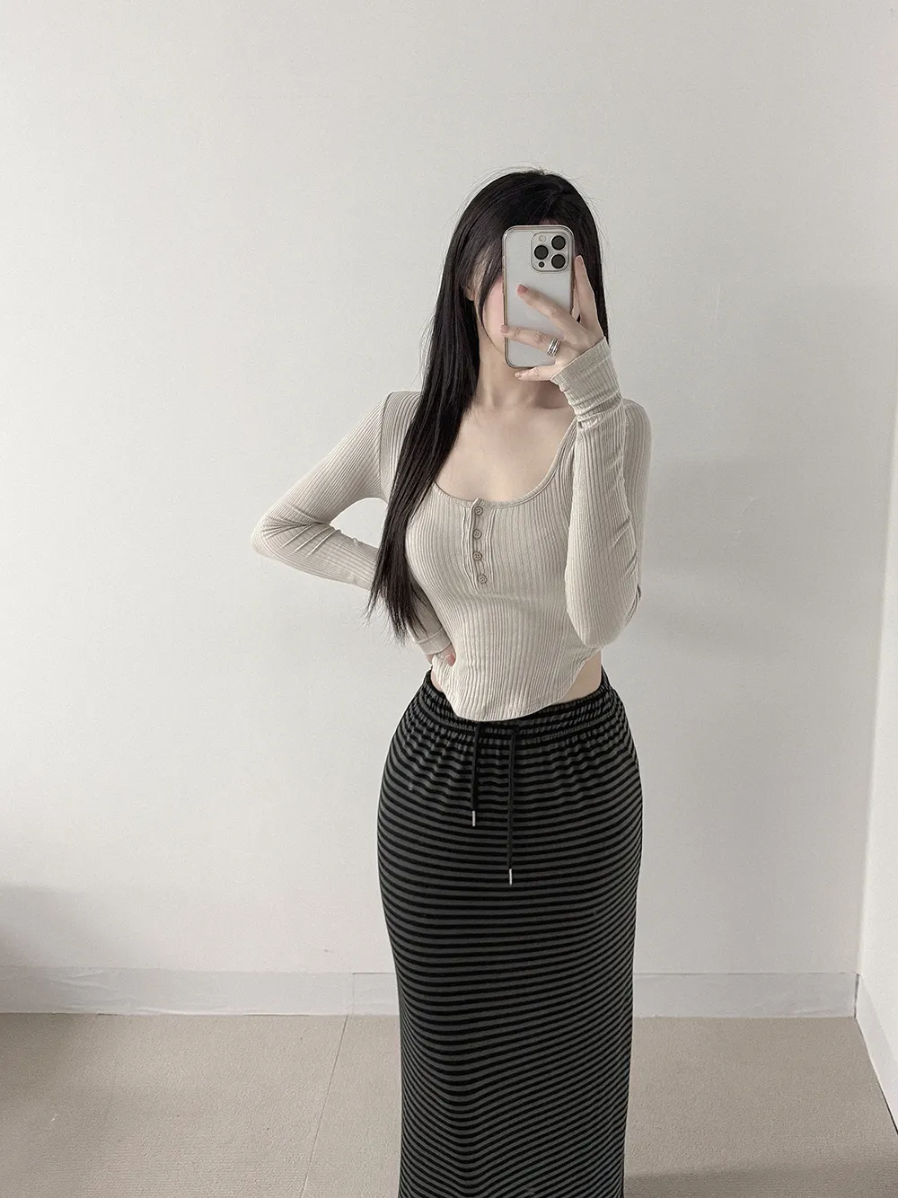 首元がすらっと長く見えて、