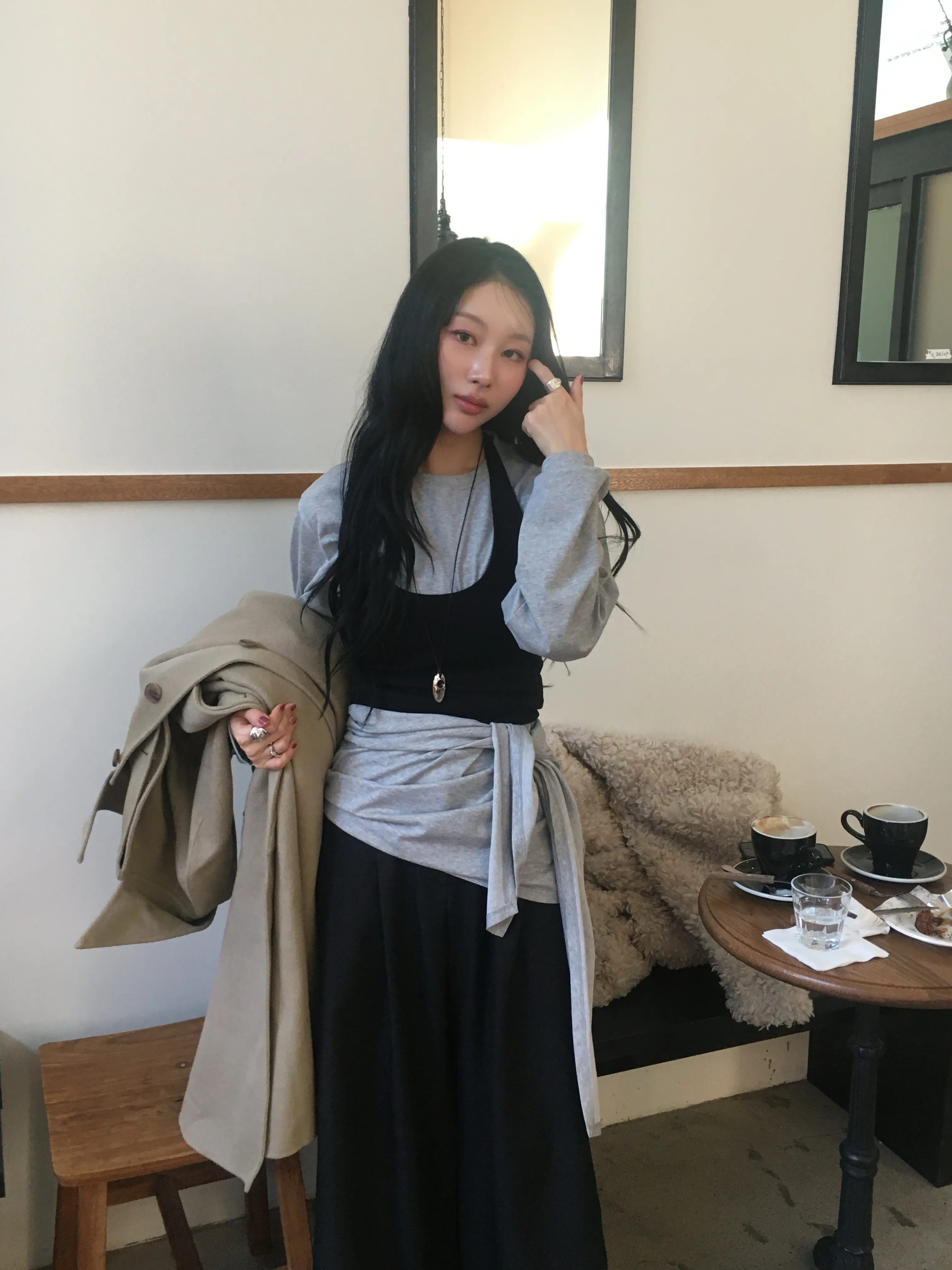 着用 : GRAY / FREE,WHITE / FREE