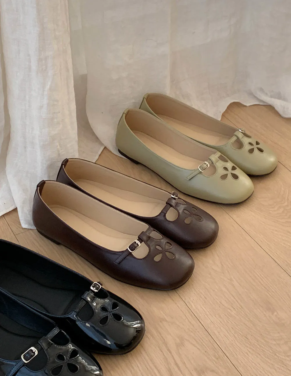 レザー調パンチングフラットシューズ・S1961044