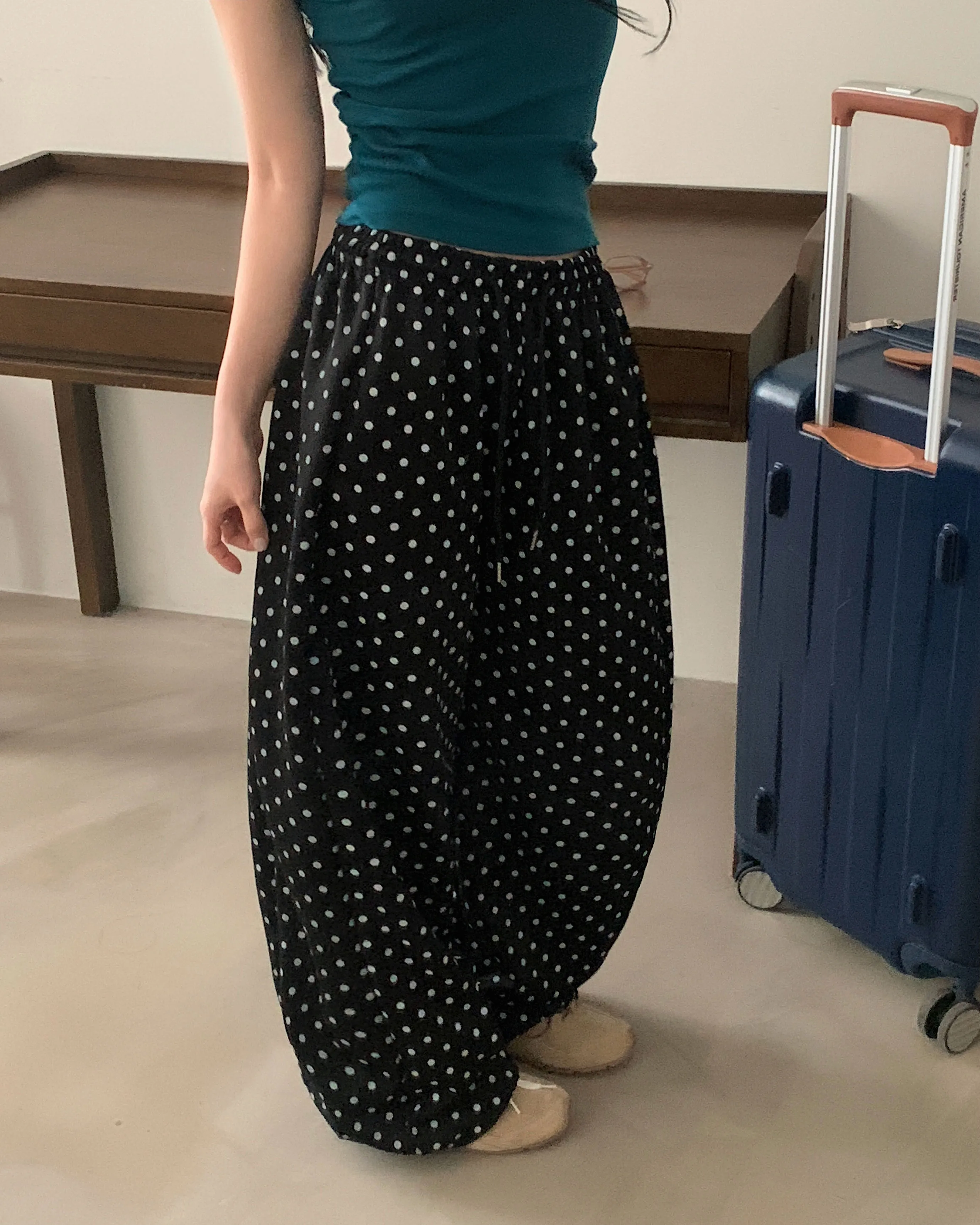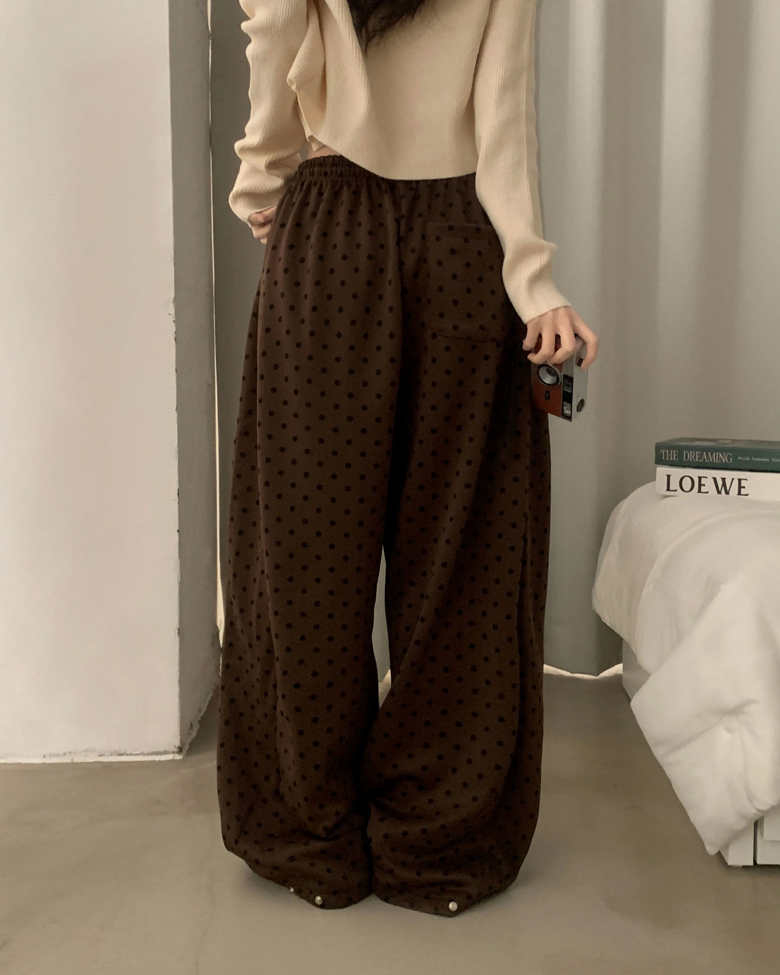 | Size | ウエスト | ヒップ | 裾幅 | わたり | 股上 | 着丈 |