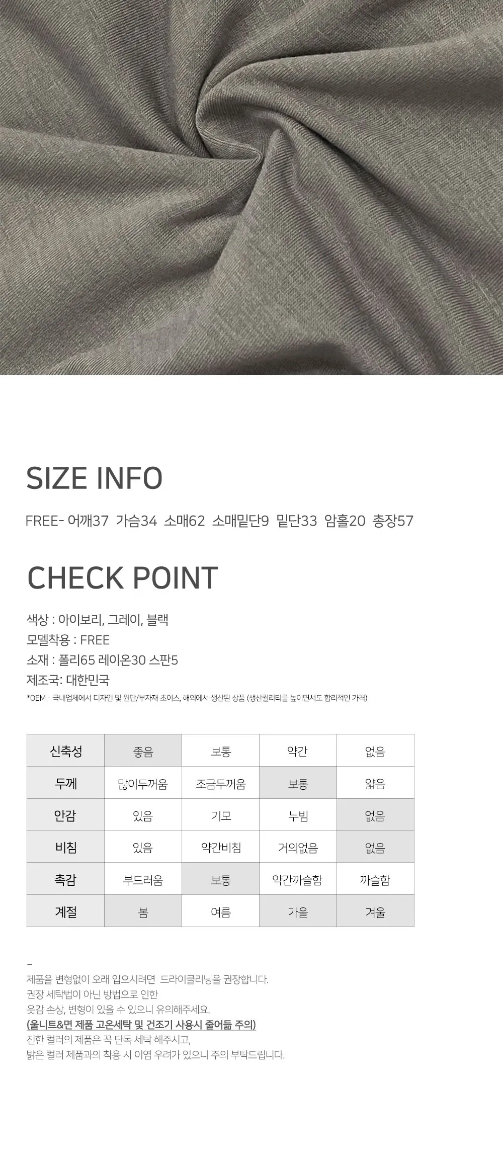着用 : アイボリー / FREE