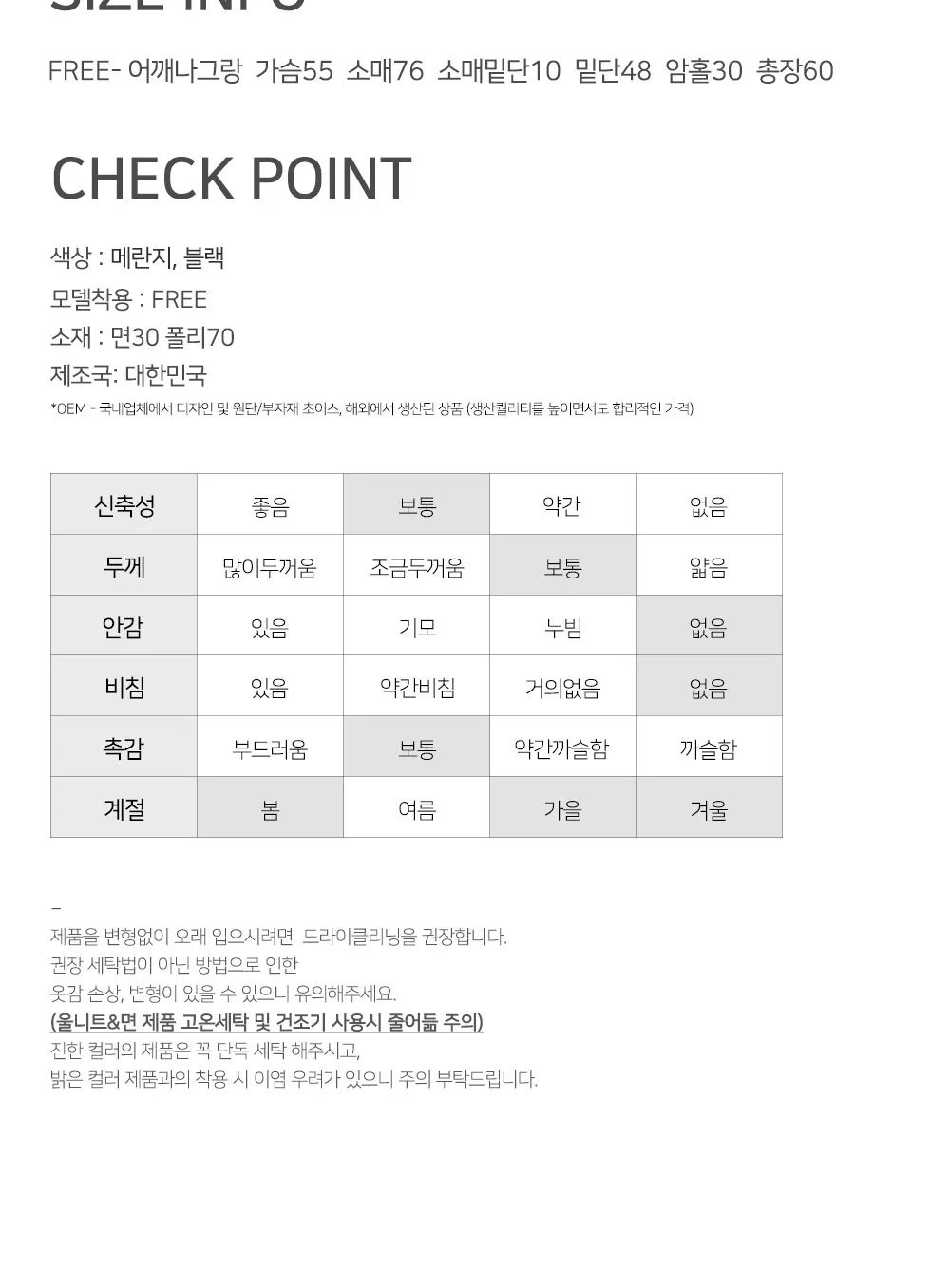 | FREE | 55 | 76(肩幅含む) | 60 | 30 | 48 |