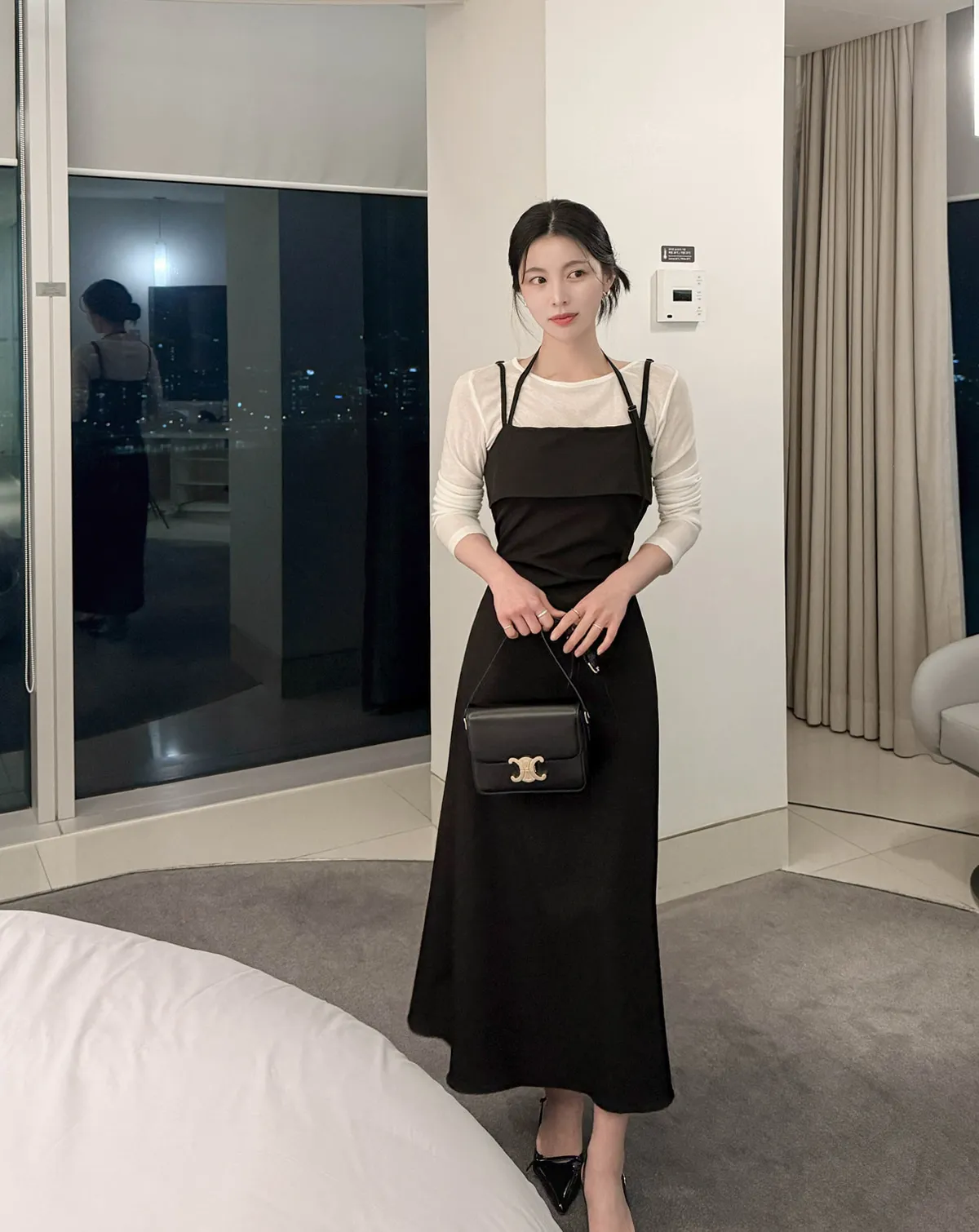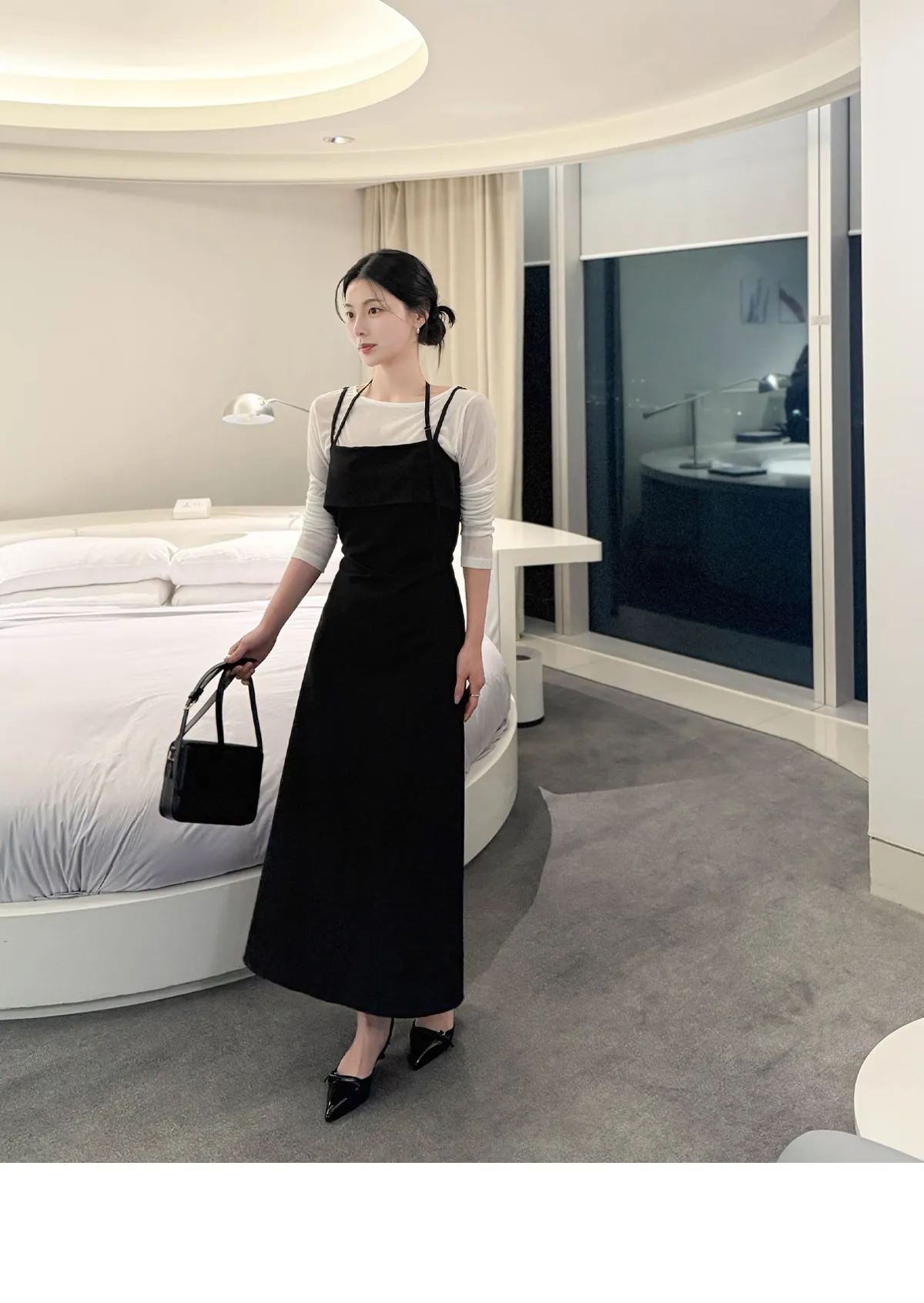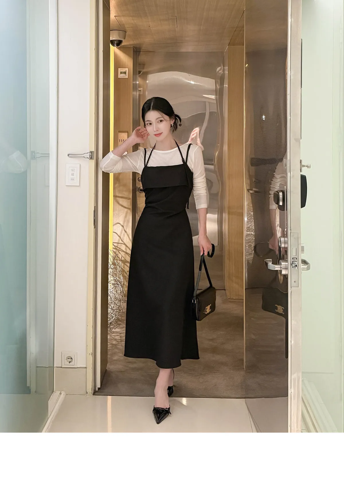 ソフトコットンVネック長袖ベーシックボートネックセミクロップドTシャツ