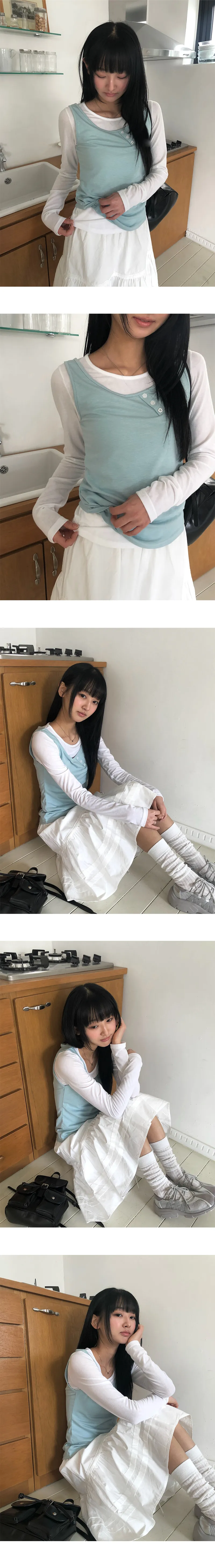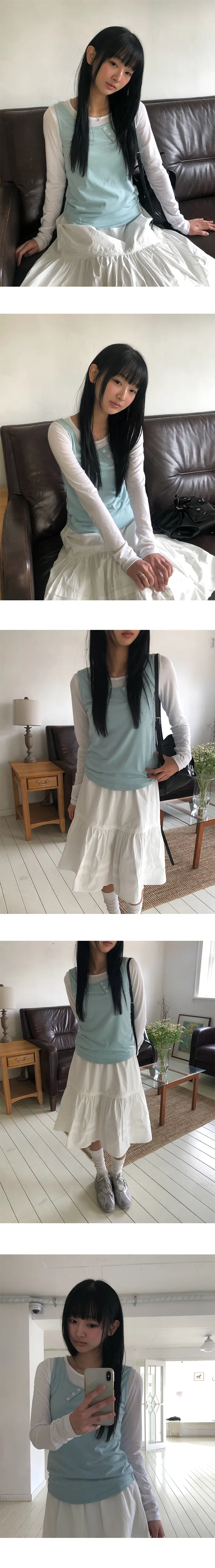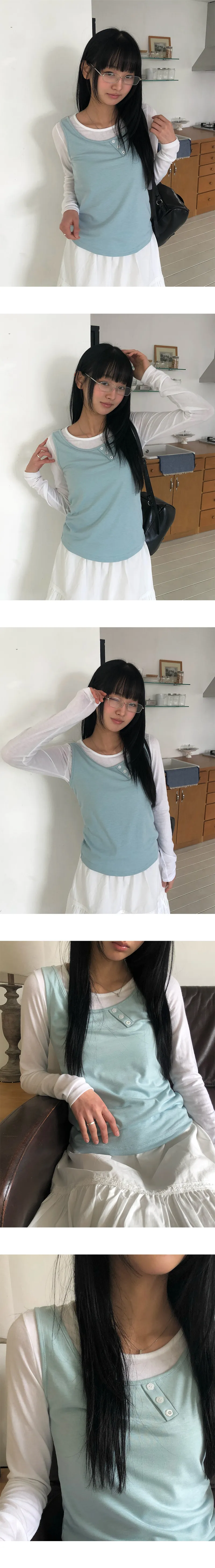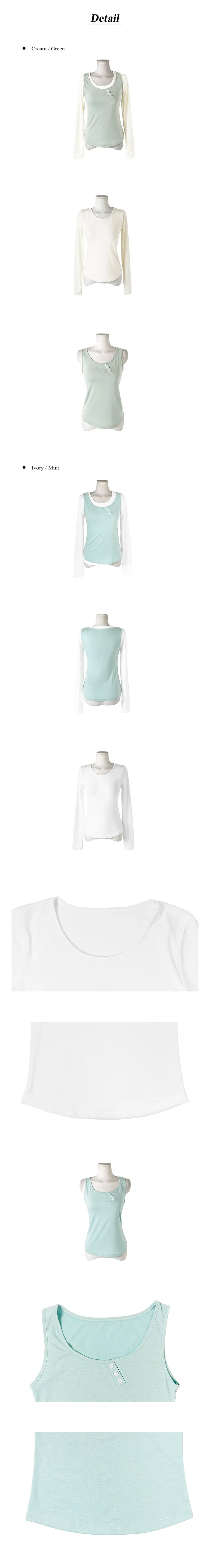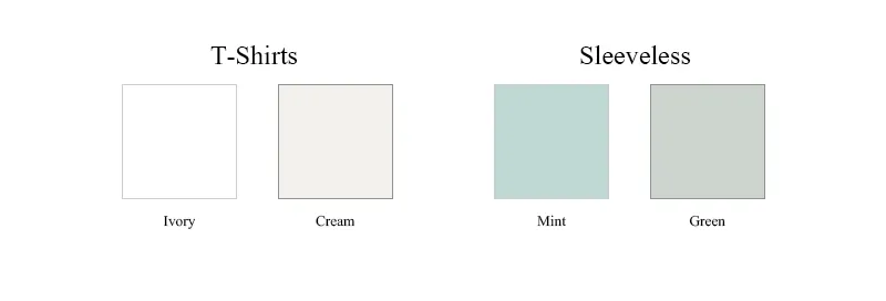 着用 : IVORY(T-SHIRTS)-MINT(SLEEVELESS) / FREE,CREAM(T-SHIRTS)-GREEN(SLEEVELESS) / FREE