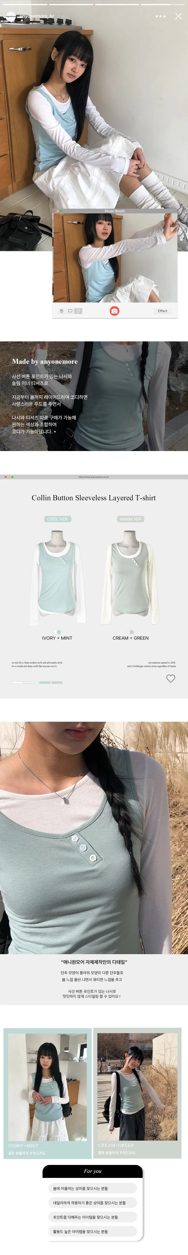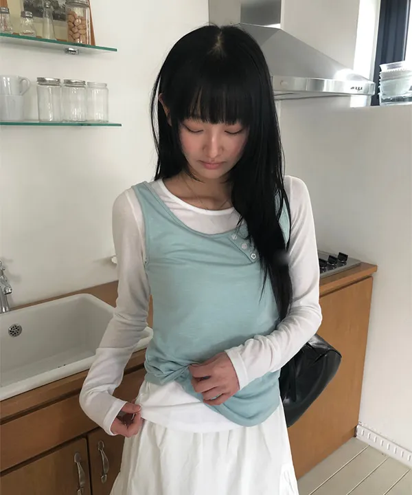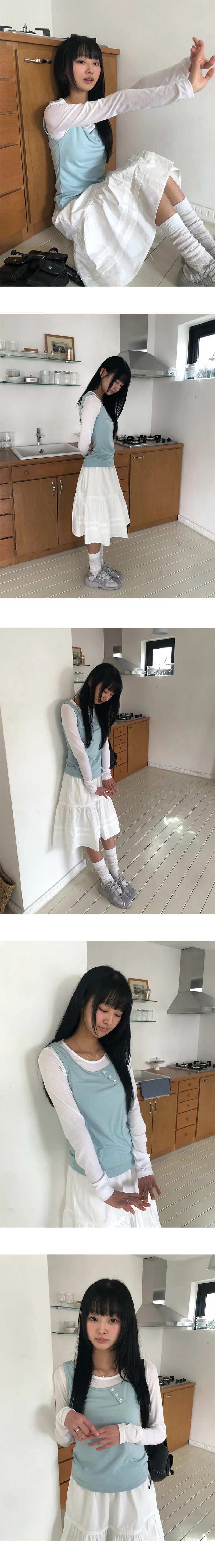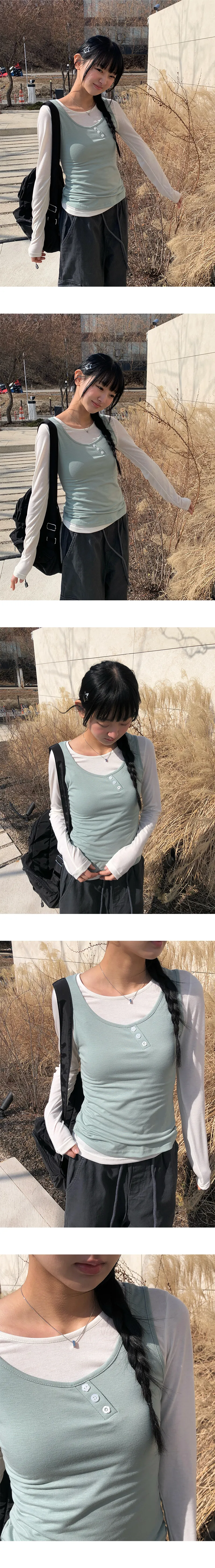 着用 : IVORY(T-SHIRTS)-MINT(SLEEVELESS) / FREE,CREAM(T-SHIRTS)-GREEN(SLEEVELESS) / FREE