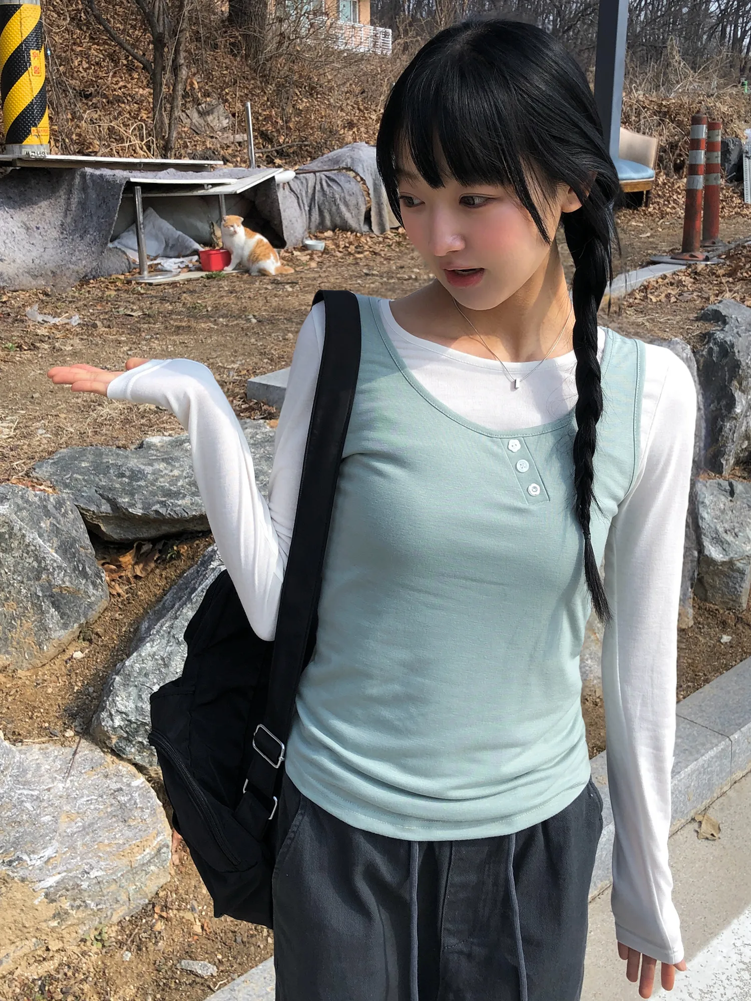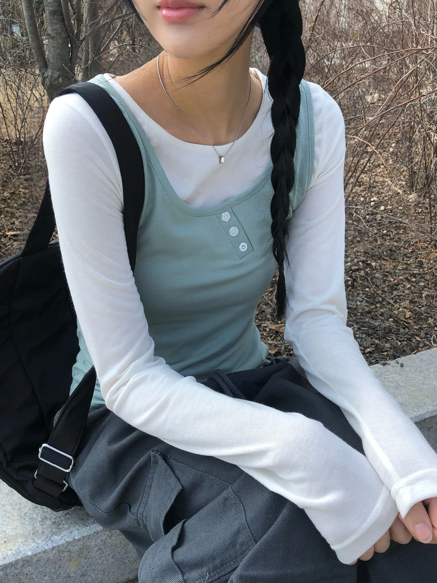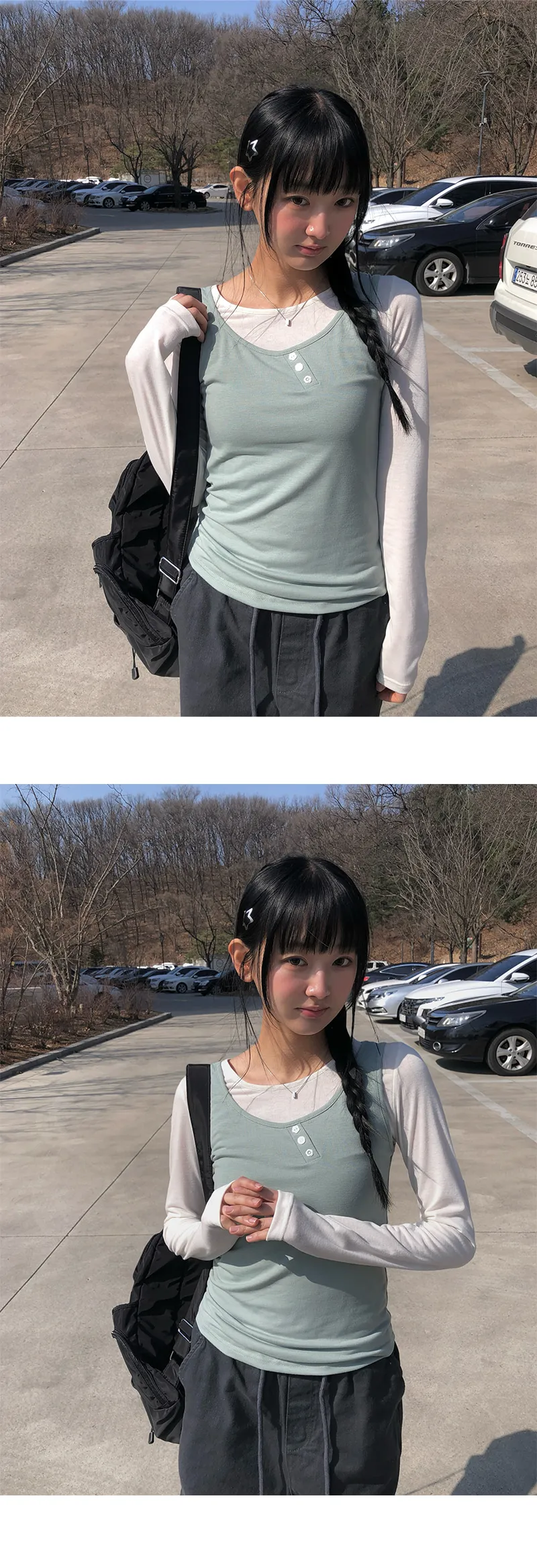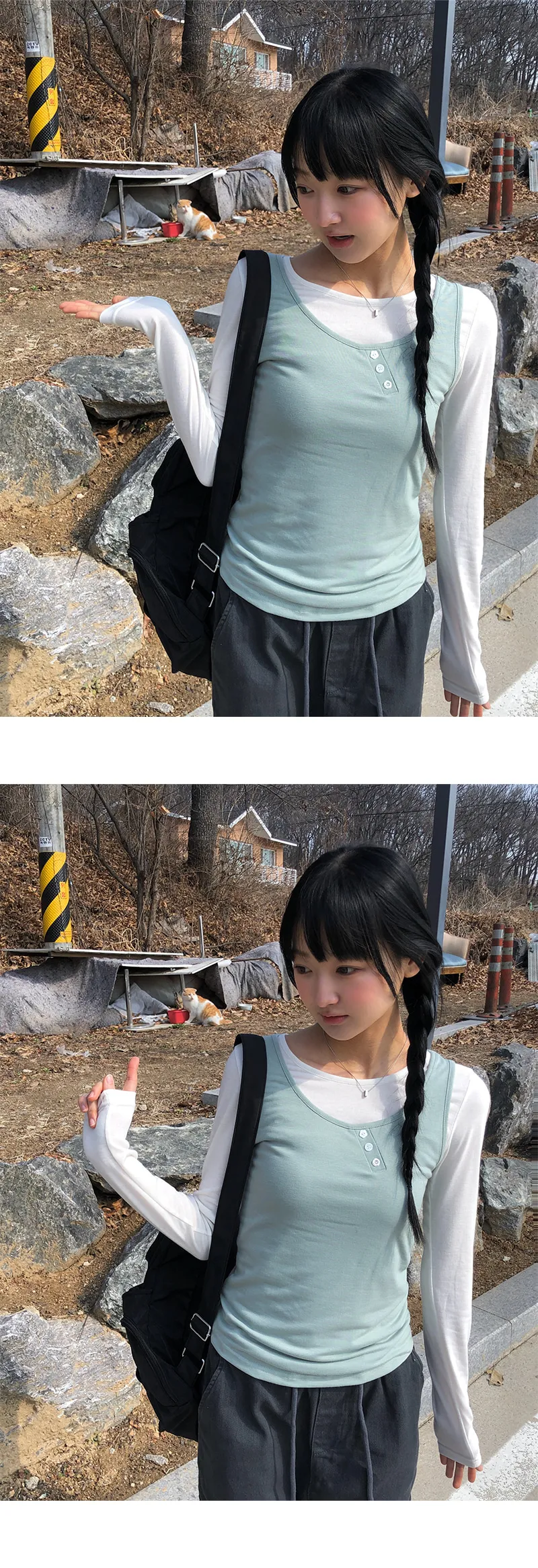 着用 : IVORY(T-SHIRTS)-MINT(SLEEVELESS) / FREE,CREAM(T-SHIRTS)-GREEN(SLEEVELESS) / FREE