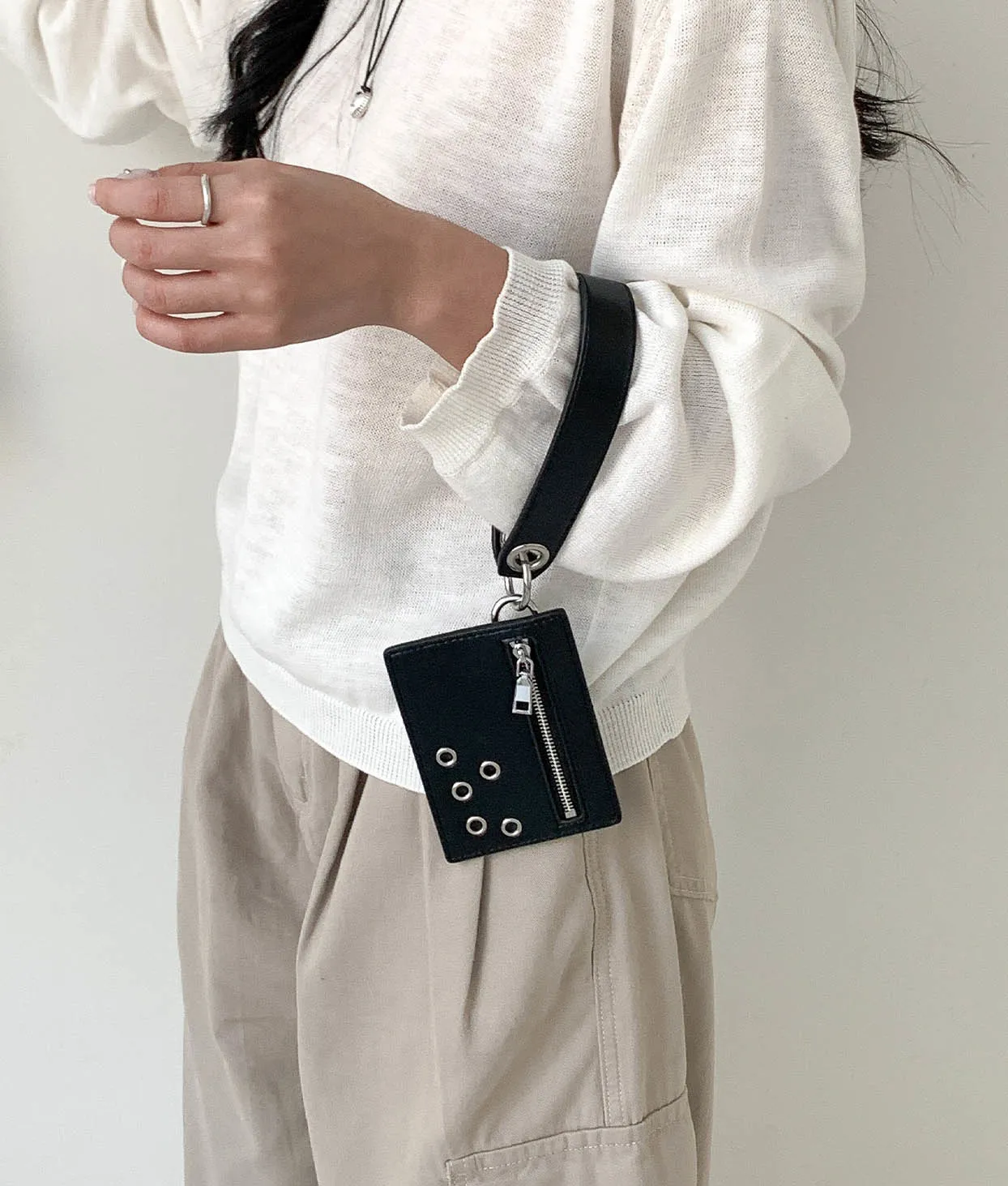 レザー調アイレットジップアップカードウォレット・S1961709