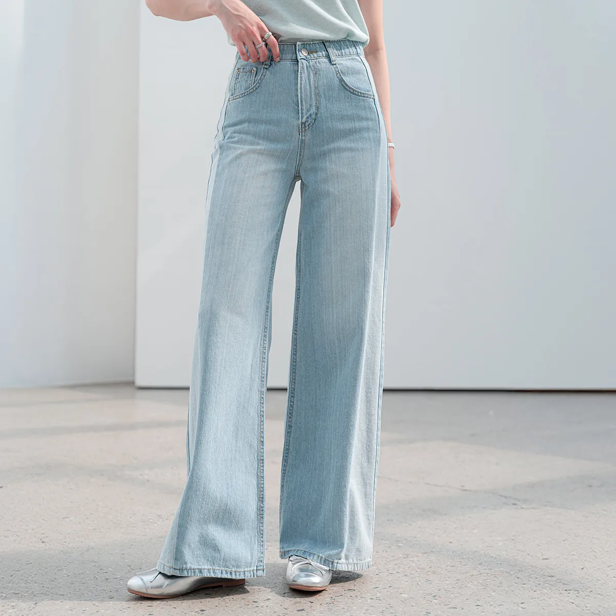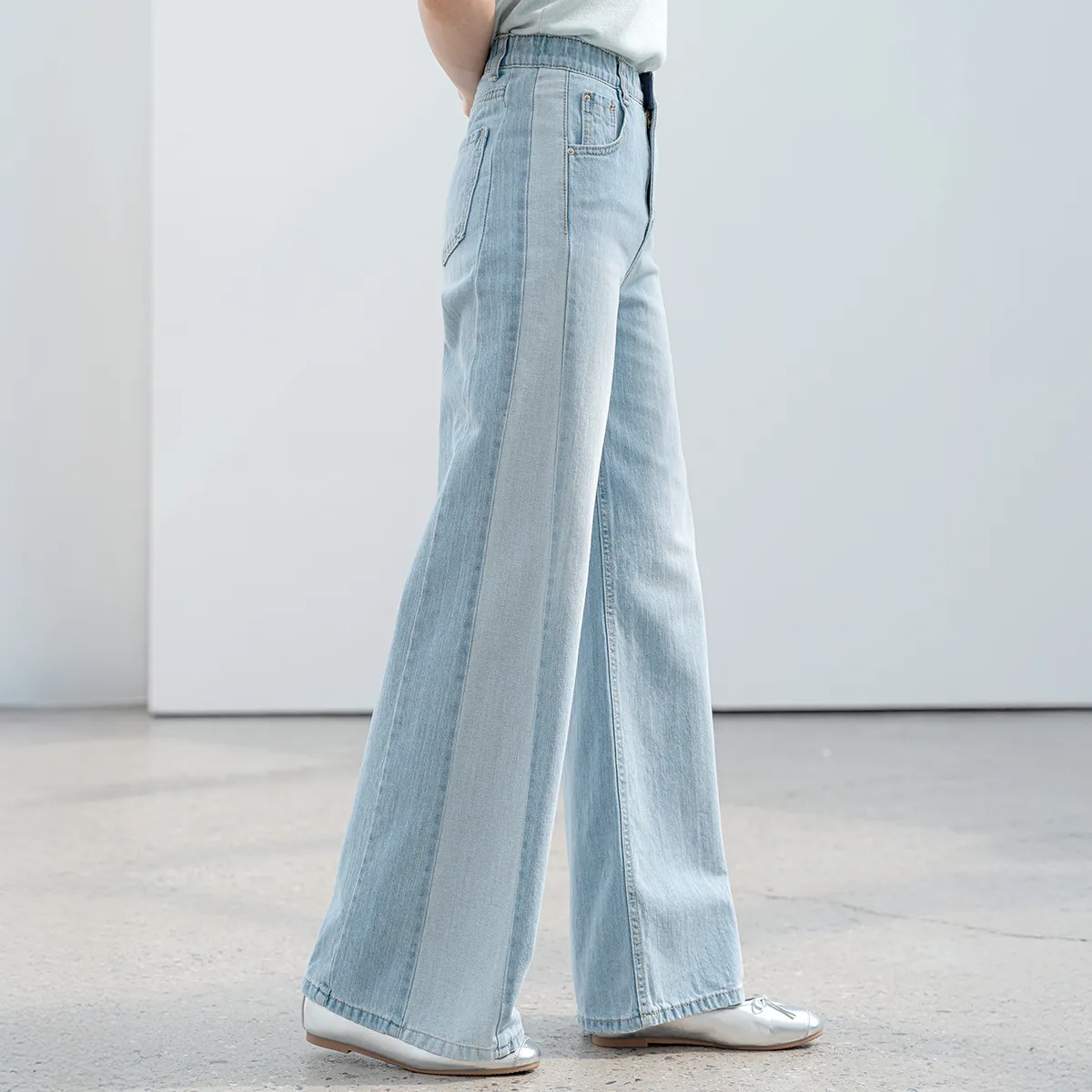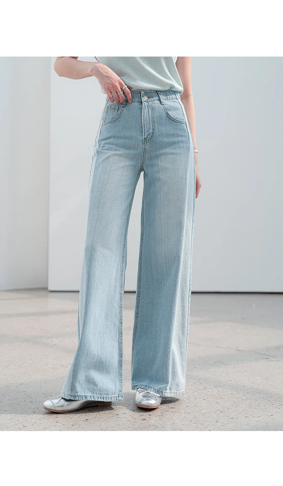 デニムベーシックショートループリベットジップアップリボン(固定)ワイドバックポケットポケットフラップポケットウォッシングディープブルーデニムパンツ[選べる丈]